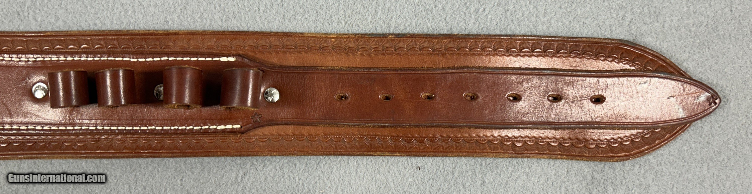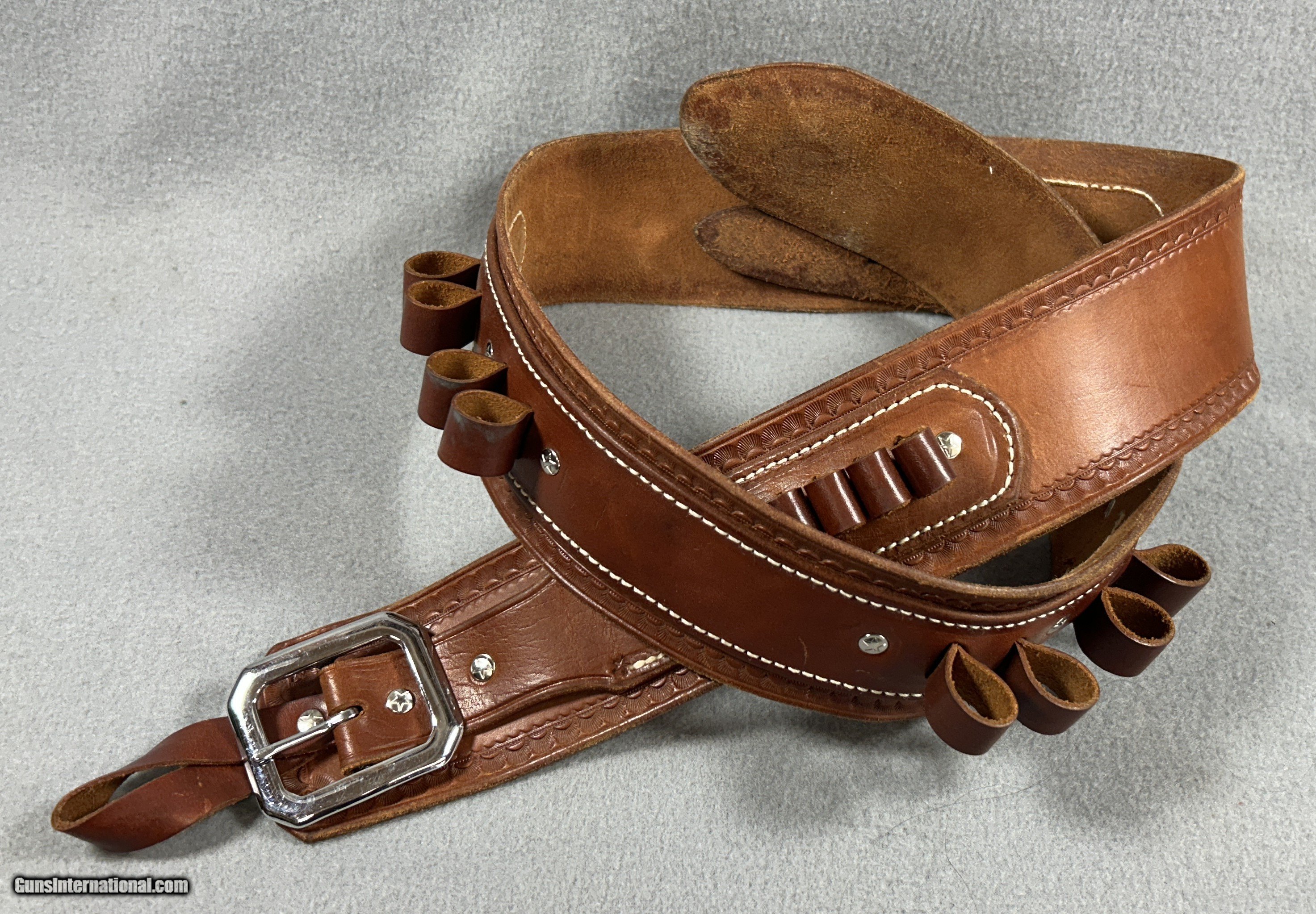 Description: Chamberlain Trails Cartridge Belt 8 - 12 Gauge, 10 - .38 Caliber and 5 - .44 / .45 Caliber. 3" Wide. Fits 45" - 51" Waist Very Good Condition, with handling marks, scuffs and wear. S&H $22.00 Handgun Caliber: .44, .38, .45 Shotgun Gauge: 12 Gauge Price: $99.99 Contact Seller |