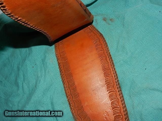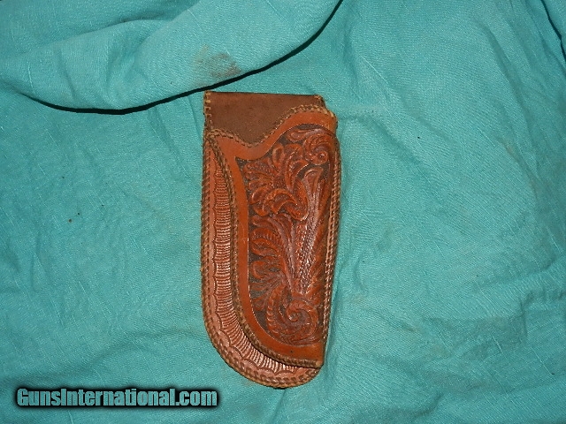 Description: A very good older quality made hand tooled holster for a Colt SAA with a 4 3/4" barrel. this holster fits over the belt.Condition is very good with supple leather and all the stitching there! Check my other interesting holsters. We don’t have asite .I prefer money orders or a check. Item ships when funds come in. If you can only pay with a card let me know. I hope you like my wide selection of unusual guns, knives and gun parts. Shipping price determined by zip code. I try to keep the prices affordable, which means I make less money than most dealers. You won’t get altitude sickness with my prices! I consistently have the best selection of older guns If you BUY IT NOW you must still contact us for details buy it now doesn't end the sale, it just sends an email telling us you want to buy this gun. A phone call won’t secure a sale! Not home many times, the first buyer by email buys the gun !Thissite doesnot close down a sale when you do a BUY IT NOW like Ebay!I can get six buy it nows in an hour, first buyer to email gets the guns, others are in second place! Best to send another email . Sometimes not home to get calls. Some guns are required shipment to a gun dealer near you for a transfer to you when it arrives. With the widest selection of older guns at great prices, We don’t have a store, and sell on the internet only. SOLD |