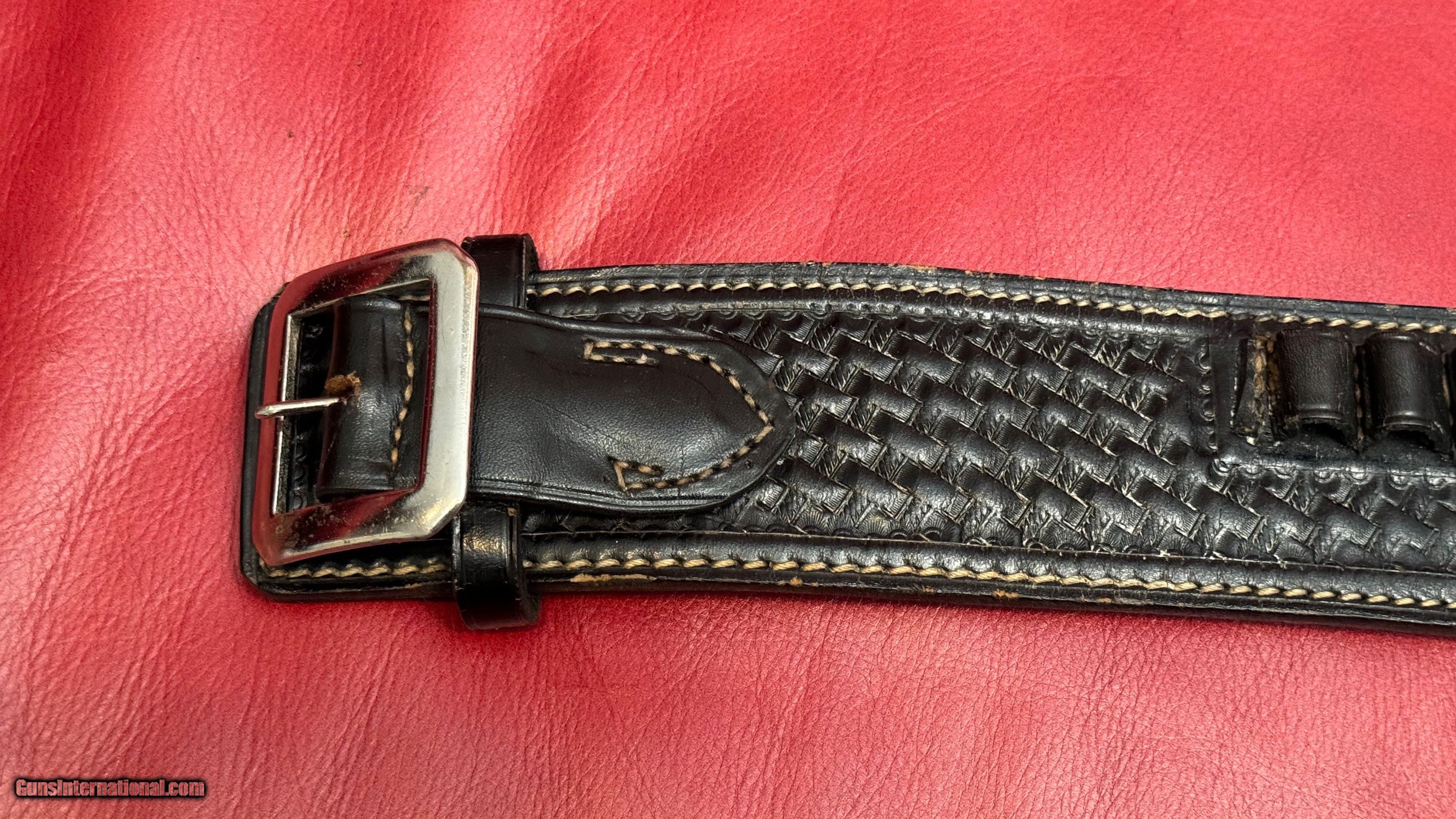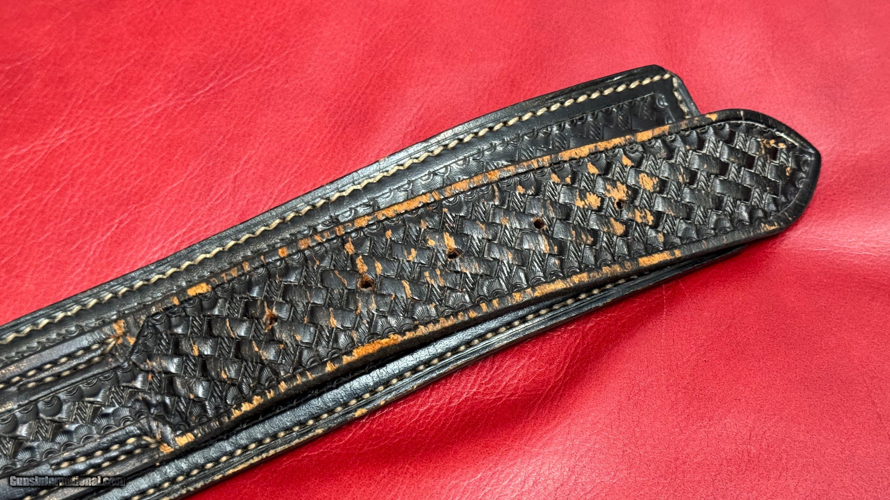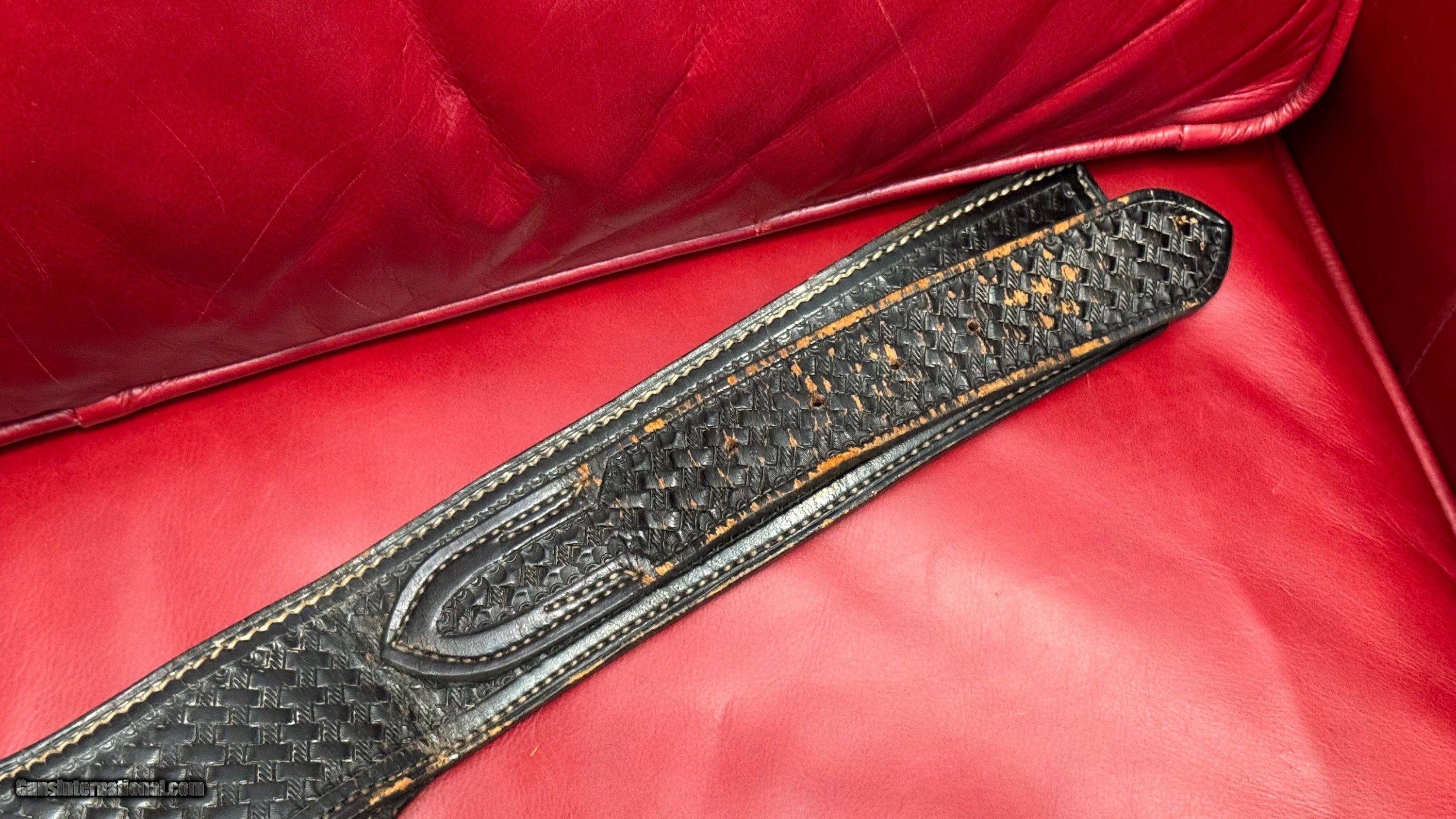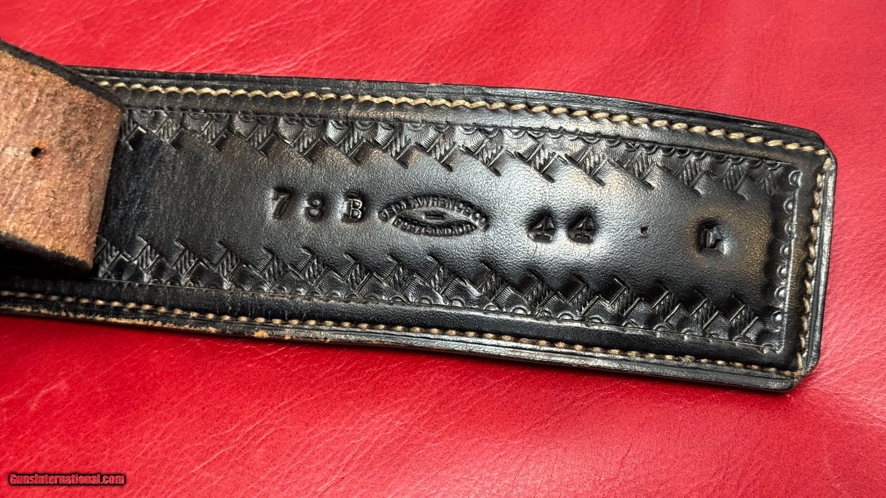 Description: Looking to sell a used George Black Basketweave Holster Rig for a Ruger .44 Mag / .30 Carbine 7 1/2” revolver, in great condition. Stamped on the belt: 78B, .44, L Stamped on the holsters: 120BDTC, 601 Belt specs: 78B (model), .44 Mag or .30 Carbine ammo and is sized for a Large waist (42" to center belt hole). Holster specs: 120 (model), B (basket stamp), D (black), T (leg thong "missing leather strap"), C (chamois lining), 601 (Ruger .44 Mag / .30 Carbine 7 1/2”) Holster "belt strap" shows the most signs of wear, . Belt is 2 1/2” wide. Please see all pics and you be the judge! Price includes shipping/insurance. PAYMENT: Cashiers Check, USPS Money Order or Personal Check only, unless pre approved by me. Payment is expected within 7 business days, not including weekends or holidays. Should you have any questions, please feel free to email me. Thanks SOLD |