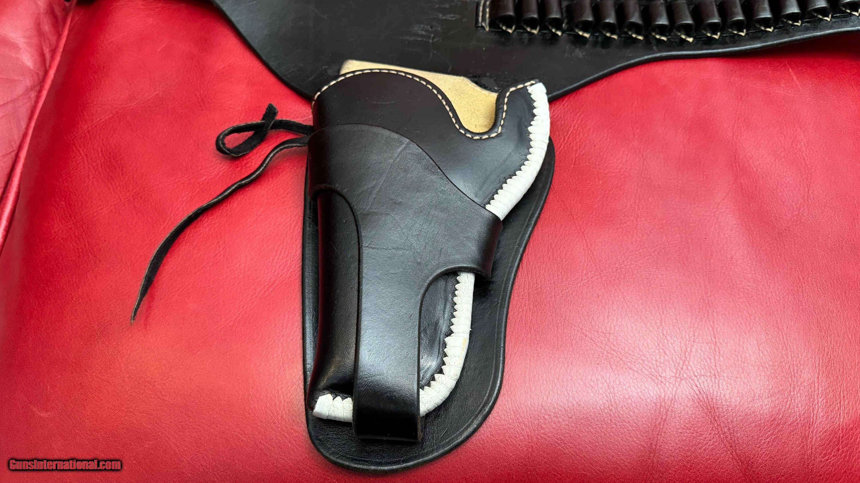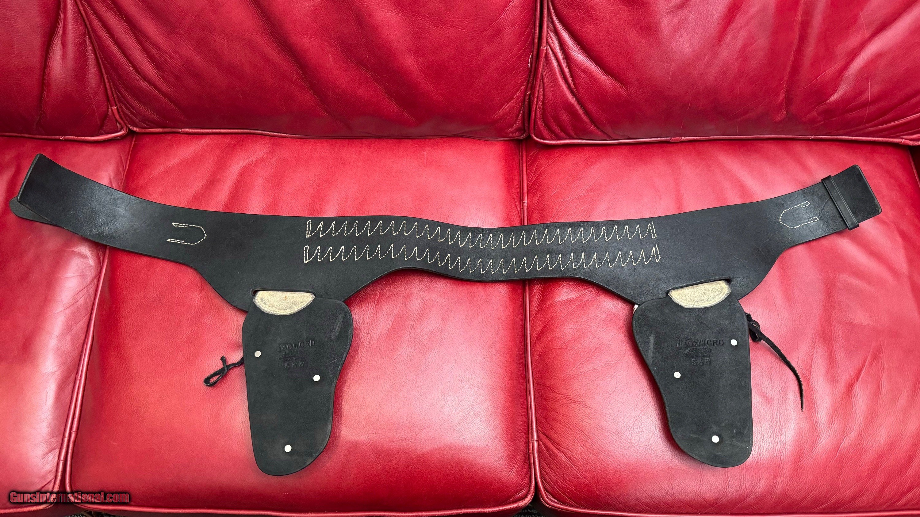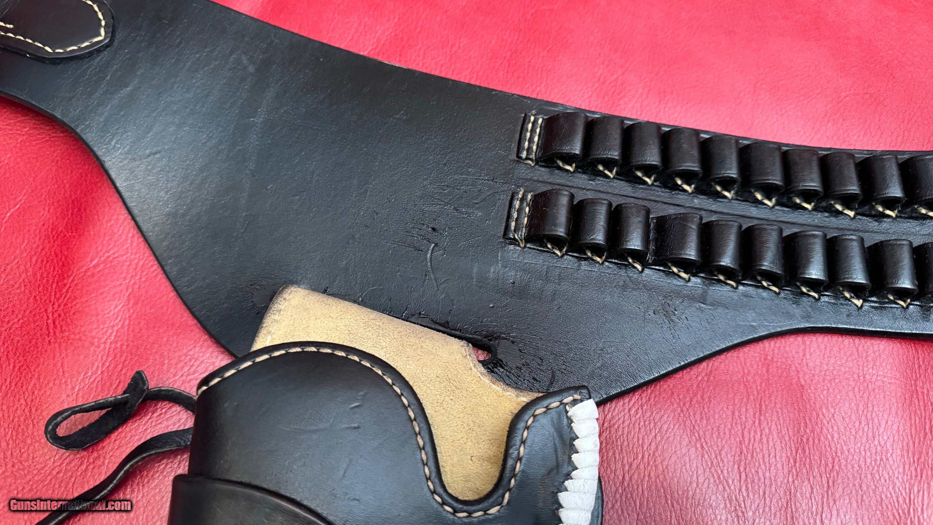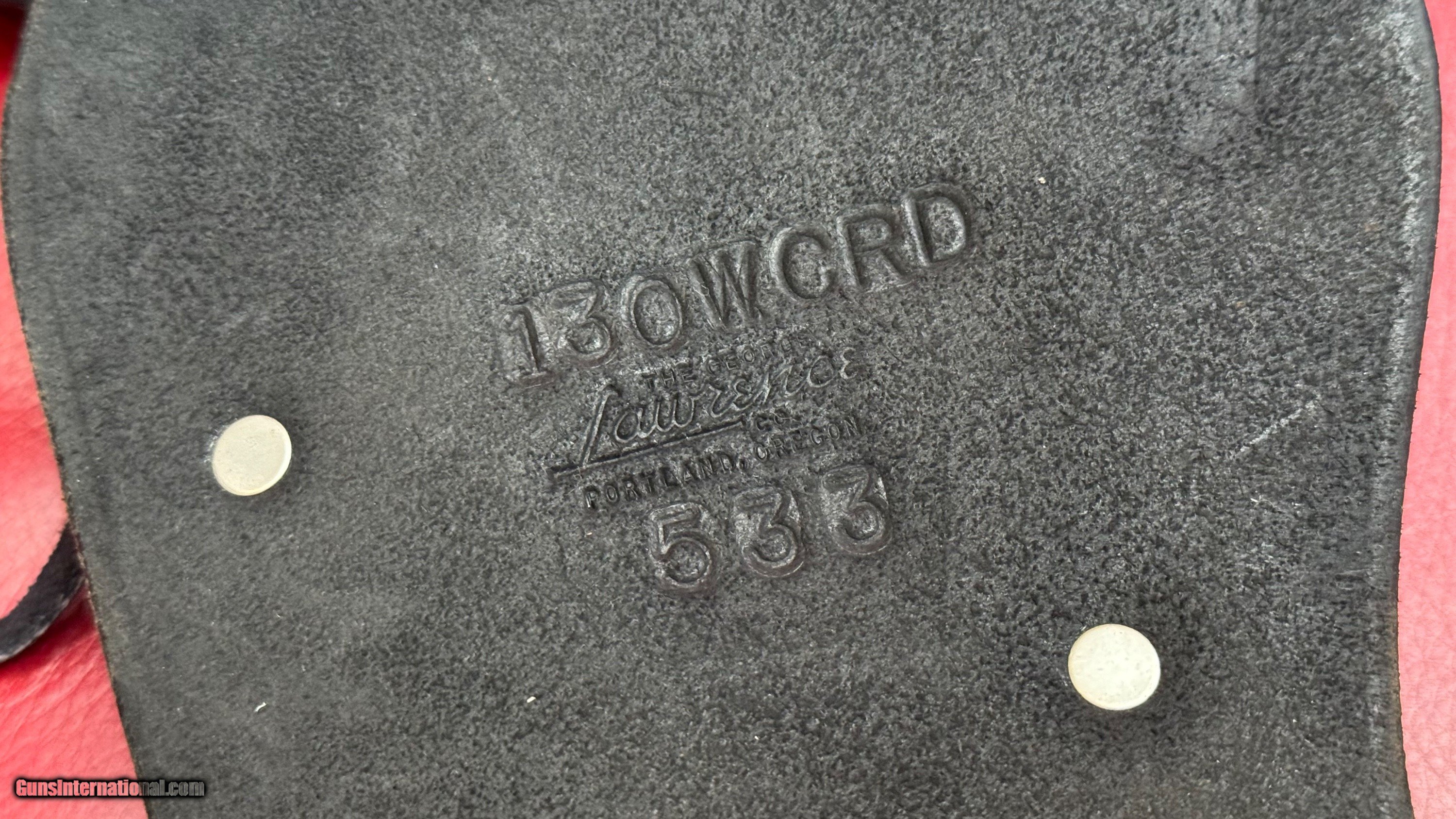 Description: Looking to sell a very nice George Lawrence Plain Black Double Buscadero Rig for a S&W Model 29 or S&W Model 57 4” revolver, in great condition. Stamped on the belt: 50D, .44, 40 Stamped on the holsters: 130WCRD, 533 Belt specs: Double cartridge loops holds 60rds of .44Mag ammo and is sized for a 40" waist. Holster specs: S&W N-frame Model 29 .44Mag 4” or a S&W Model 57 .41Mag 4” (533), 130 (model), W (white lacing), C (chamois lining), R (hammer thong), D (black) Great condition w/ some light wear in leather on the left side of the belt above the holster. Please see all pics and you be the judge! Price includes shipping/insurance. PAYMENT: Cashiers Check, USPS Money Order or Personal Check only, unless pre approved by me. Payment is expected within 7 business days, not including weekends or holidays. Should you have any questions, please feel free to email me. Thanks SOLD |