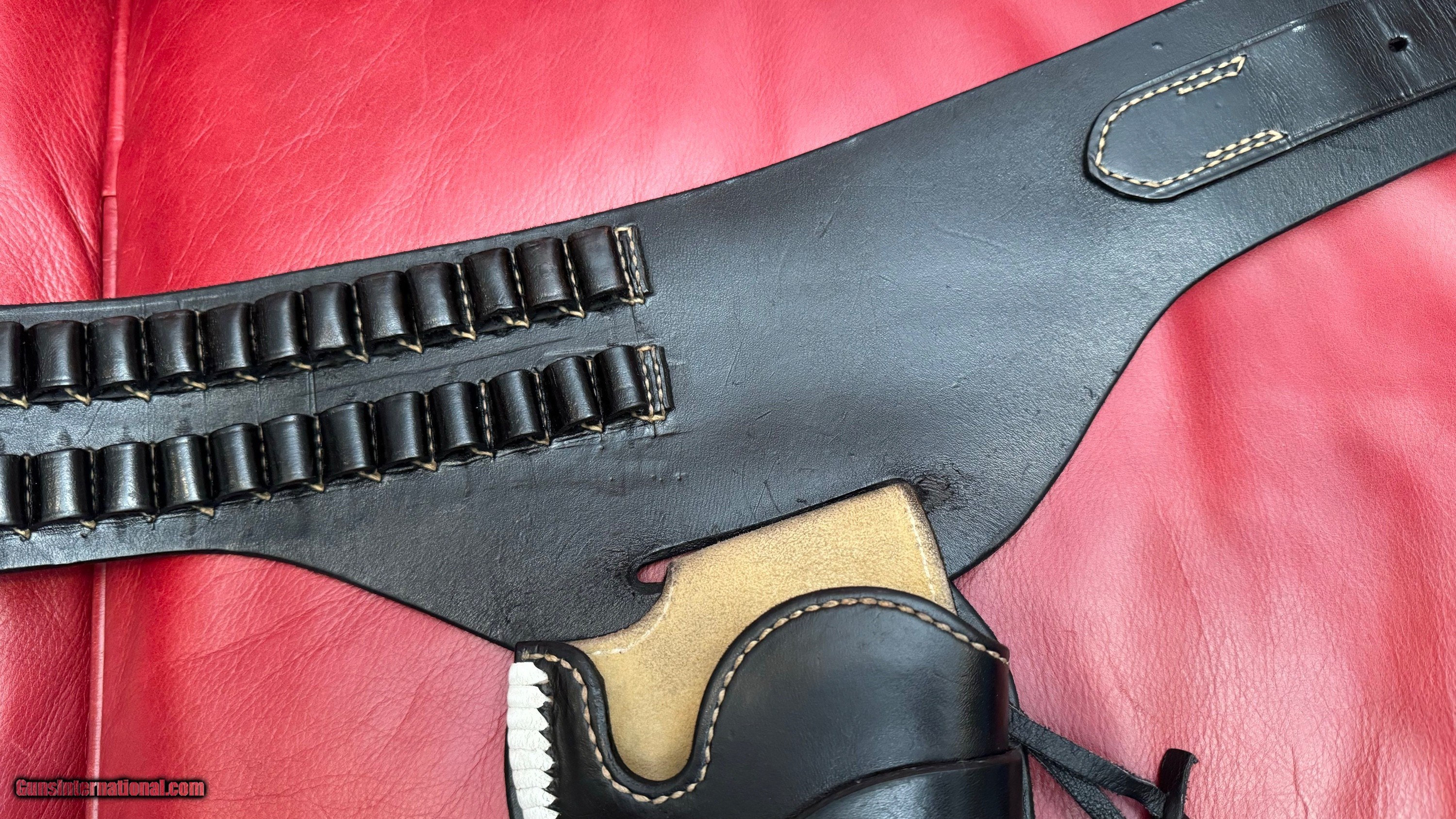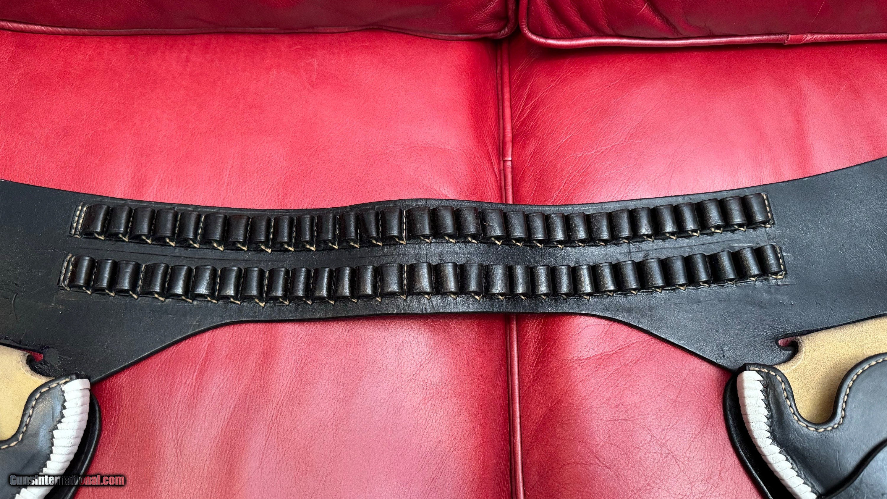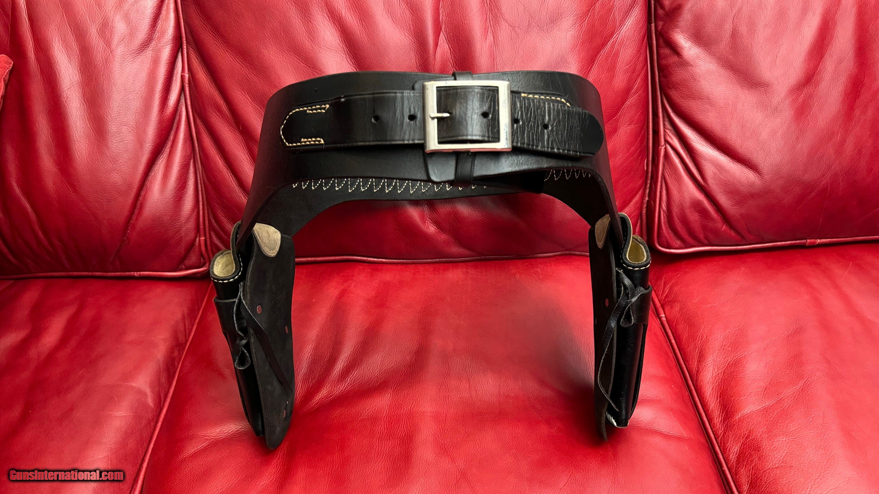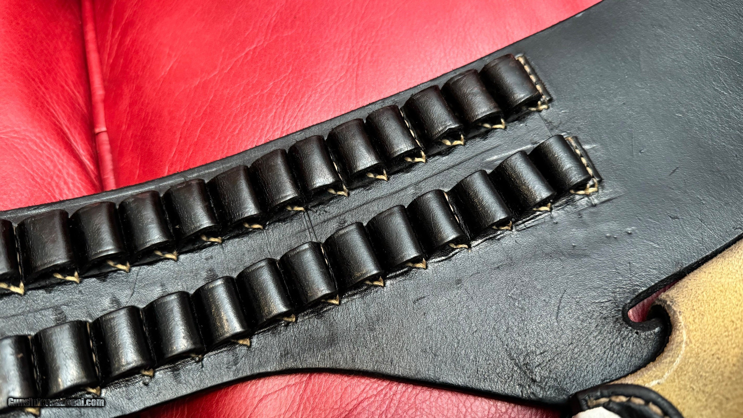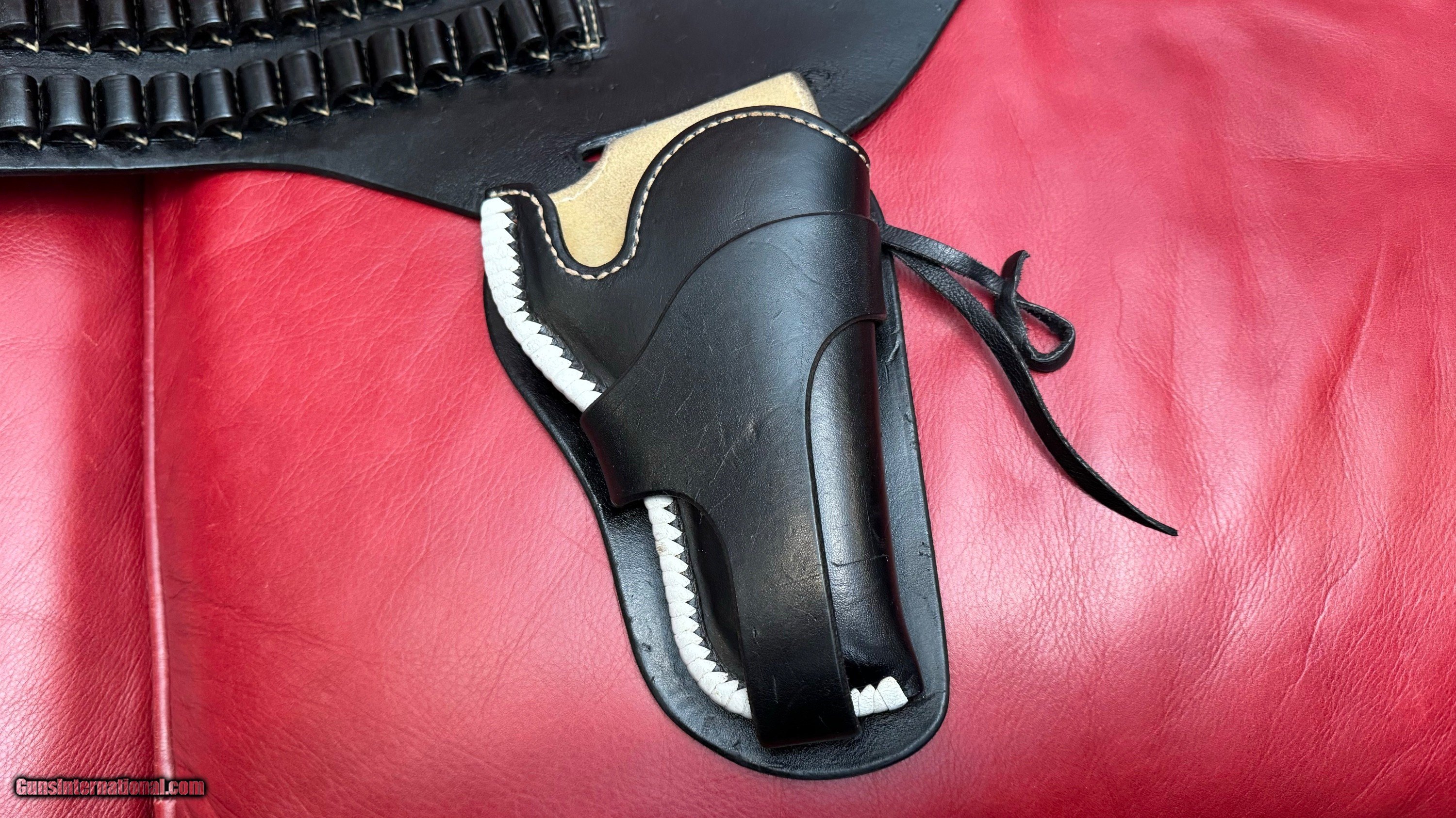 Description: Looking to sell a very nice George Lawrence Plain Black Double Buscadero Rig for a S&W Model 29 or S&W Model 57 4” revolver, in great condition. Stamped on the belt: 50D, .44, 40 Stamped on the holsters: 130WCRD, 533 Belt specs: Double cartridge loops holds 60rds of .44Mag ammo and is sized for a 40" waist. Holster specs: S&W N-frame Model 29 .44Mag 4” or a S&W Model 57 .41Mag 4” (533), 130 (model), W (white lacing), C (chamois lining), R (hammer thong), D (black) Great condition w/ some light wear in leather on the left side of the belt above the holster. Please see all pics and you be the judge! Price includes shipping/insurance. PAYMENT: Cashiers Check, USPS Money Order or Personal Check only, unless pre approved by me. Payment is expected within 7 business days, not including weekends or holidays. Should you have any questions, please feel free to email me. Thanks SOLD |