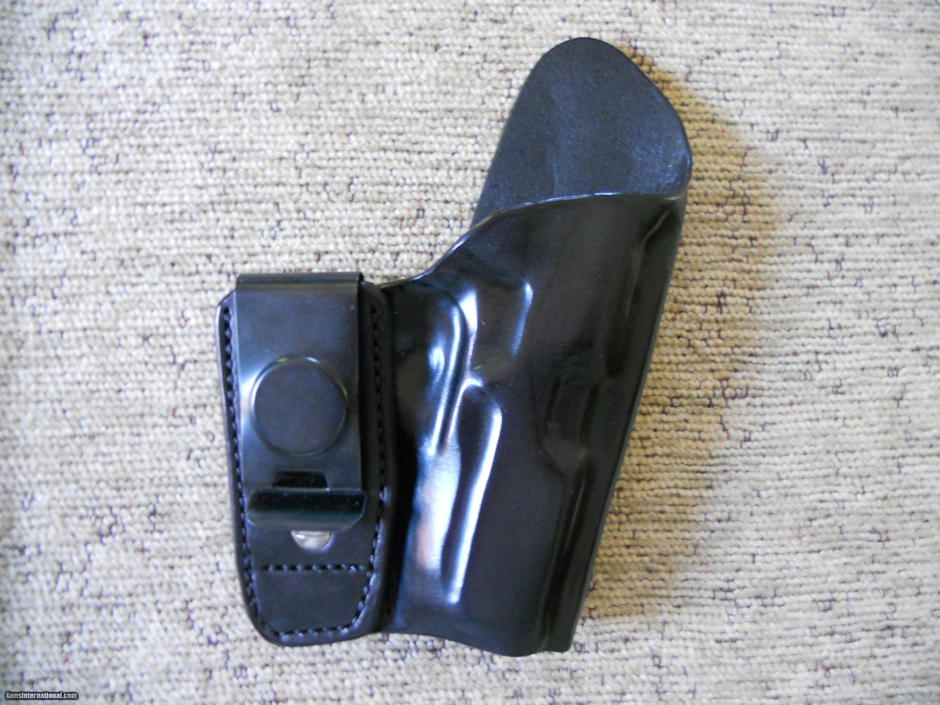 Description: HBE Leatherworks Black Calfskin Pro TL Tuckable Holster (RH) for Colt Defender (or similar sized compact 1911) Hand crafted by Eric Larson of HBE Leatherworks, here is a beautiful thin Pro TL Tuckable holster with extended body shield in black cowhide for your Colt Defender (or similar sized compact 1911). Excellent/like new condition. Reduced to $70 including Priority Mail in the US (lower 48 states). TRADE: Would also consider trading for some factory loaded 338 Win Mag, 7.62x39mm or 9mm ammo. SOLD |