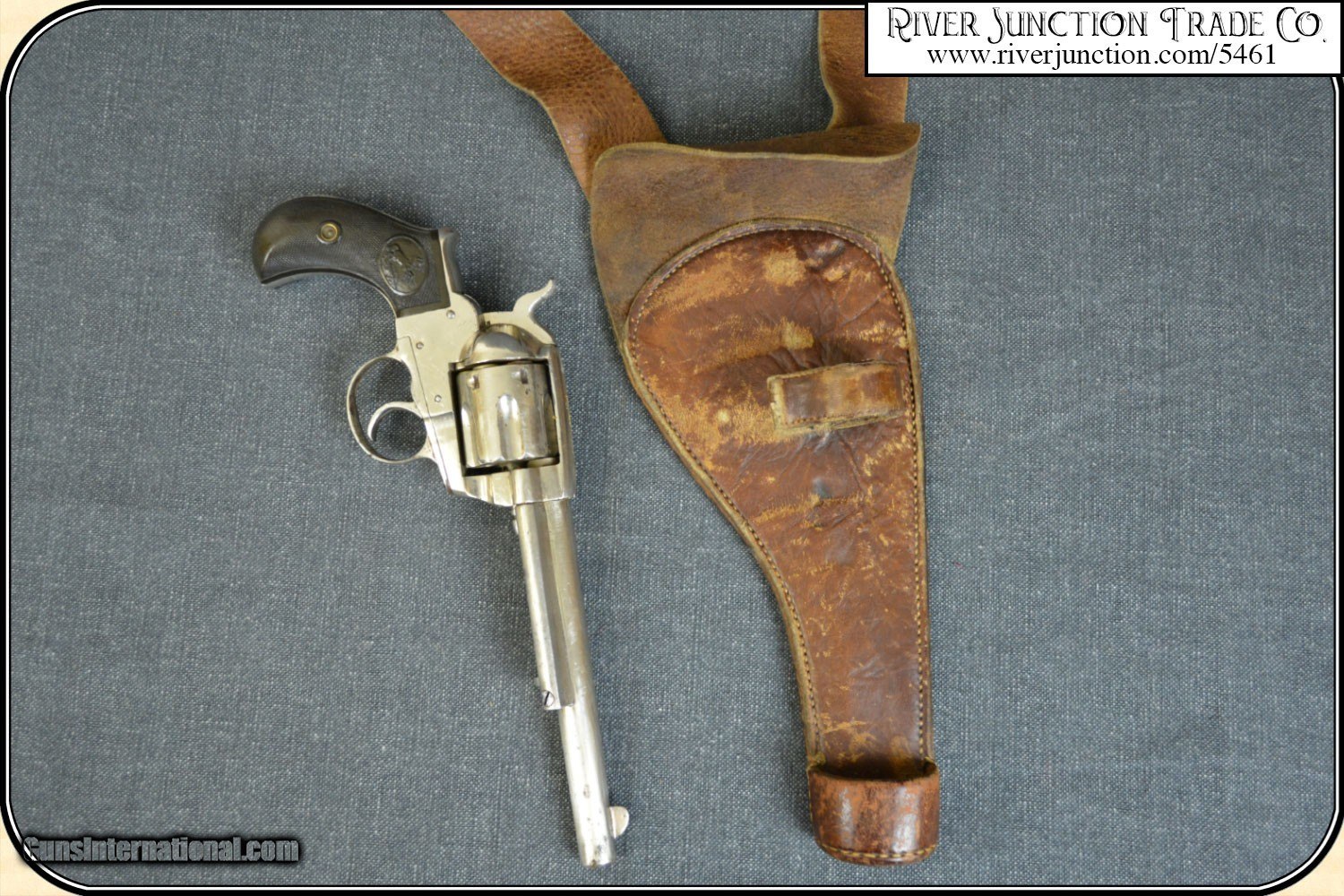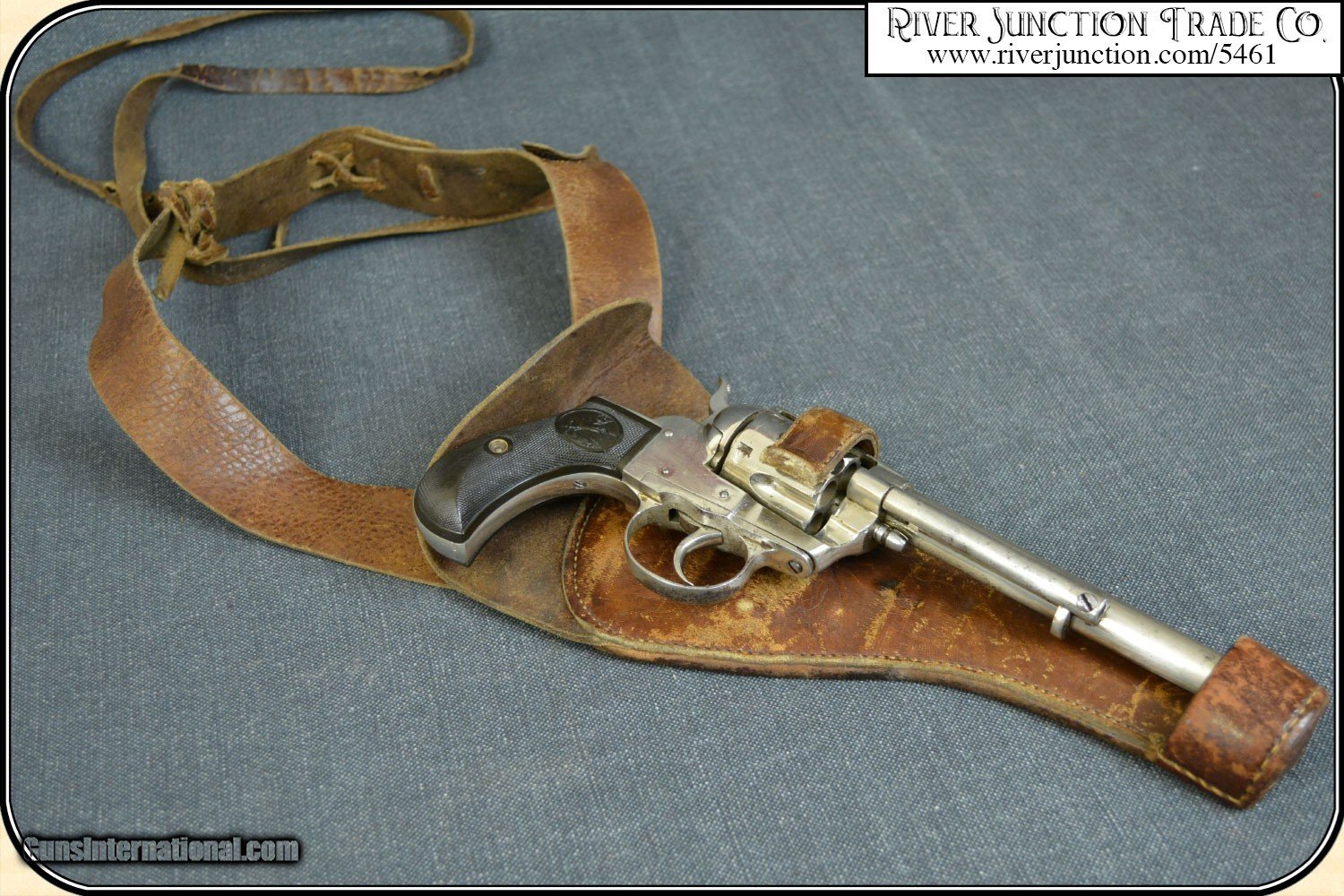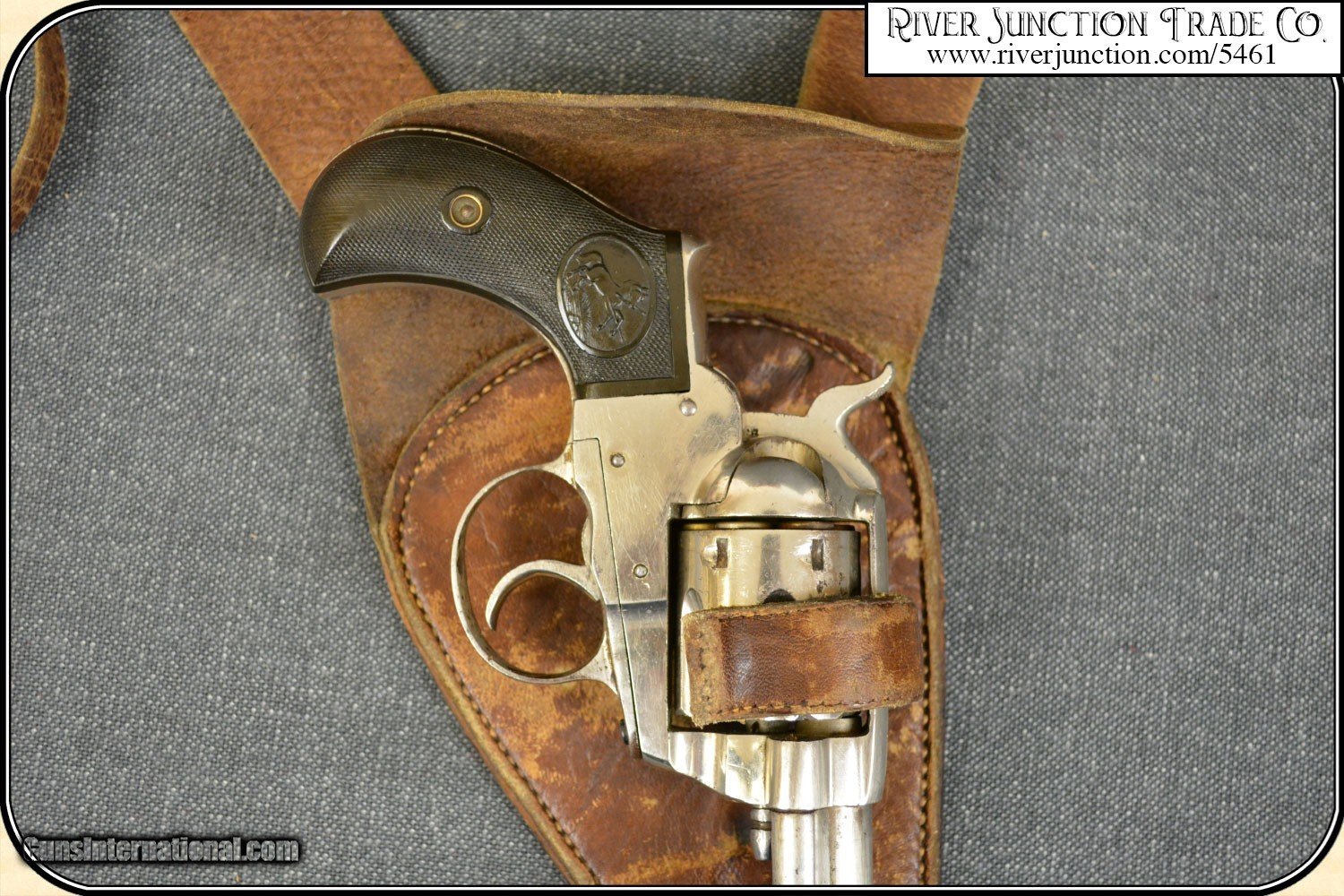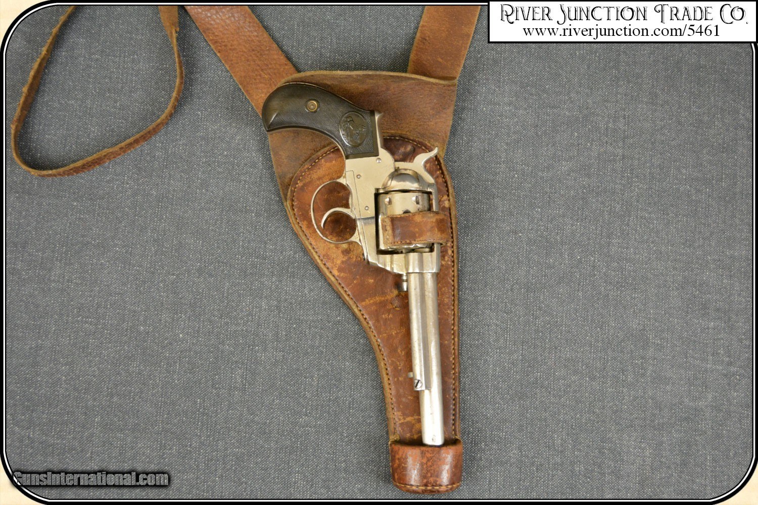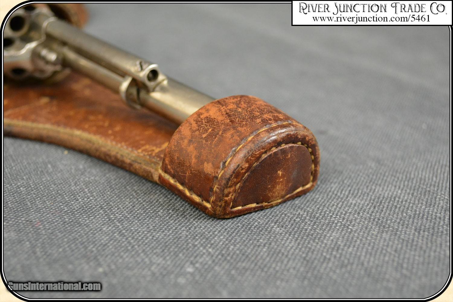 Description: H.H. Heiser, Denver, Colorado maker leather shoulder holster for a Small frame revolver such as a Colt Lightning revolver, in overall very good condition with some scuffs here and there. Circa early1900’s. My Lightning is not included. Payment: Item, can be ordered on line with a credit card or paypal on our sight. Just Google (riverjunction) and type in the River Junction Trade Co. item number (5461) in the search box. Before you checkout you will see shipping cost and total. OR If you prefer: Pay by cash, postal money order, cashiers check, personal & business checks. We wait for checks to clear. We always answer questions and entertain offers. Have questions? Call me 563-880-4588. Jim SOLD |