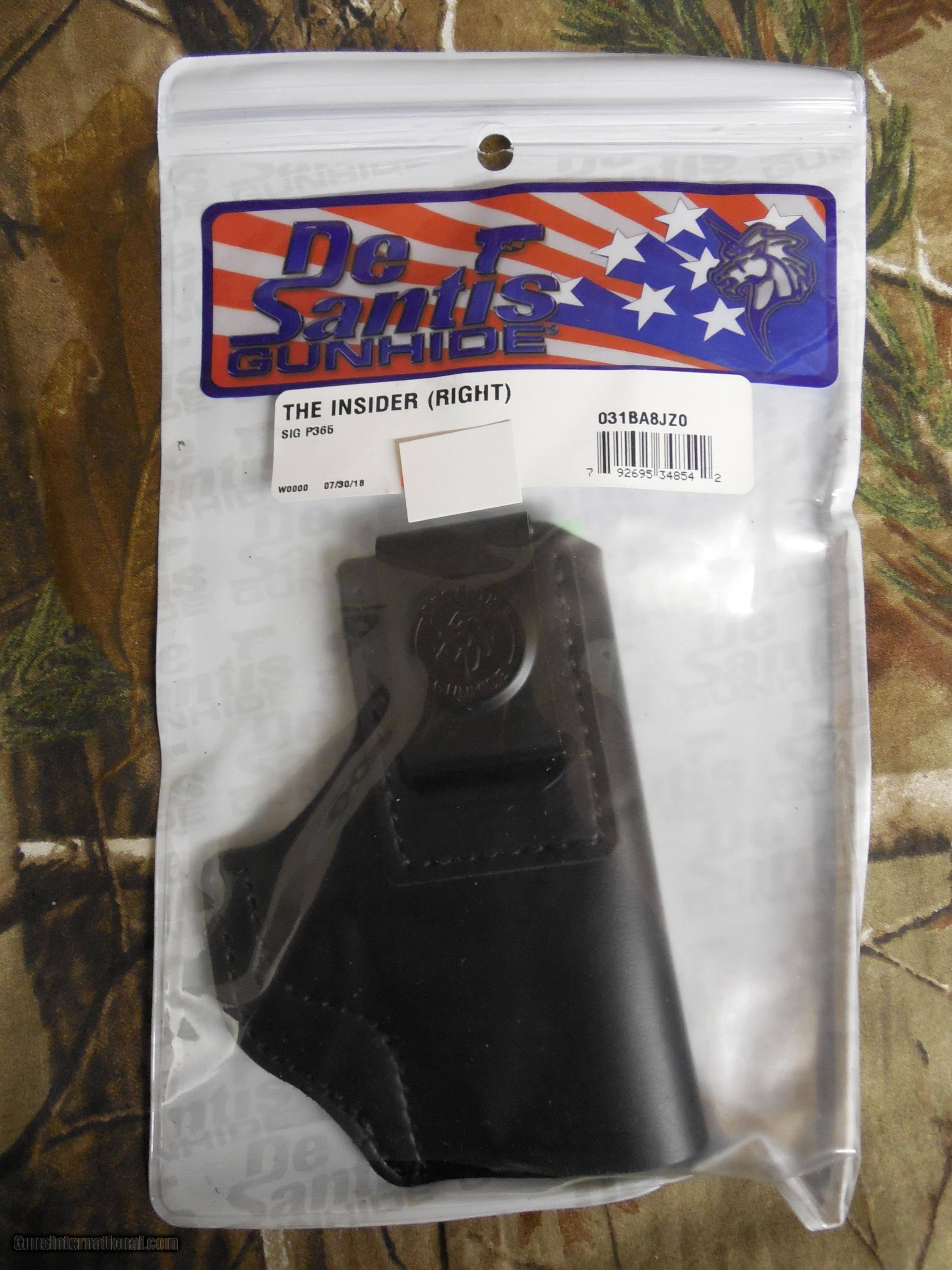 Description: FACTORY NEW IN BOX CLICK ON PICTURES TO ENLARGE DESANTIS INSIDER HOLSTER IWB RH LEATHER FOR THE SIG P365 BLACK, LEATHER Manufacturer DeSantis Manufacturer Part Number 031BA8JZ0 APPLICATION SIG SAUER P365 COLOR BLACK MATERIAL LEATHER NEW ITEM OTHER FEATURES :HEAVY DUTY SPRING STEEL CLIP POSITIONED HIGH FOR DEEP COVER MAXIUM 1 3/4" BELT MINIMIZE BULK HOLSTER LEATHER IS SOFT, UN-MOLDED RIGHT HANDY TYPE: INSIDE WAIST BAND HOLSTER Thank you for considering AA GUNS & AMMO for your Guns, Ammunition & Accessories. Please see information below for purchasing. PAYMENTS WE EXCEPT Money Orders, Certified Checks Or Credit Cards. (PERSONAL CHECKS HELD TILL CLEARED). Postal Money Order or Credit Cards Are Preferred & ships the Quickest. WE ALSO HAVE LAYAWAY PLANS. If paying by credit card please call Tony at 770-728-0434 Or Please send payment to: A.M. ANFUSO AA GUNS & AMMO 3425 SALEM CAVE TRAIL SE. CONYERS, GA 30013-5320 Please Pay Amount Due With Shipping. No international shipments SHIPPING $ $ 7.25 PRIORITY MAIL Please E-MAIL me back that you received my information and also E-mail your full Name and Addresses where you want items shipped to. The prices of all items listed reflect a 3% earned cash discount when paid with Certified funds, including Cashier's Check & Money Order. Purchases made with credit card do NOT qualify for 3% discount pricing. All Payments made with a credit card will be charged an additional 3%. THANK YOU Very Much for Your Business GOD BLESSES OUR TROOPS & AMERICA! ANY QUESTIONS PLEASE CALL ME: 770-728-0434 Hours 10:00 ARE – 6:00 PM Mon. – Sat. Eastern Time WE HAVE BEEN ON THIS SIGHT FOR OVER 7 YEARS & HAD OVER 5,300 ITEMS SOLD. YOU CAN REST EASY WITH US. WE HAVE A PLATINUM RATING & WE ARE ALSO A VERIFIED SELLER WITH GUNS INTERNATIONAL. WE ARE THE HONEST & TRUSTED STORE. SEE ALL OF AA GUNS & AMMO’S ITEMS AT aagunsandammo WE HAVE GUNS, AMMO, HOLSTERS, SCOPES, RED-DOTS, MAG LOADERS, EXTRA MAGAZINES, BAYONETS & MUCH MORE. NEW STUFF ALWAYS COMING IN. "A gun is like a parachute. If you need one, and don't have one, you'll probably Never need one again SOLD |