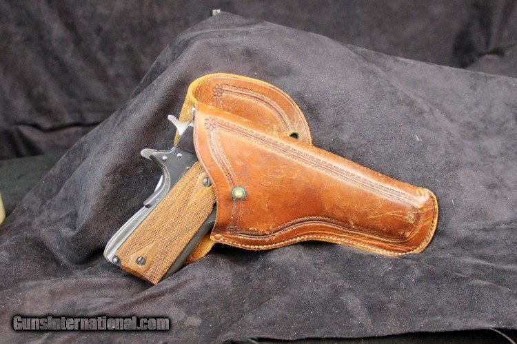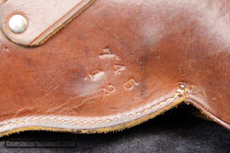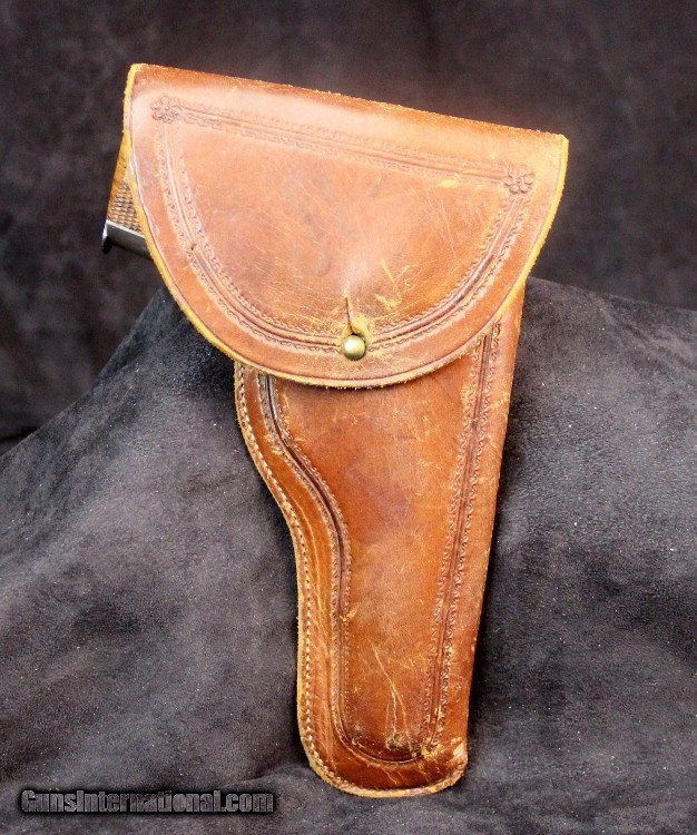 Description: Fits Colt 1911 automatic, western style border roll stamp, catalog numbers Condition: excellent condition overall, solid stitchingoriginal belt loop SOLD |