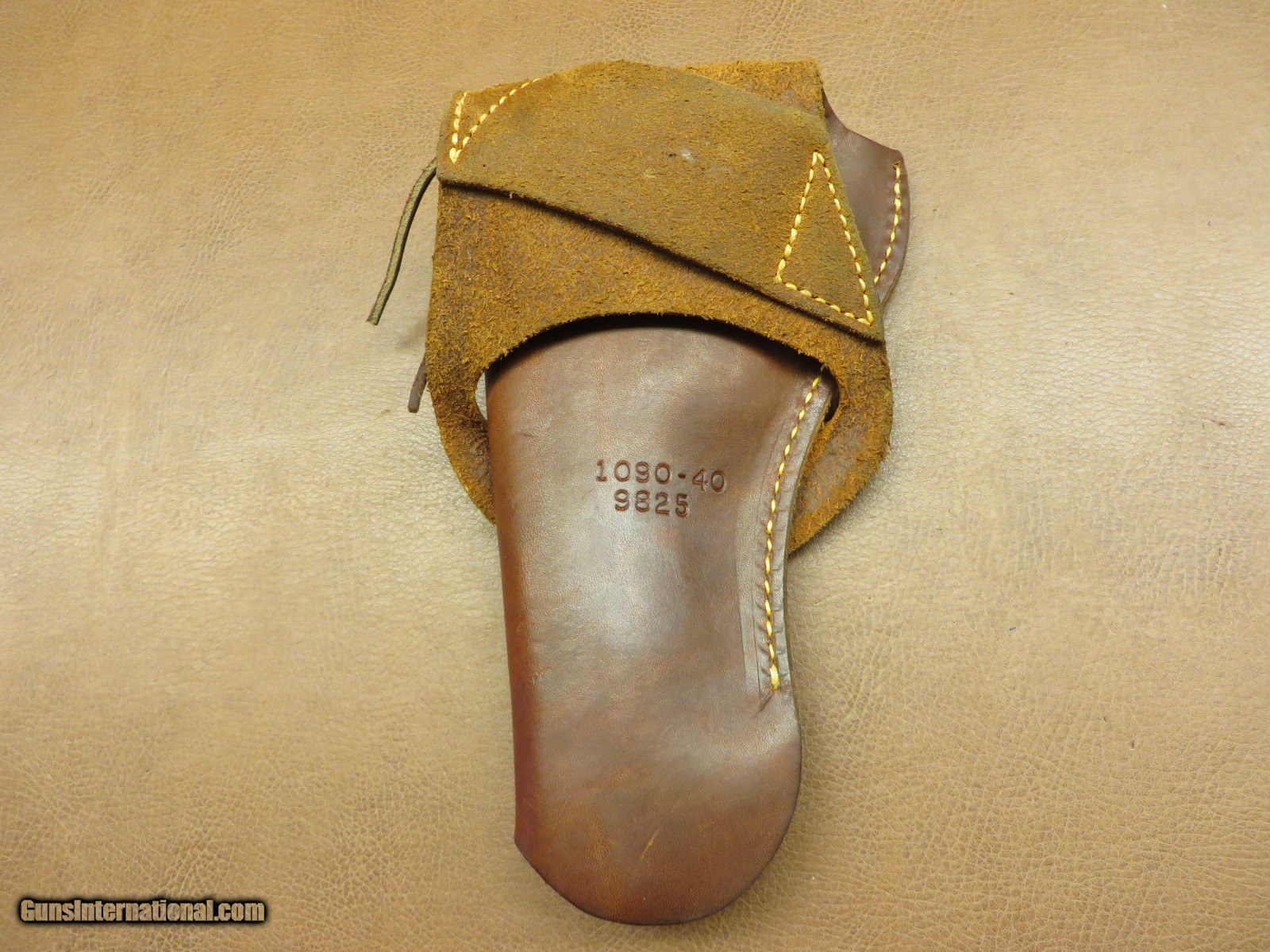 Description: Western style holster for single action revolver with up 4 3/4 inch barrel. Excellent used condition. SOLD |