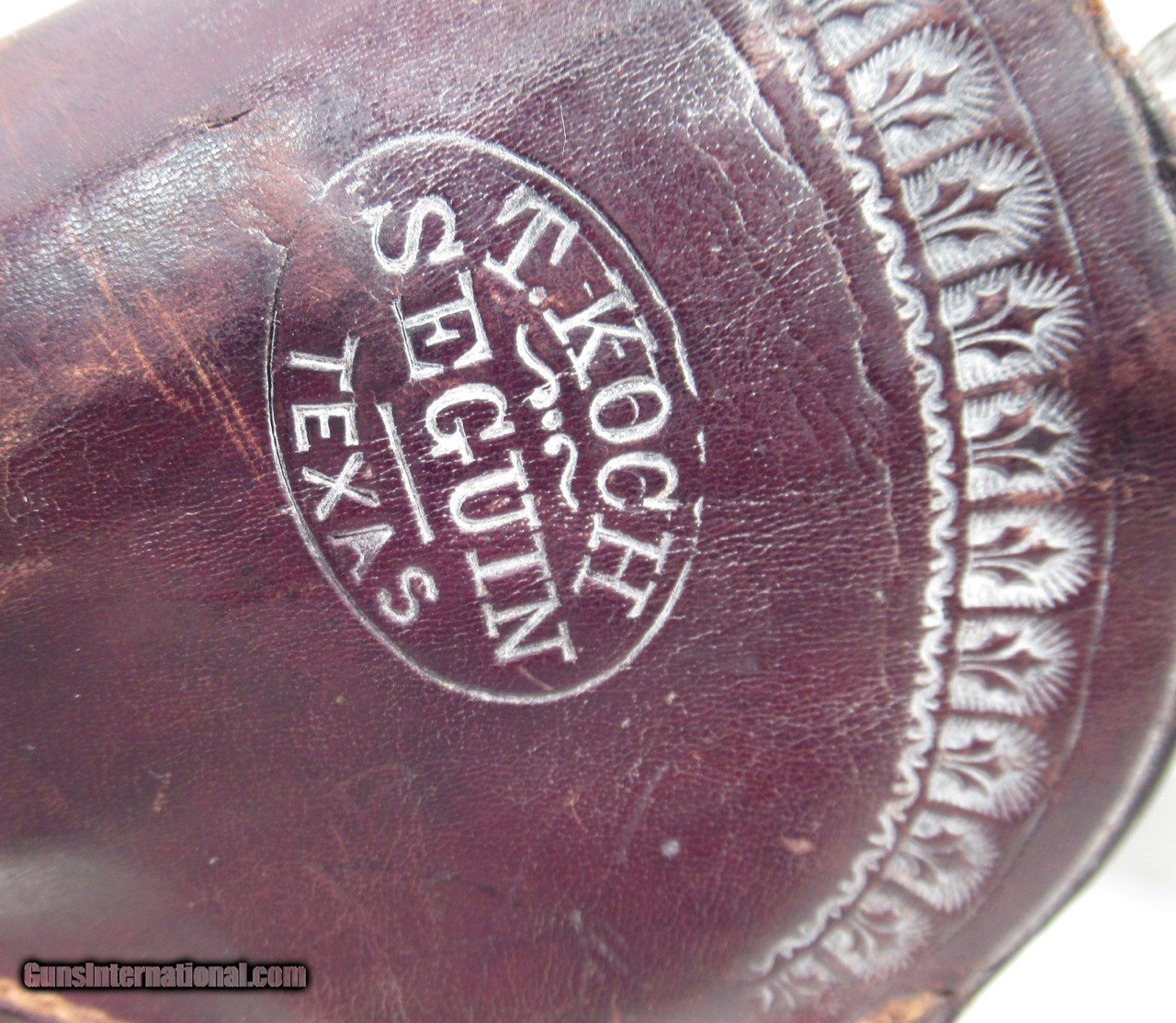 Description: Very Rare Texas Made Holster; Made by T. Koch of Seguin, Texas; Made for Colt Model 1877 Revolver with 3 ½” Barrel; Holster Only for Sale; Revolver for Display Purposes Only; See All Photos for Condition; No Texts; Call (254)541-5765 or Email Only; PERSONAL PROPERTY of Harold Wieser; Price: $1,775 + $45 S&H Via USPS PRIORITY MAIL; Payment Address: Harold Wieser - 1466 U.S. Hwy 77 - Rosebud, TX 76570; SEND PAYMENTS VIA USPS PRIORITY MAIL; BEWARE of SCAMS!!! – DO NOT SEND MONEY or CORRESPONDENTS ELECTRONICALLY UNLESS YOU HAVE SPOKEN to HAROLD WIESER FIRST! 254-541-5765 SOLD |