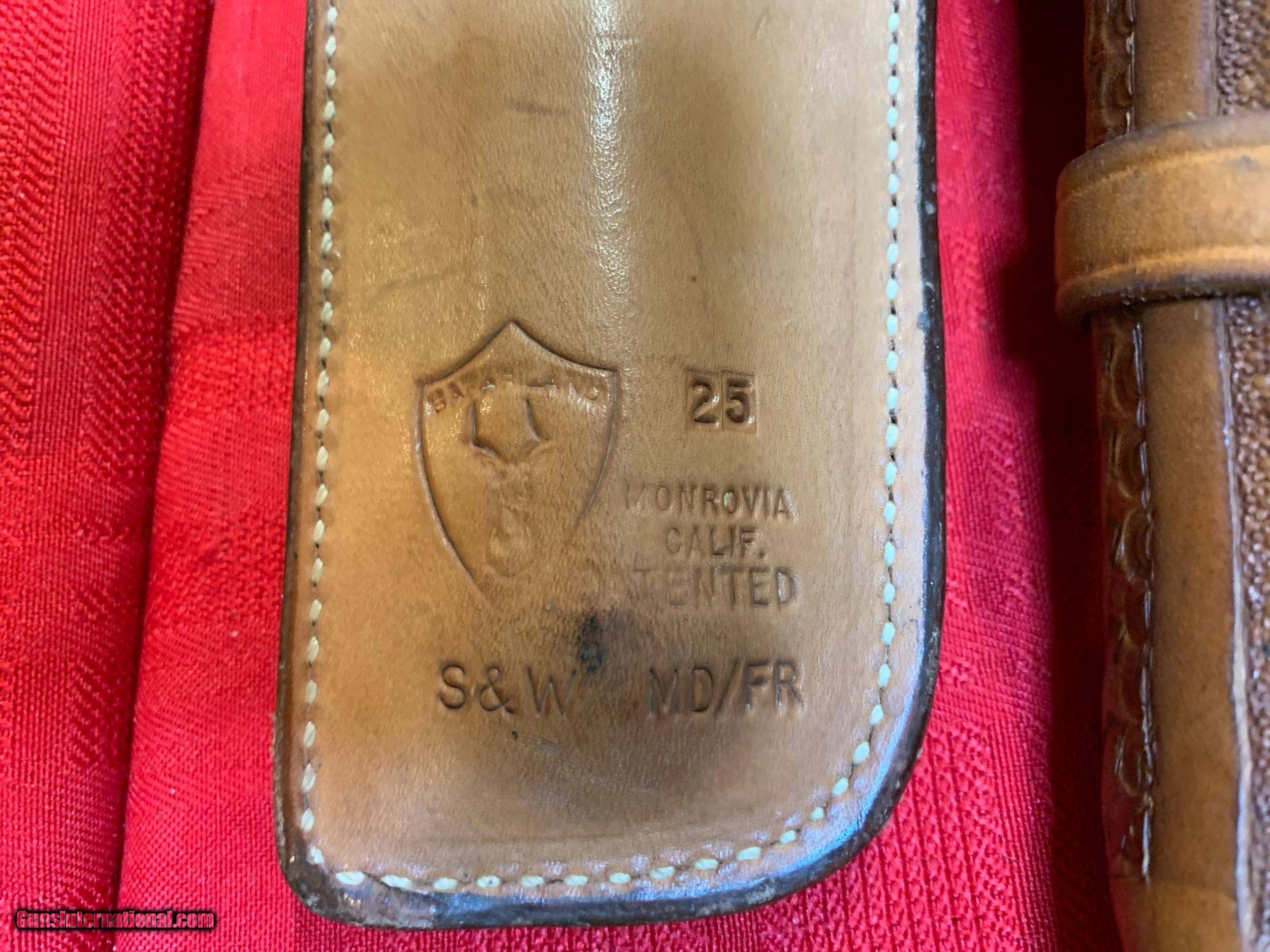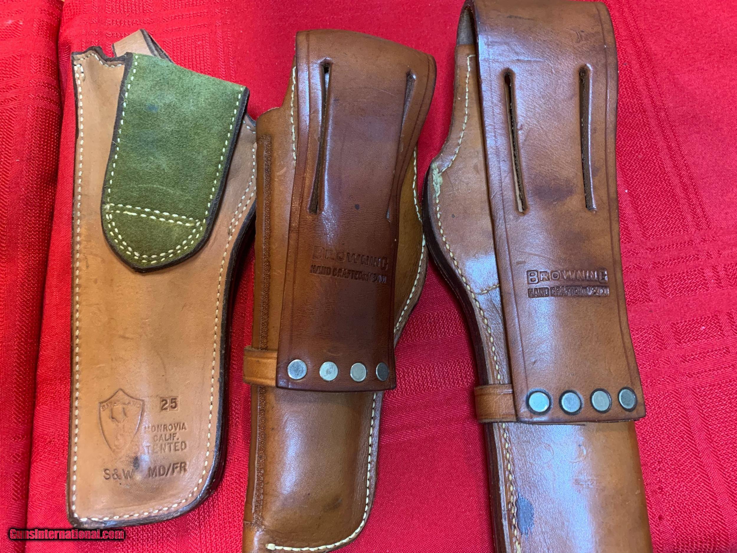 Description: Safariland Holster marked #25 S&W MD/FR. 9'" length Browning holster marked on back " BROWNING/ Handcrafted in Mexico. Length 9' " " " " " " Length 11 BROWNINGS SOLD SOLD |