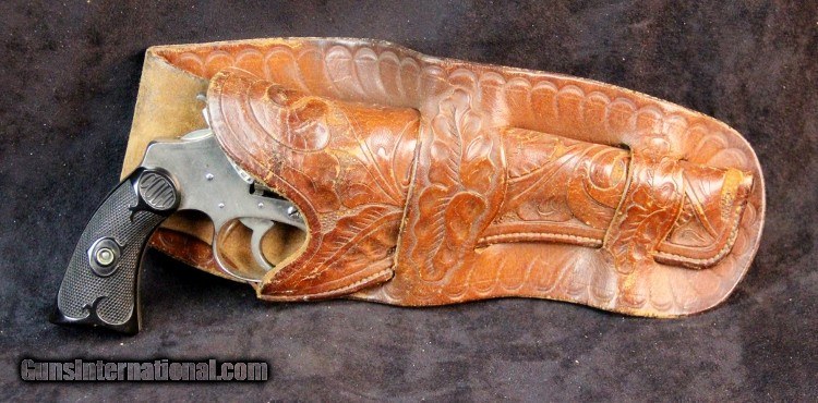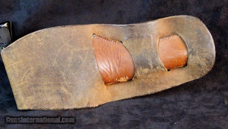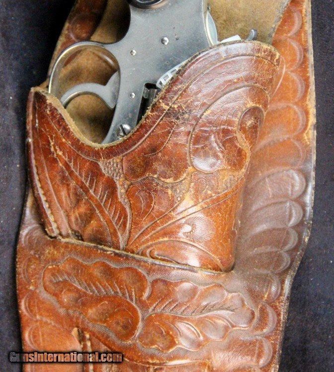Description: Shown with Colt Police Positive Special 6 inch, 11 1/2 inches overall, floral carving, no maker's mark, circa 1st decades of the 20th century. Condition: excellent overall, heavy leather, original seams. SOLD |