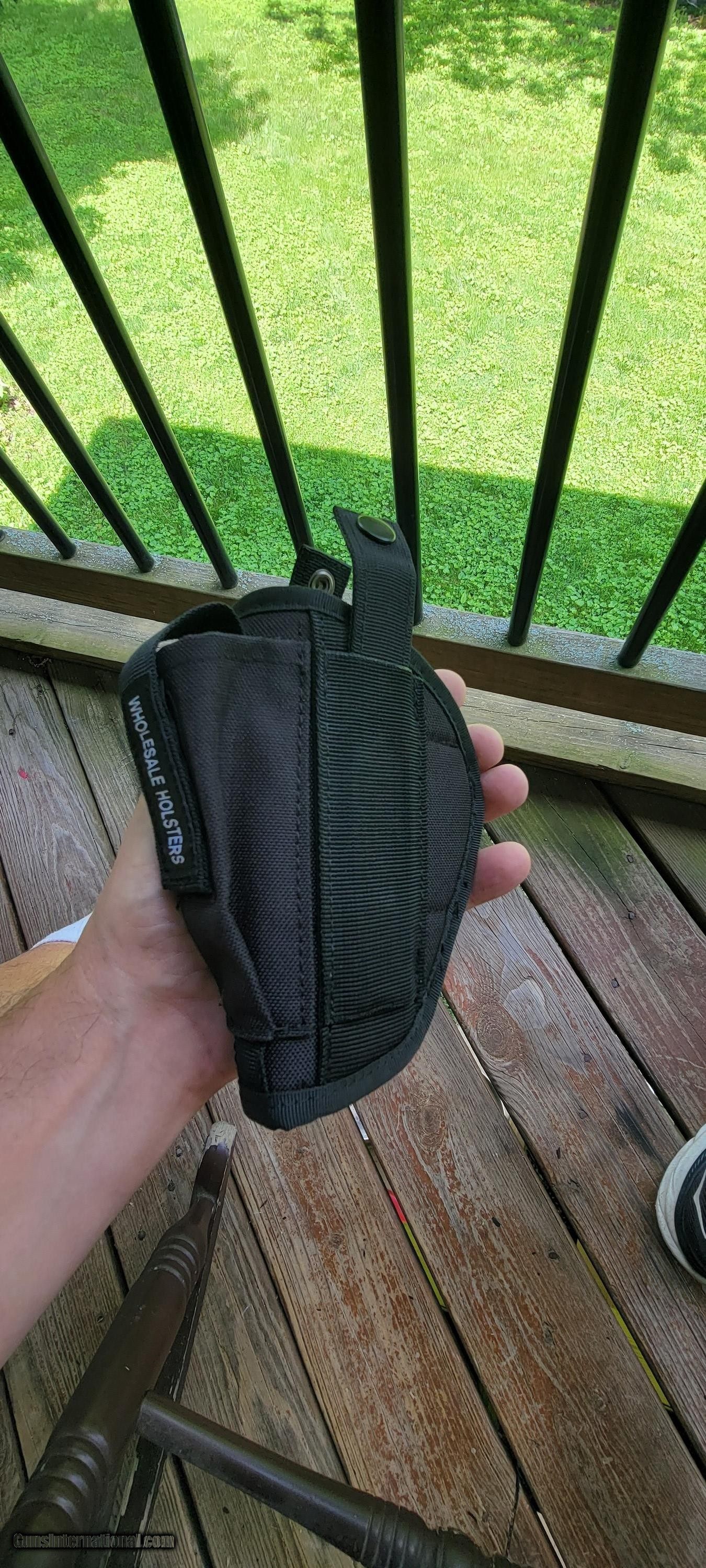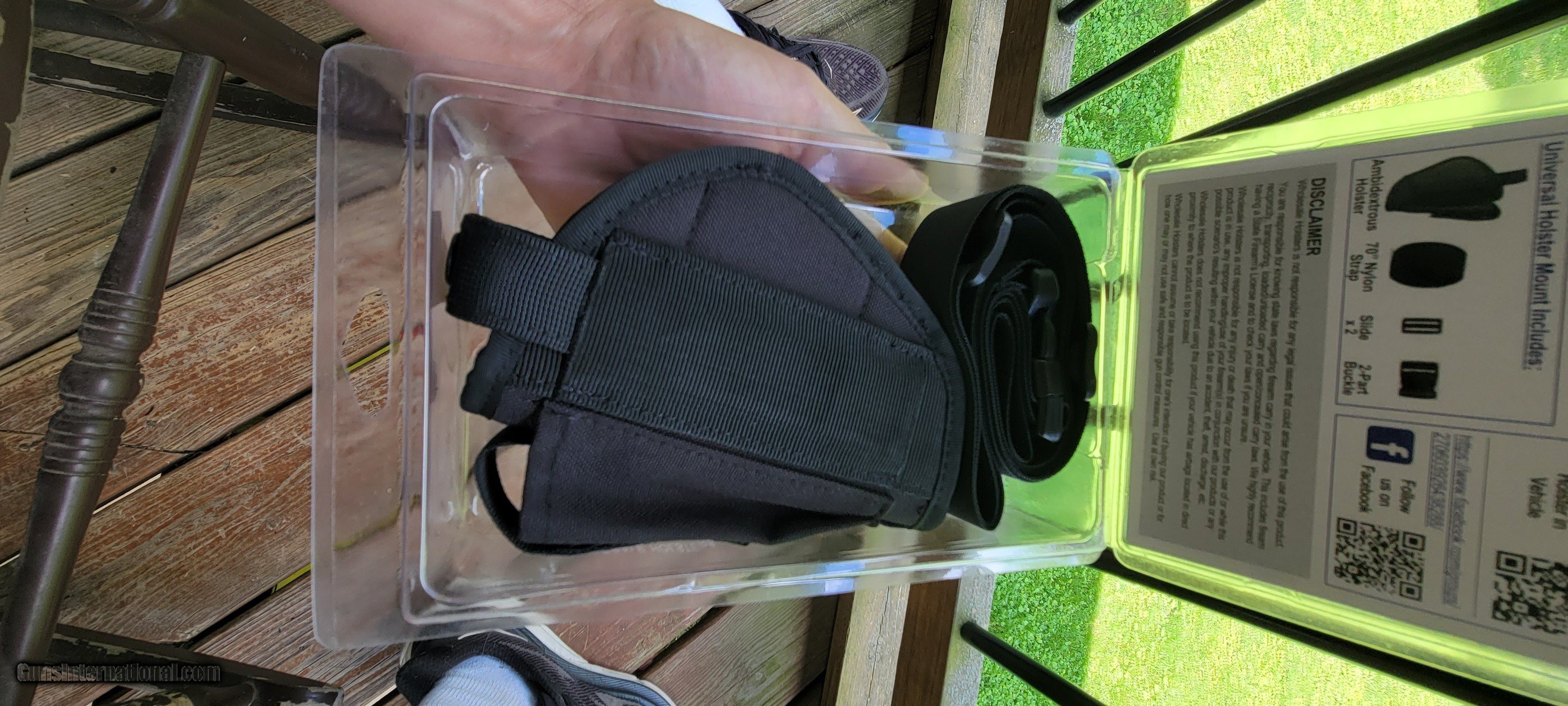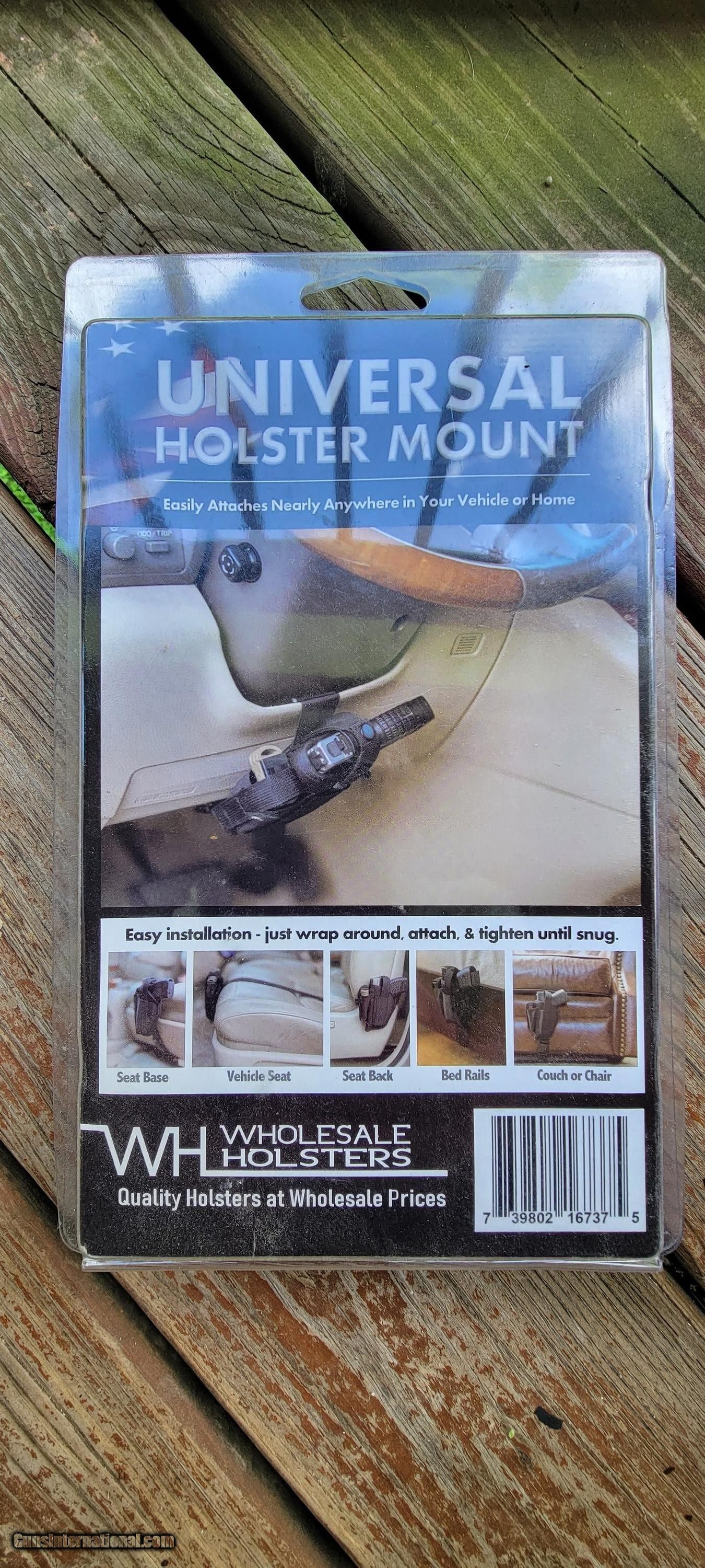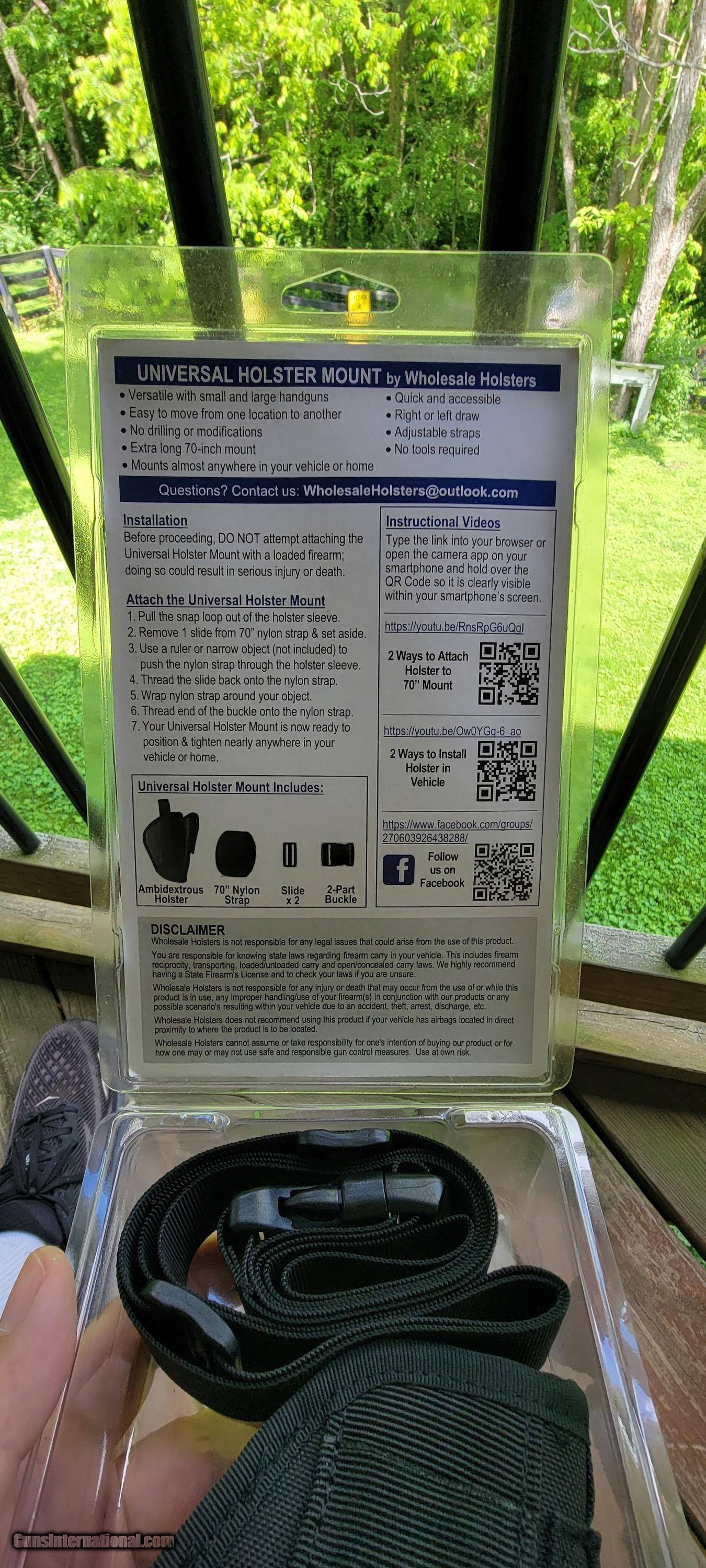 Description: Holtster mounting system. 70inch adjustable strap will hold this holster almost anywhere! Under the steering wheel is the most popular but I have one on my bed rail. The button straps are adjustable and removable. The mag pouch will hold 2 single stacks or 1 double. The holster is padded and will hold ANY handgun(without an optic)! Price includes shipping in the US SOLD |