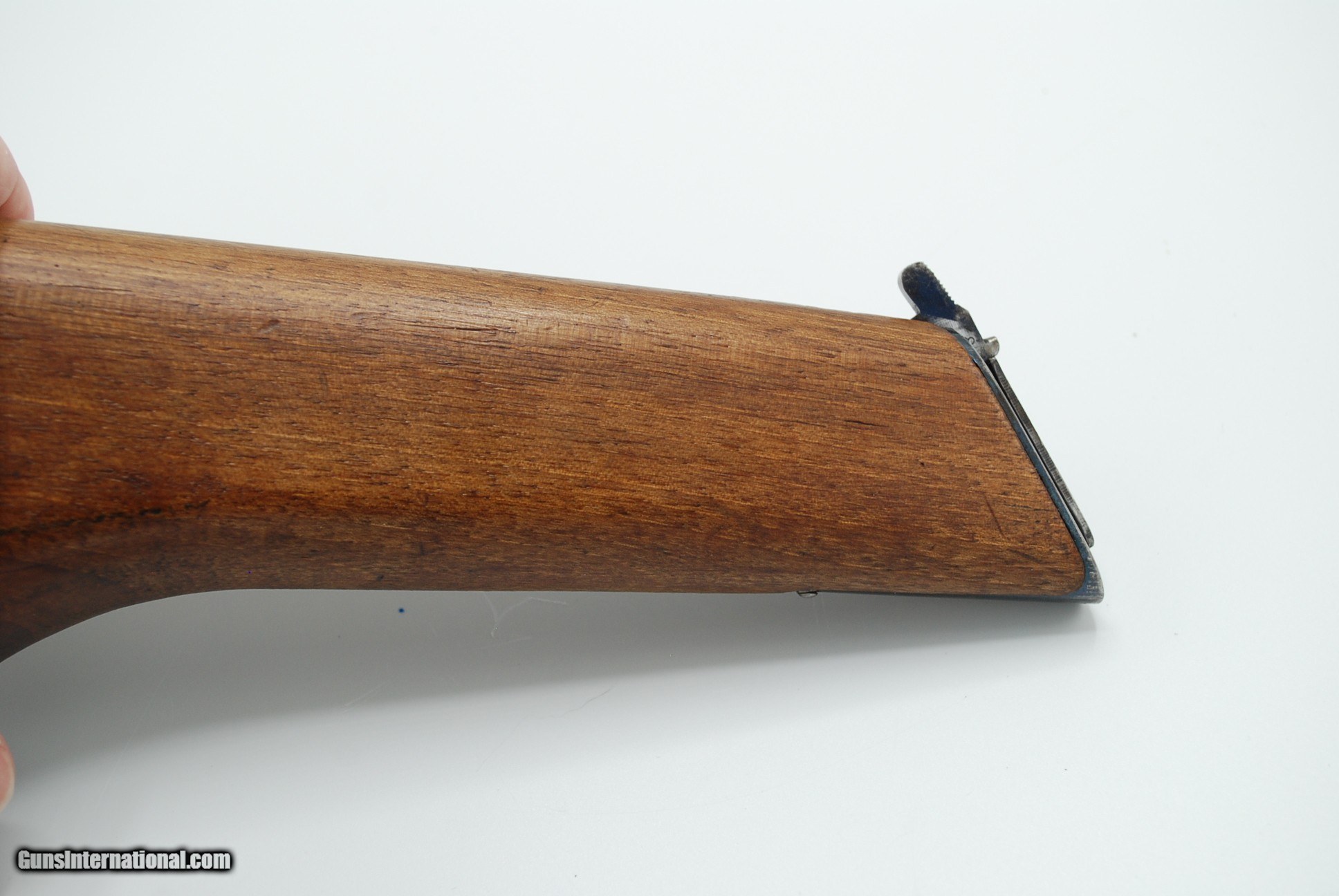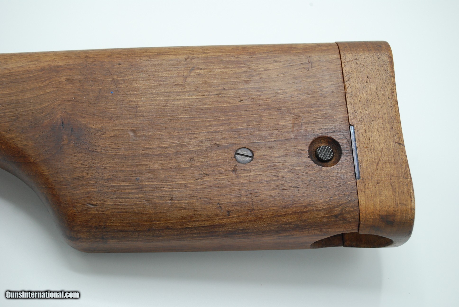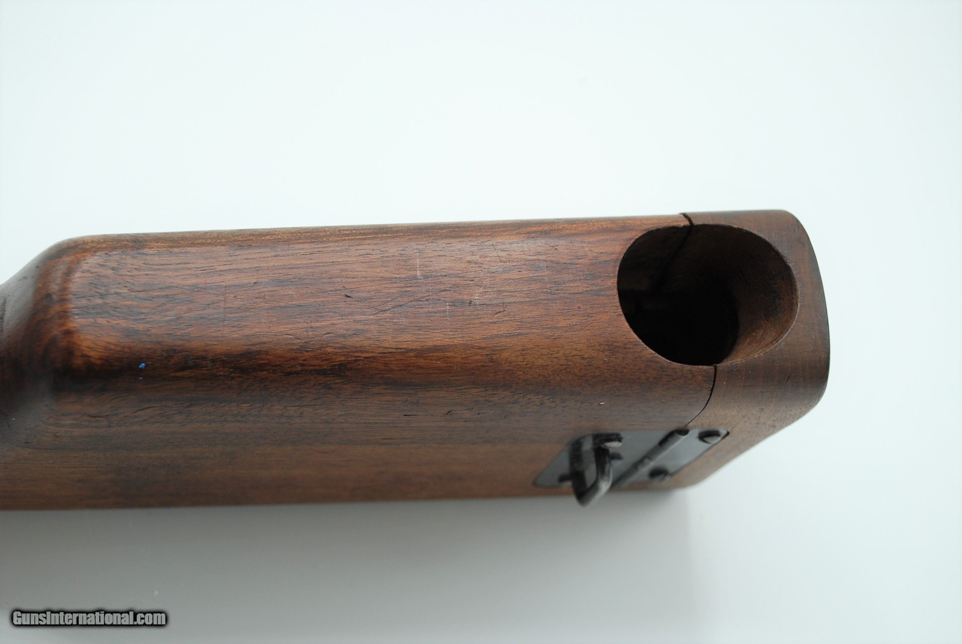 Description: Ok, in 15 years of doing this full time this is only the second one Ive had. They looks almost identical to Mauser shoulder stocks but they are beefier, wider, slightly longer and made of different wood. They also have serial numbers stamped on the inside of the lid. This particular one is in excellent all original condition, with no cracks or chips. Most of the original varnish is present on the wood and most of the metal parts retain original blue. Everything functions flawlessly. SOLD |