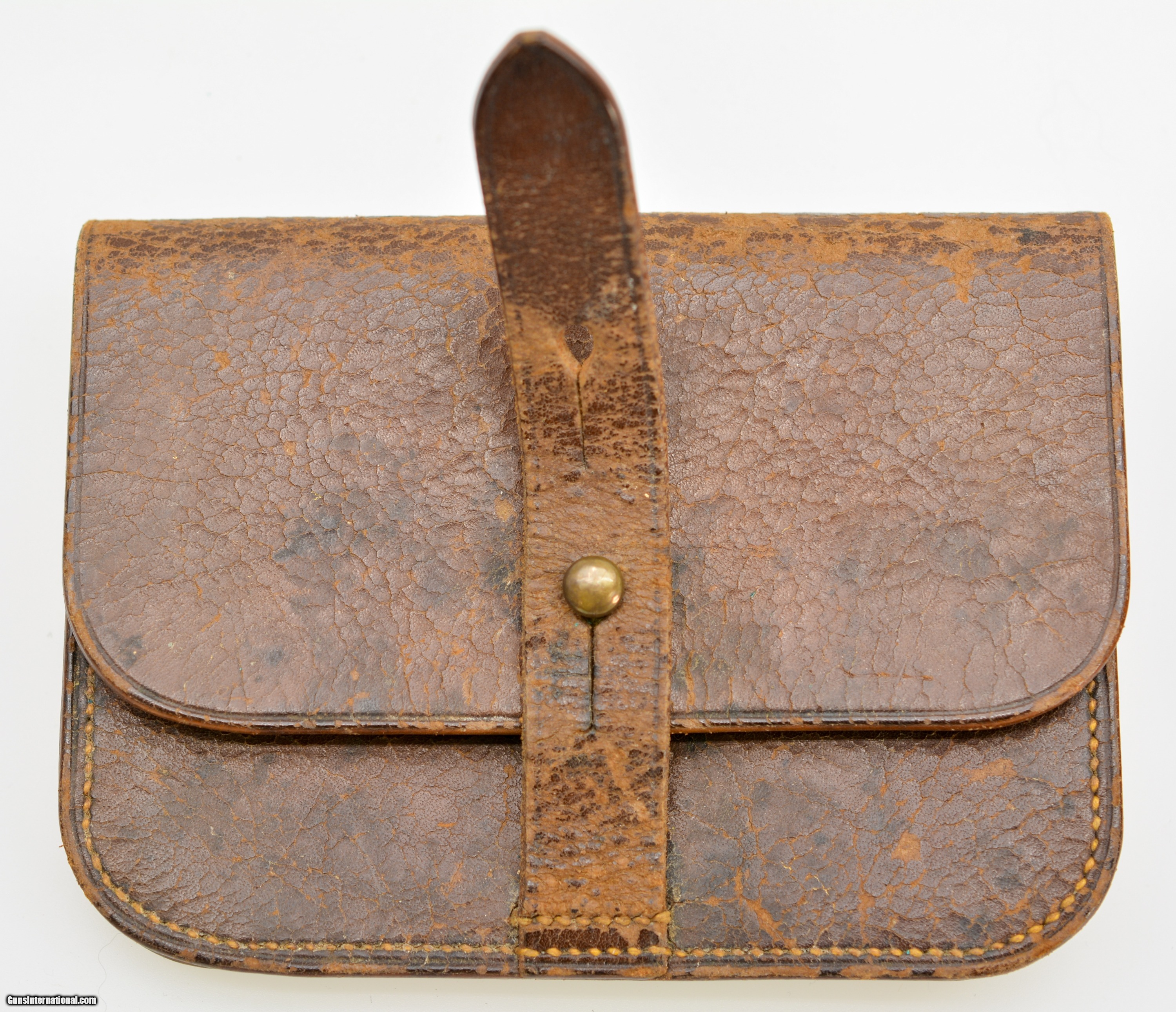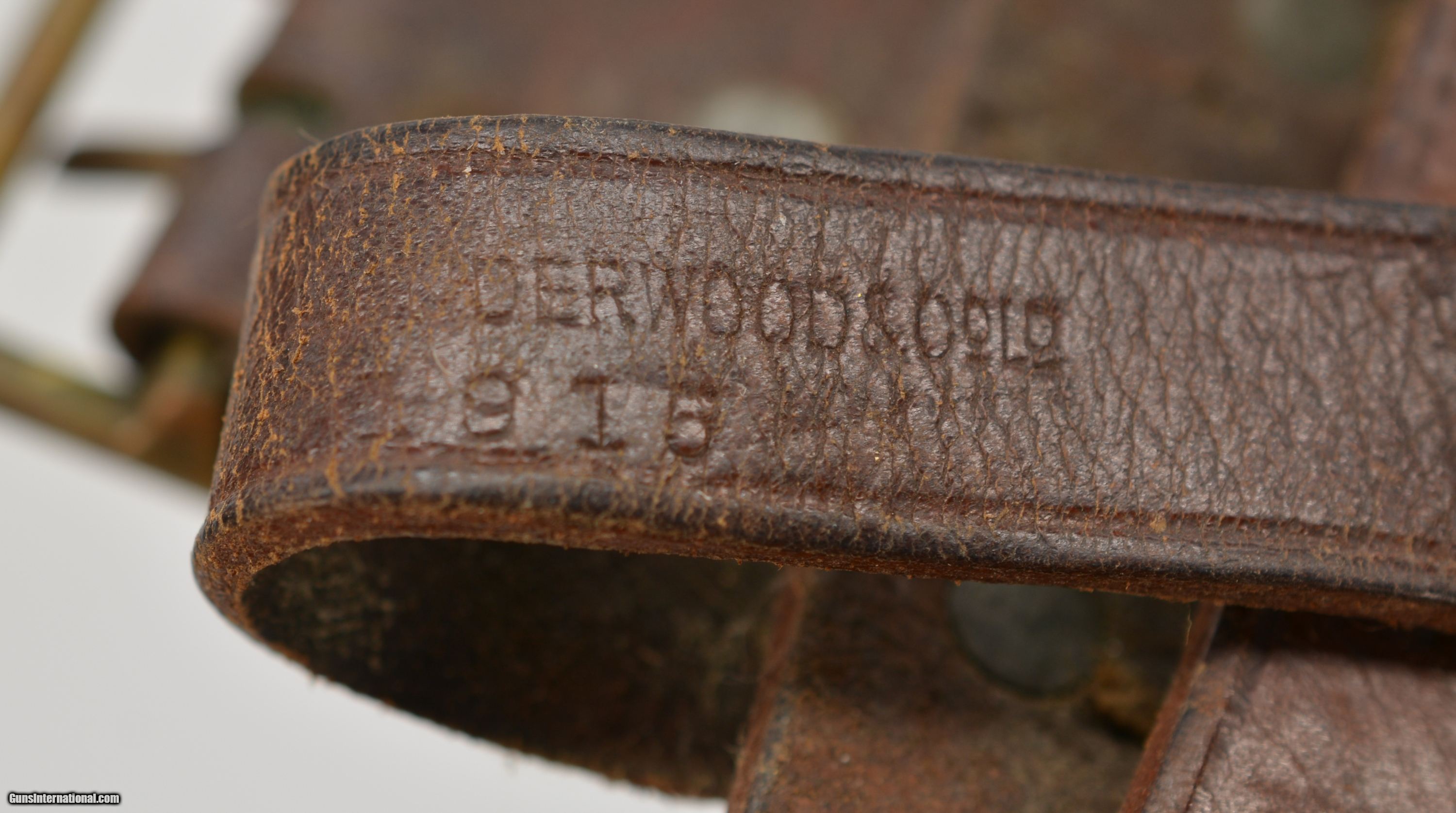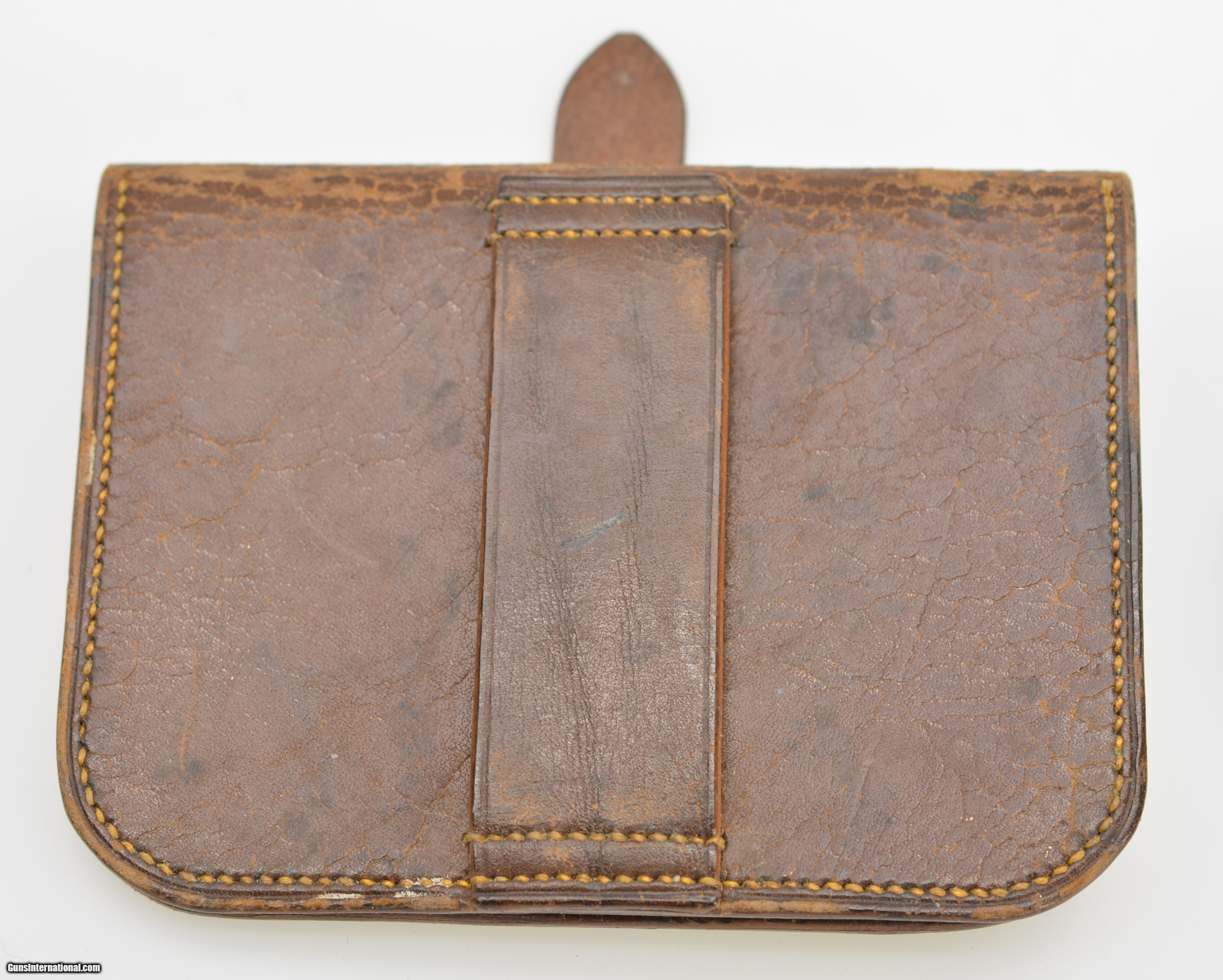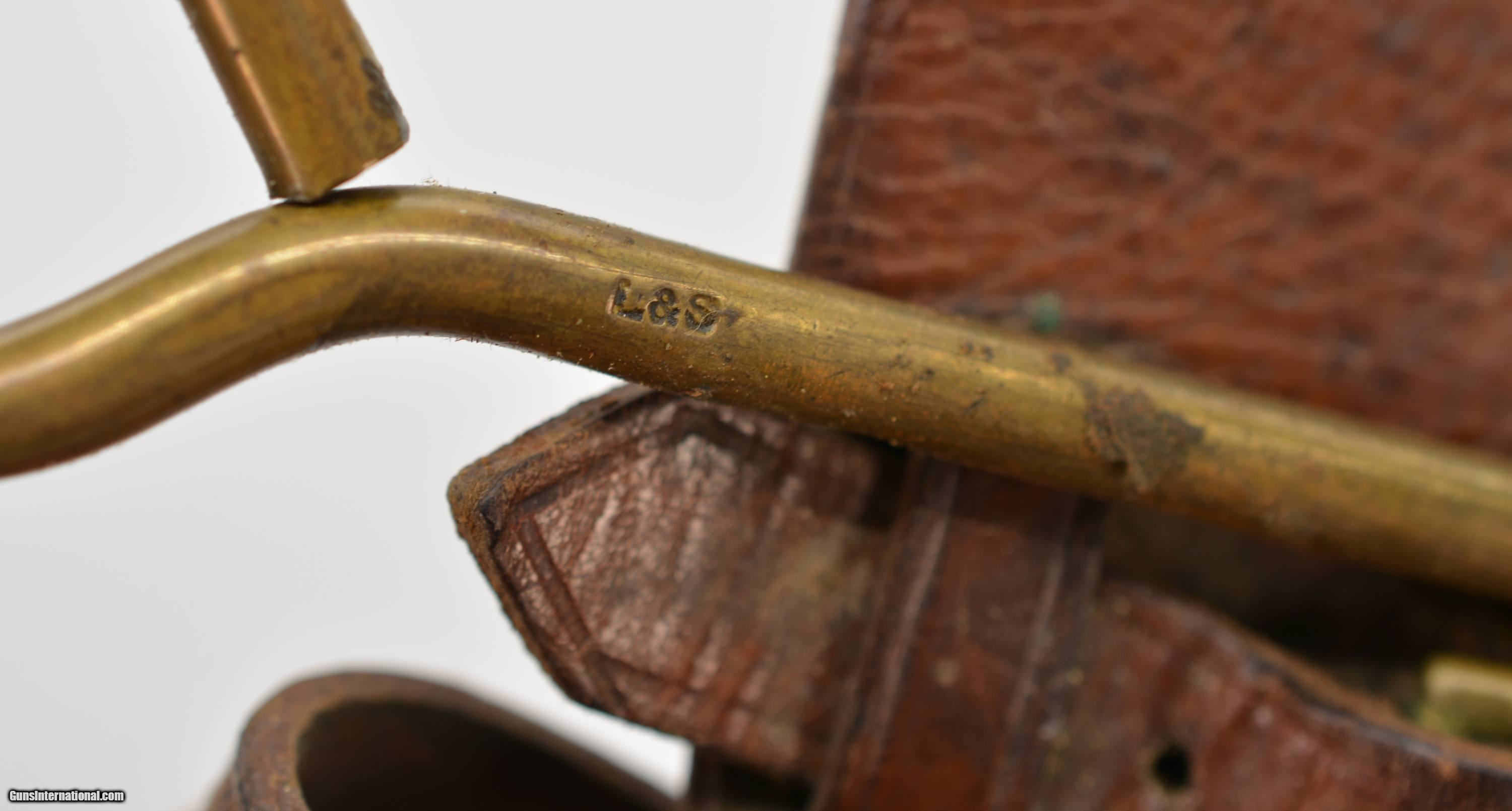 Description: This is an open-top holster and cartridge pouch set belonging to Major R.R. Gardner of the Royal Welch Fusiliers. The holster is designed to accommodate large frame revolvers such as the Webley Mark VI and is stamped “Underwood & Co. Ltd" 1915 with the original brass cleaning rod stamped “L&S" with sound stitching and supple leather. The ammunition pouch is marked on the inside flap with “Major R.R. Gardner R.W.F." and is in very good condition with some surface crazing and flaking of the finish. A very nice, identified, World War I holster set. SOLD Manufacturer: Webley Model: Holster |
