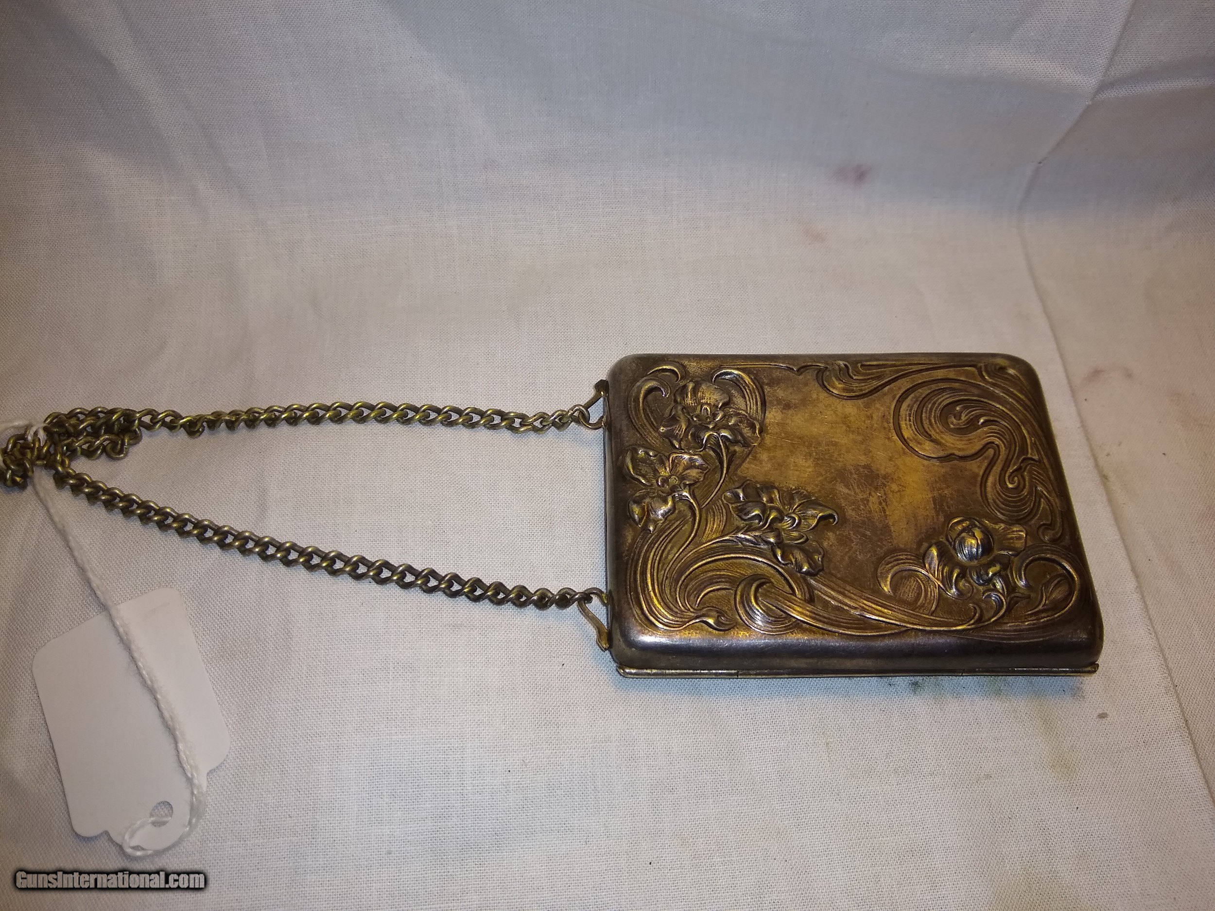 Description: Early 1900's Silver top leather beaded purse. Silver compact with leather interior. I can't find the silver markings but I think both are silver. I will except any reasonable offer! SOLD |