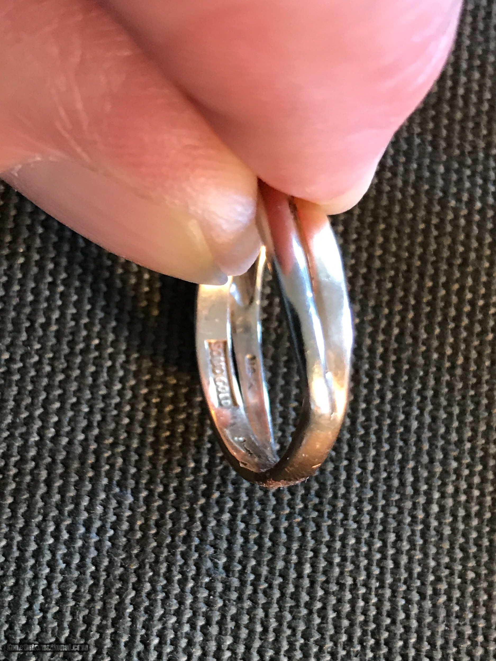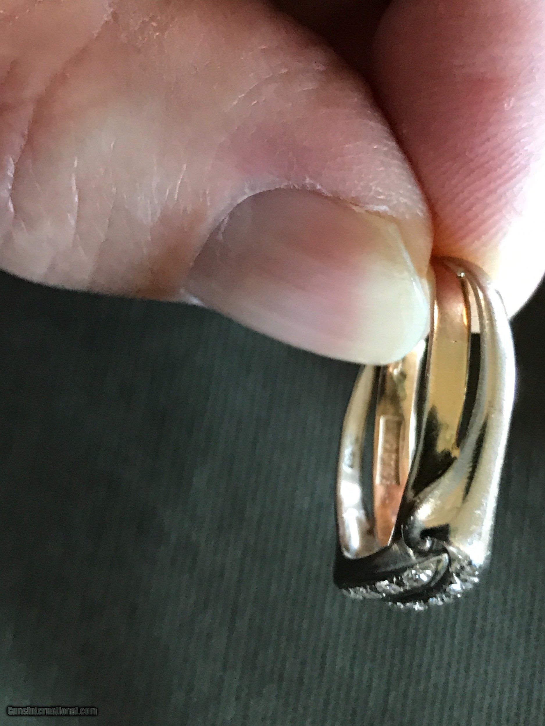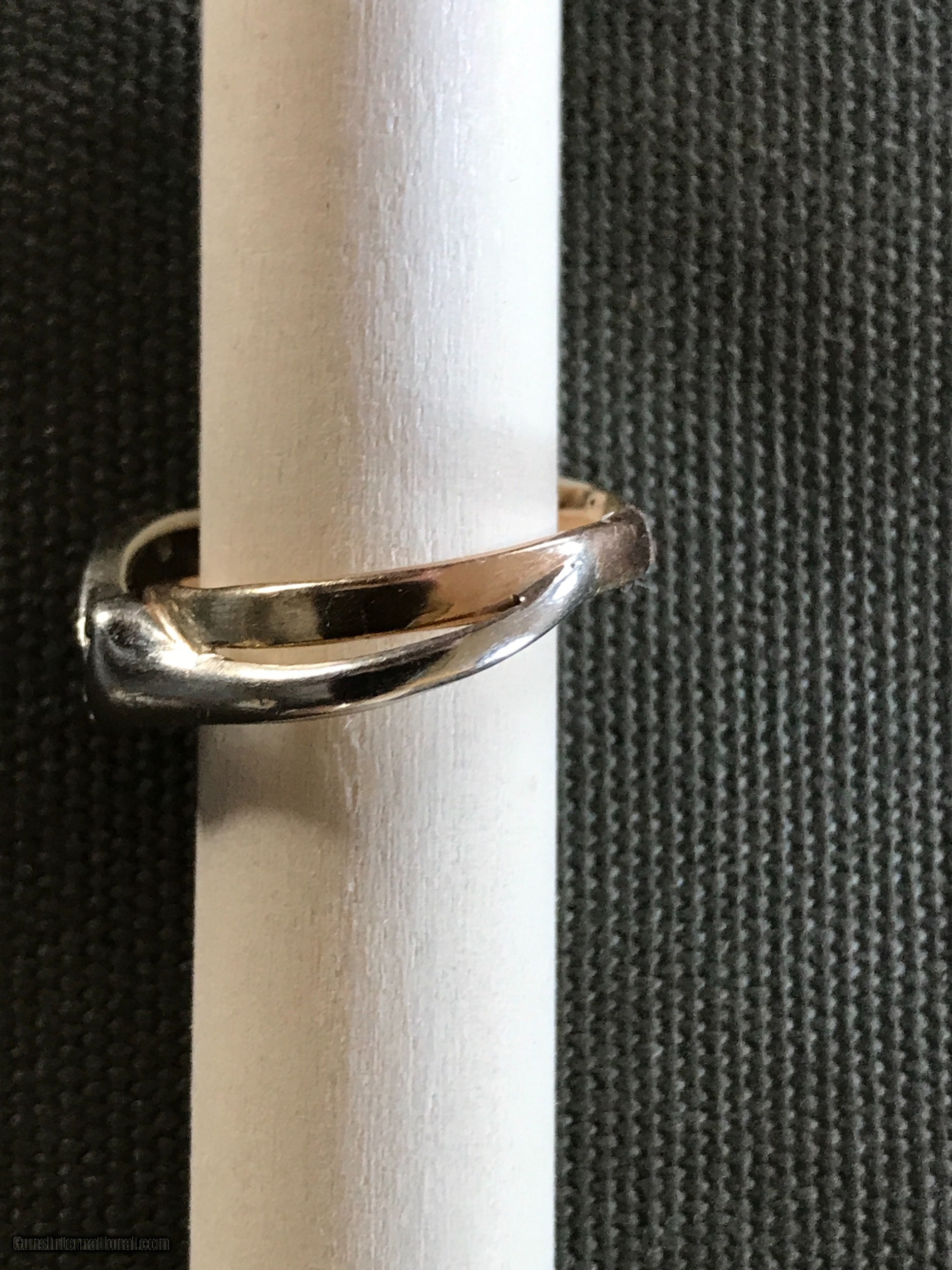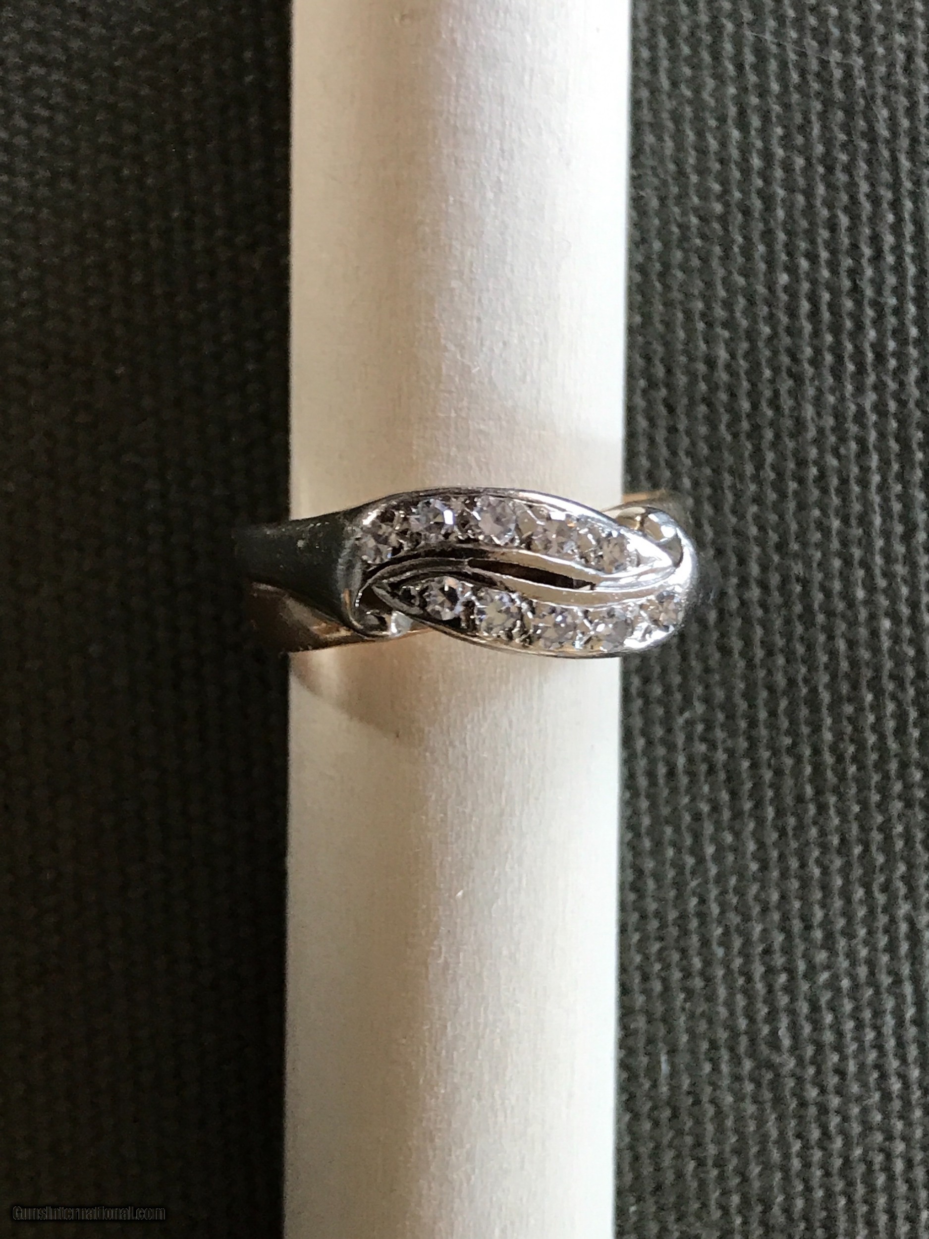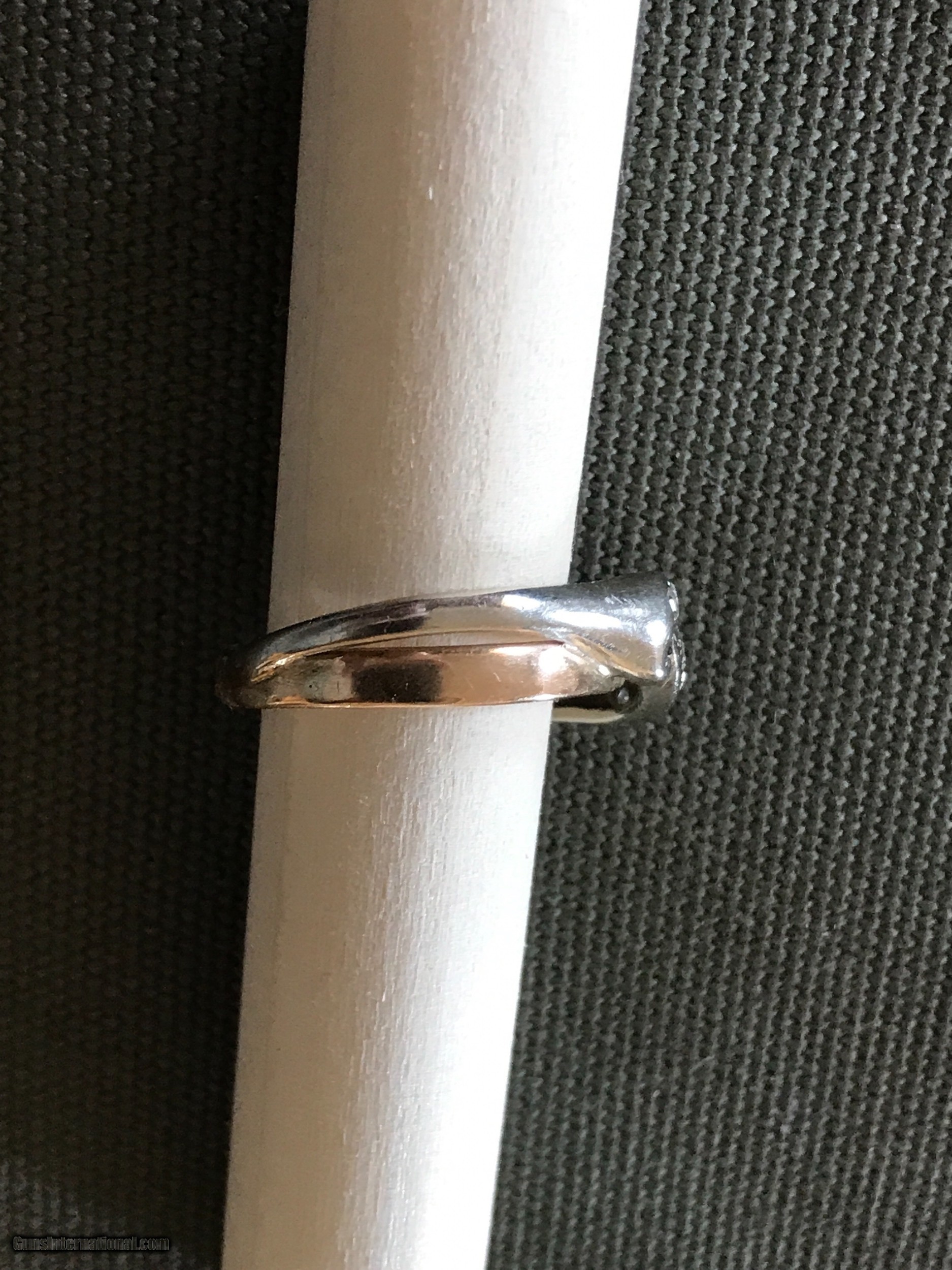 Description: Beatiful Ladies 10 K white & yellow gold ring with 10 Diamonds. 4.6 Gams total weight Size ? 3/4 inch inside diameter SOLD |