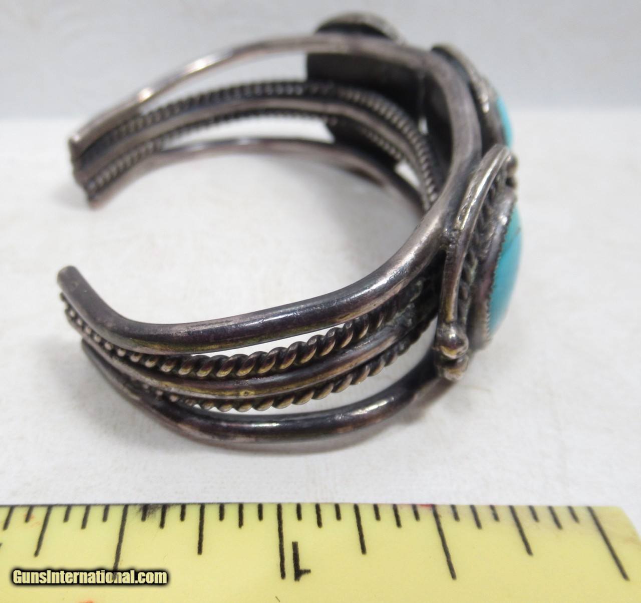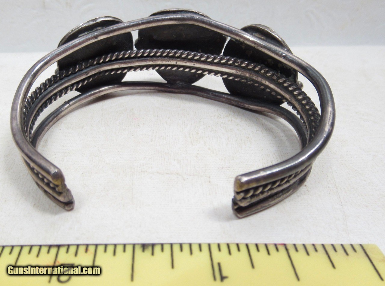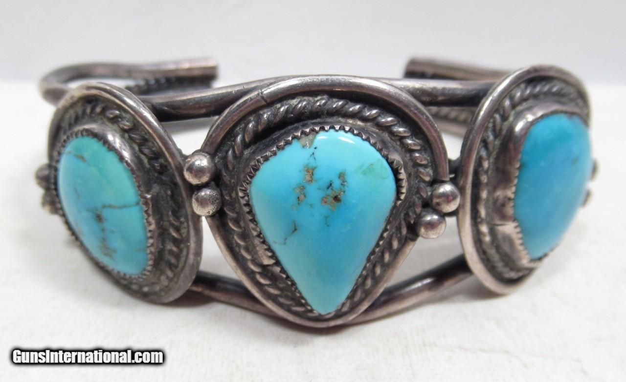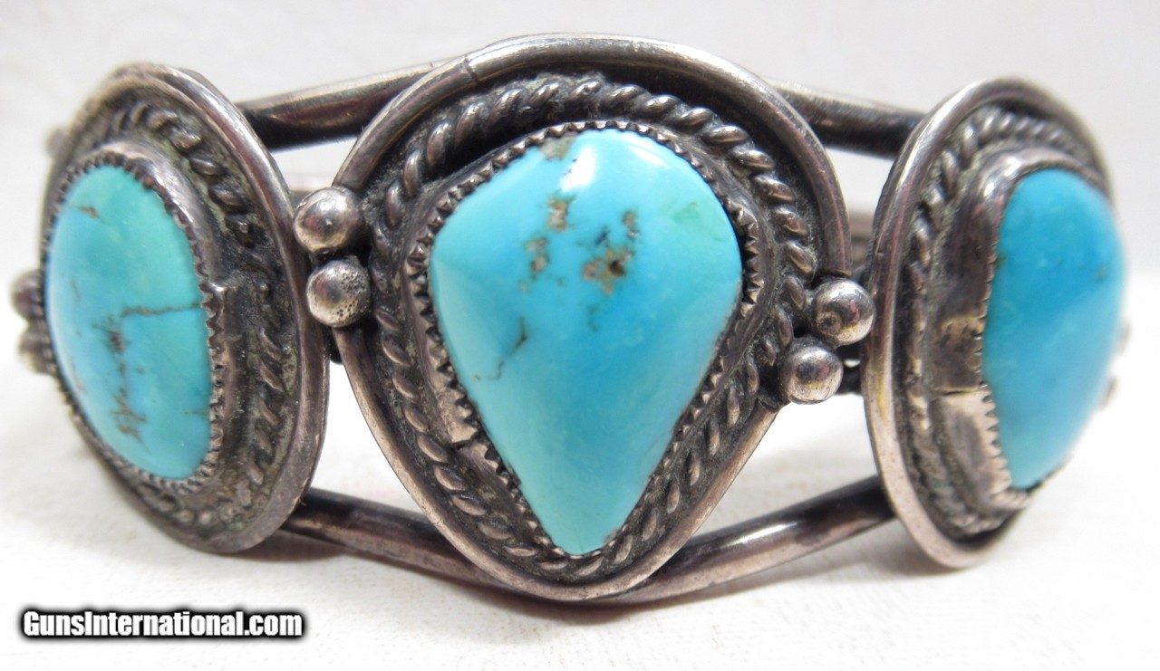 Description: Native American Silver Bracelet with 3 Turquoise Stones; See Photos for Measurements; See All Photos for Condition; No Texts; Call (254)541-5765 or Email Only; PERSONAL PROPERTY of Harold Wieser; NOTICE: We Do Not Do Any Consignments - All Items Listed are Owned by Us - NO SALES to New Jersey or New York City - Antiques Only to Massachusetts and California; Price: $775 + $15 S&H Via USPS PRIORITY MAIL; Payment Address: Harold Wieser - 1466 U.S. Hwy 77 - Rosebud, TX 76570; SEND PAYMENTS VIA USPS PRIORITY MAIL; BEWARE of SCAMS!!! – DO NOT SEND MONEY or CORRESPONDENTS ELECTRONICALLY UNLESS YOU HAVE SPOKEN to HAROLD WIESER FIRST! 254-541-5765 SOLD |