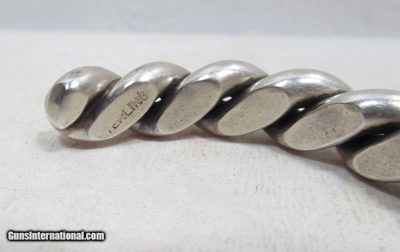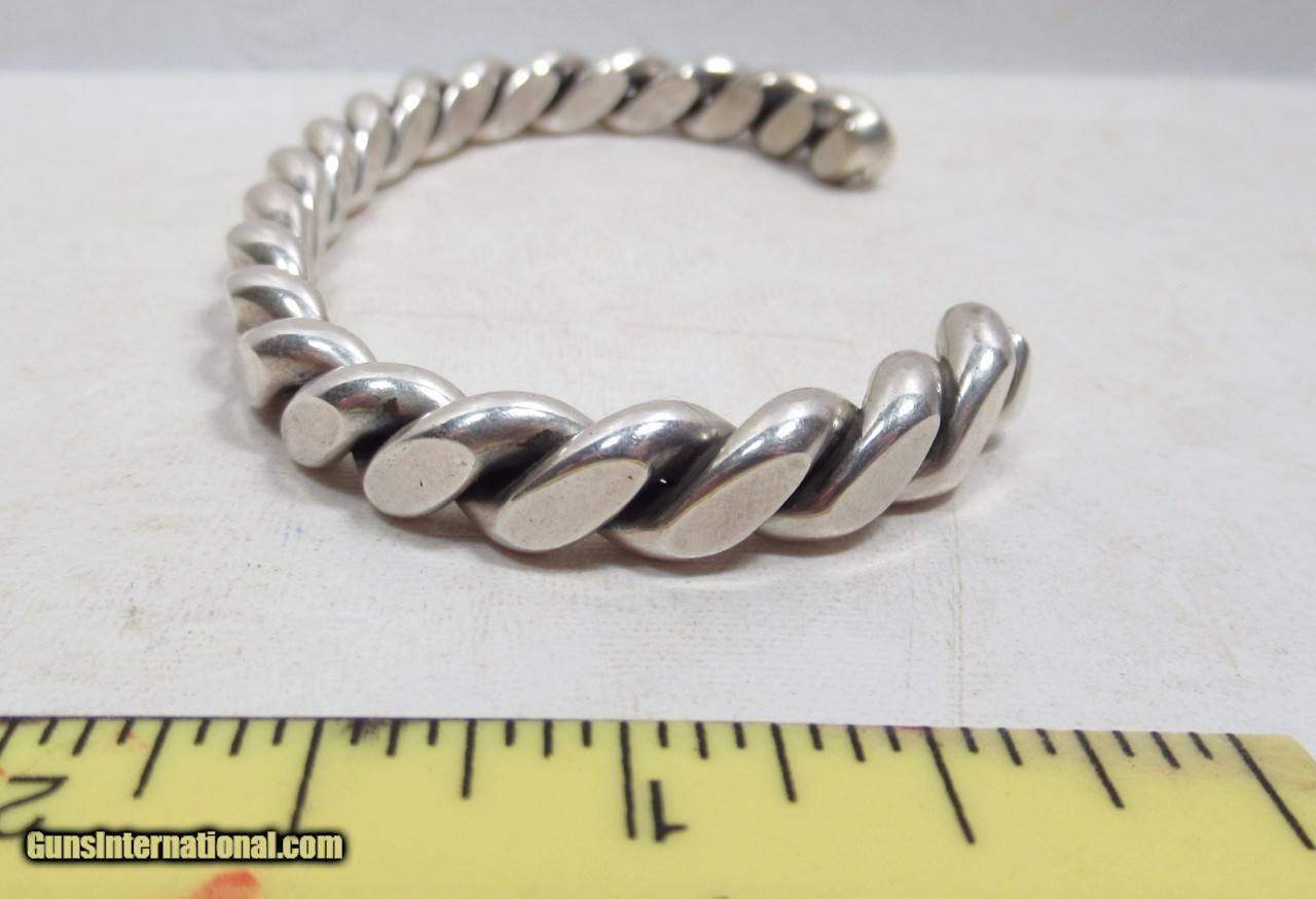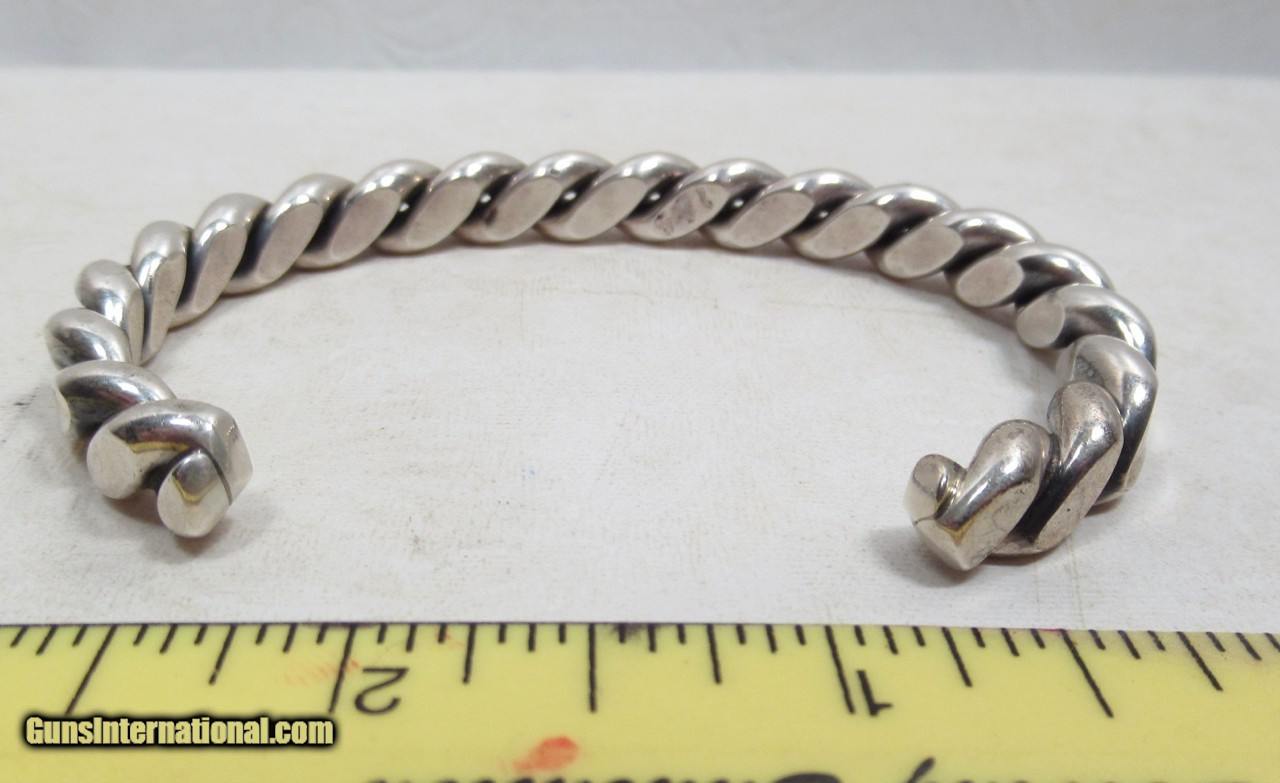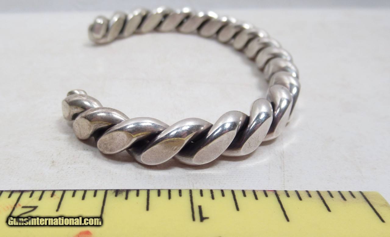 Description: Native American Rope Design Bracelet; Heavy; Marked “Sterling”; See Photos for Measurements; See All Photos for Condition; No Texts; Call (254)541-5765 or Email Only; PERSONAL PROPERTY of Harold Wieser; NOTICE: We Do Not Do Any Consignments - All Items Listed are Owned by Us - NO SALES to New Jersey or New York City - Antiques Only to Massachusetts and California; Price: $175 + $15 S&H Via USPS PRIORITY MAIL; Payment Address: Harold Wieser - 1466 U.S. Hwy 77 - Rosebud, TX 76570; SEND PAYMENTS VIA USPS PRIORITY MAIL; BEWARE of SCAMS!!! – DO NOT SEND MONEY or CORRESPONDENTS ELECTRONICALLY UNLESS YOU HAVE SPOKEN to HAROLD WIESER FIRST! 254-541-5765 SOLD |
