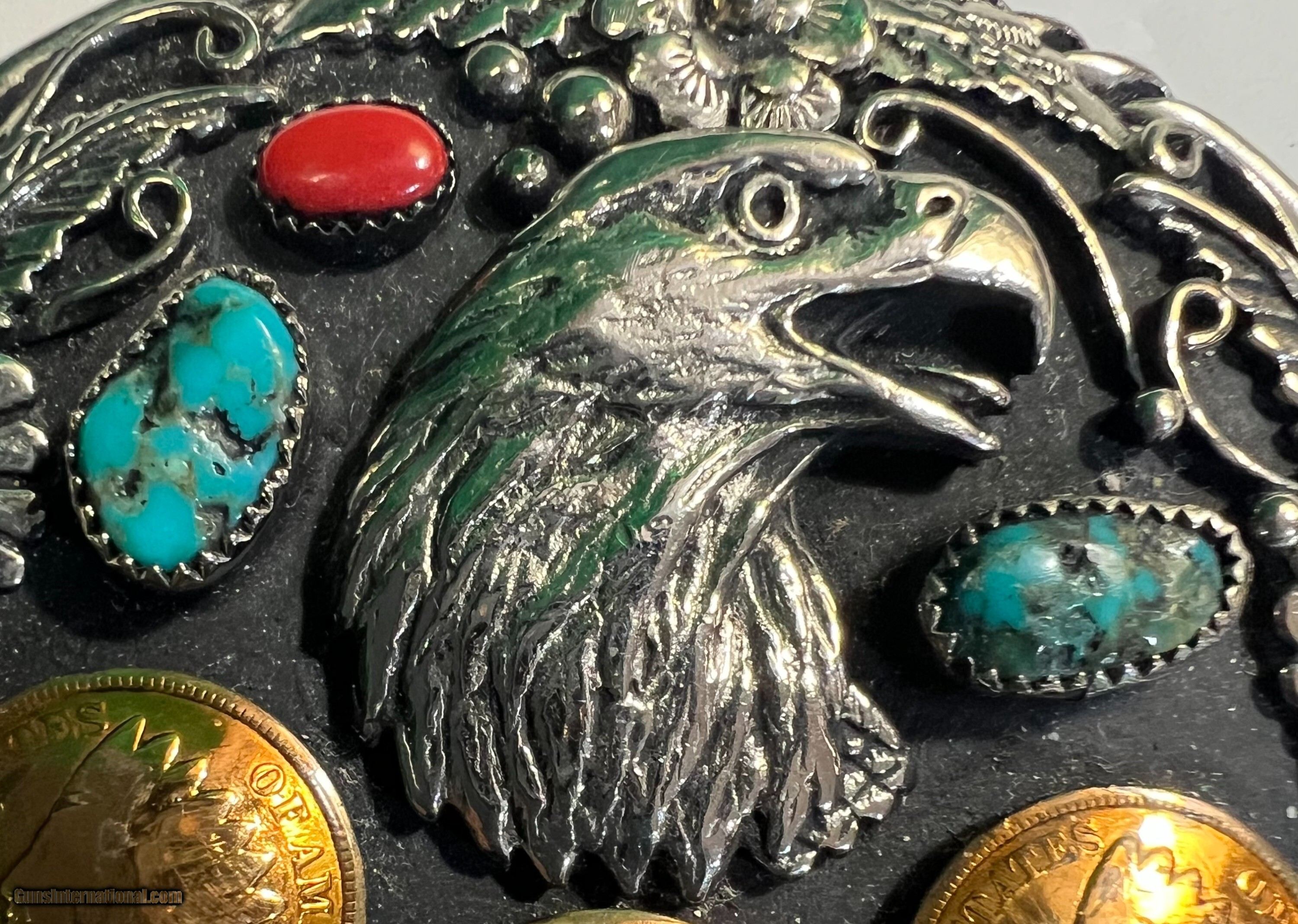 Very Large Western Turquoise Belt Buckle for Wear or Holster #2