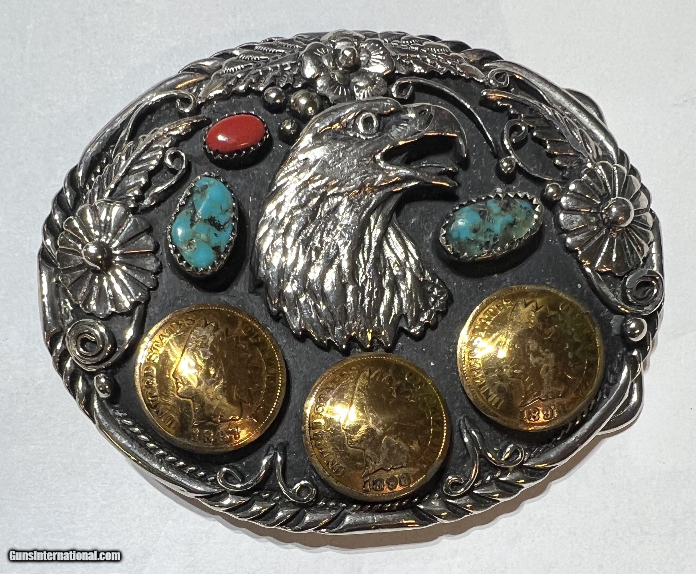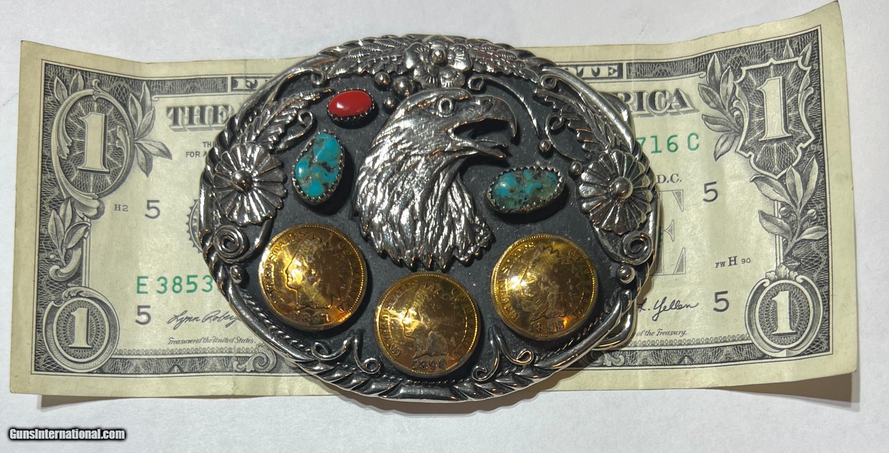 Description: Very Large Western Turquoise Belt Buckle for Wear or Holster #2 Shipping $7 SOLD |