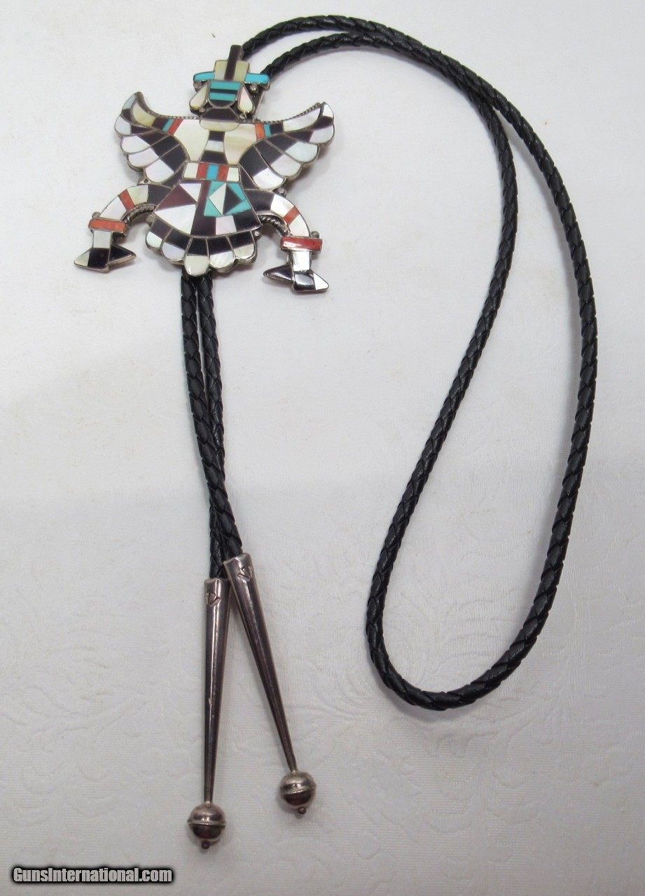 Description: Very High Quality Zuni Bola Tie Knife Wing; ½ Man and ½ Eagle; Inlay and Channel Work; Coral, Turquoise, Jet, and Pearl; See All Photos for Condition; No Texts; Call (254)541-5765 or Email Only; PERSONAL PROPERTY of Harold Wieser; Price: $375 + $45 S&H Via USPS PRIORITY MAIL; Payment Address: Harold Wieser - 1466 U.S. Hwy 77 - Rosebud, TX 76570; SEND PAYMENTS VIA USPS PRIORITY MAIL; BEWARE of SCAMS!!! – DO NOT SEND MONEY or CORRESPONDENTS ELECTRONICALLY UNLESS YOU HAVE SPOKEN to HAROLD WIESER FIRST! 254-541-5765 SOLD |