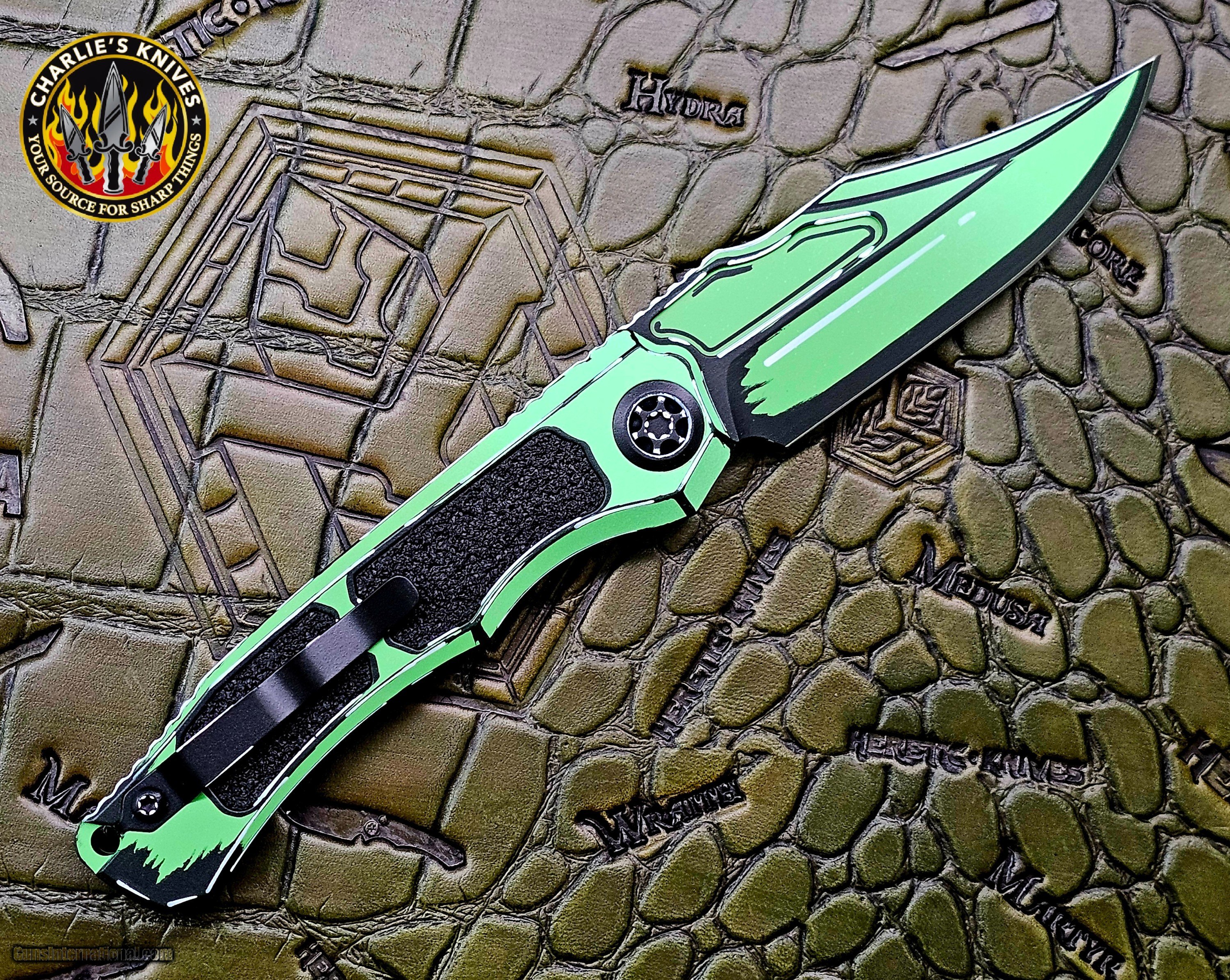 Heretic Knives Wraith Auto V4 Cel Shade Toxic Green w/ Bowie MagnaCut H002-CS-TX