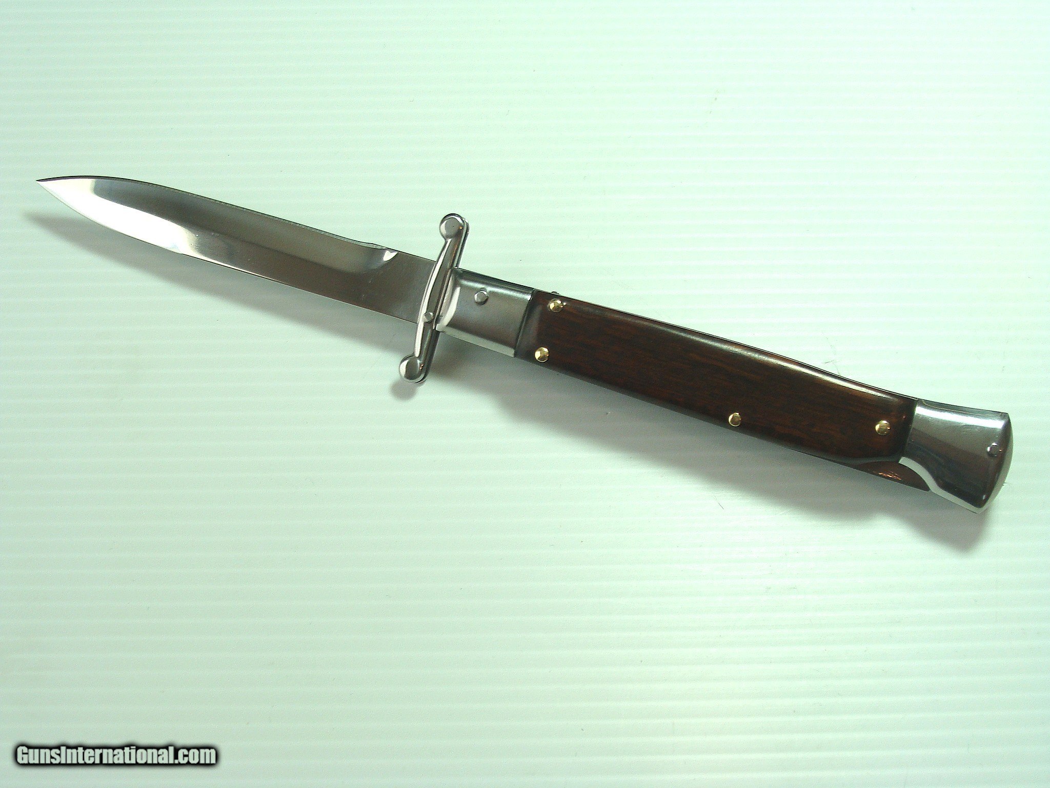 Description: SUPERB 9" ITALIAN MADE SWITCHBLADE AUTOMATIC KNIFE WITH THICK, REAL ZEBRA WOODEN HANDLES. THIS SWITCHBLADE IS IN MINT CONDITION, AND COMES WITH A SYNTHETIC NYLON POUCH. THE 4" BAYONET STYLE BLADE IS RAZOR SHARP! THE KNIFE HAS A REAR FRAME-LOCK THE BLADE RELEASE. THE HANDLE HAS A SLIDING SAFETY LOCK AS WELL. ~~~~~~~~~~~~~~~~~~~~~~~~~~~~~~~~~~~~~~~~~~~~~~~~~~~~~~~~~~~~~~~~~~~~~~~~~~~~~~~~~~~~~~~~~~~~~~~~~~~~~~~~~~~~~~~~~~~~~~~~~~~~~~~~~~~~~~~~~~~~~~~~~~~~~~~~~~~~~~~~~~~~~~~ NO guarantee or warranty is expressed or implied as to the usability of the items for its original purpose. The buyer certifies that he or she is of lawful age and is not prevented by any law from the purchase or possession of these items. No guarantee or warranty is expressed or implied as to the usability of the items for its original purpose. The buyer certifies that he or she is of lawful age and is not prevented by any law from the purchase or possession of these items. The buyer is responsible for knowing, understanding and obeying all International, Federal, State and Local laws concerning the use and possession of these items. Offers Accepted I HAVE BEEN AN ADVANCED COLLECTOR, DEALER, MILITARY HISTORIAN OF HIGH CONDITION ALLIED MILITARY FIGHTING KNIVES, AND THE MEN THAT CARRIED THEM, 1918-1975, INCLUDING RANDALL MADE KNIVES, AND GERBER MK.2'S 1950-1975. I PAY TOP DOLLAR FOR TOP CONDITION! THANK YOU FOR YOUR INTEREST! SOLD |
