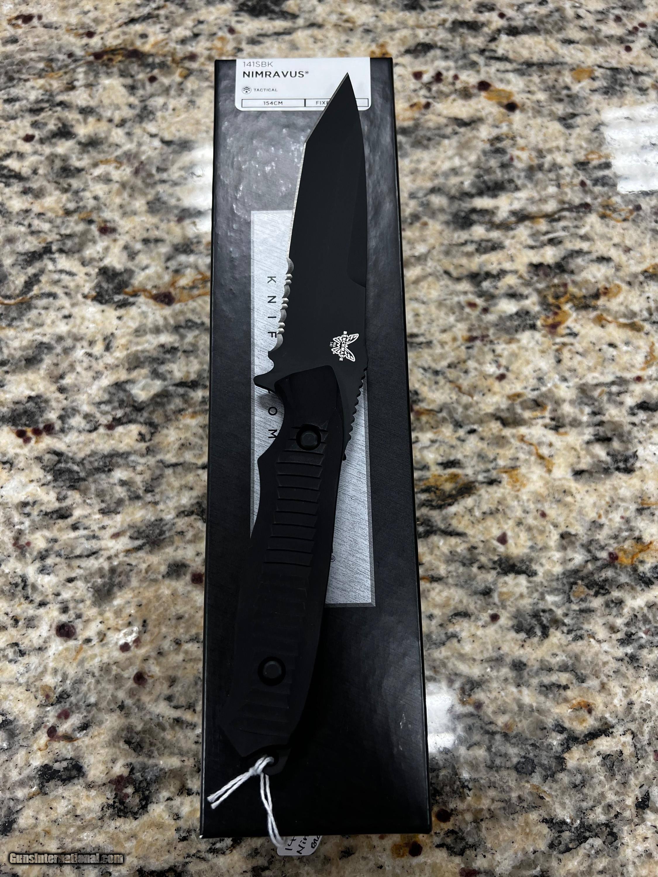 Description: New Benchmade 141SBK Nimravus Black Class, Fixed Blade, 154CM, With Soft Sheath, With Box, WE DO NOT SHIP INTERNATIONALLY $8 Shipping. Pictures are of the item listed. The item is on display at our shop but will be taken off the shelf once purchased. Please feel free to contact us directly. Payment may be personal or cashiers check, money order or credit card "3% surcharge for credit card". QUESTIONS? CALL/TEXT STEVE AT 580.327.7372 SOLD |
