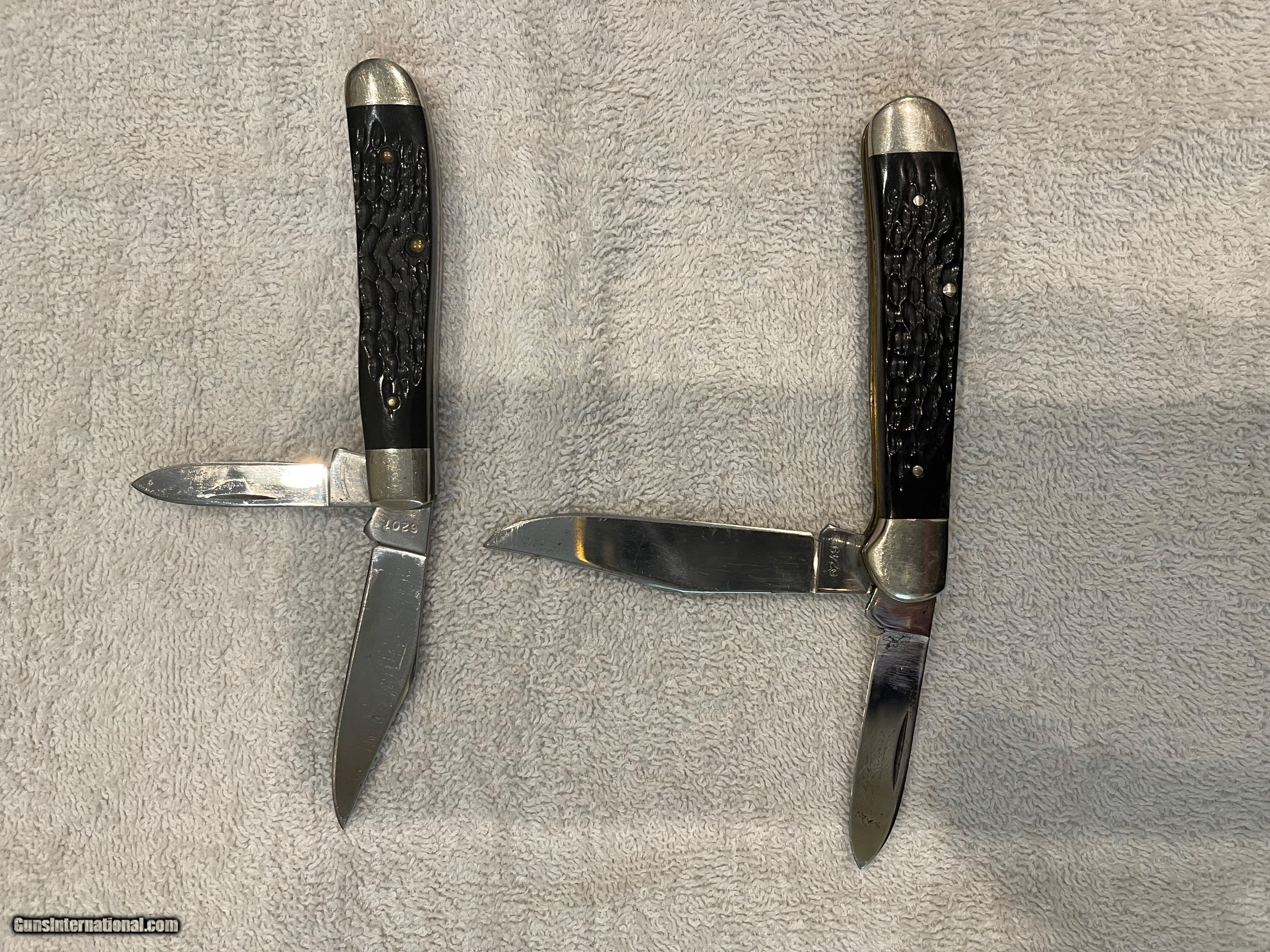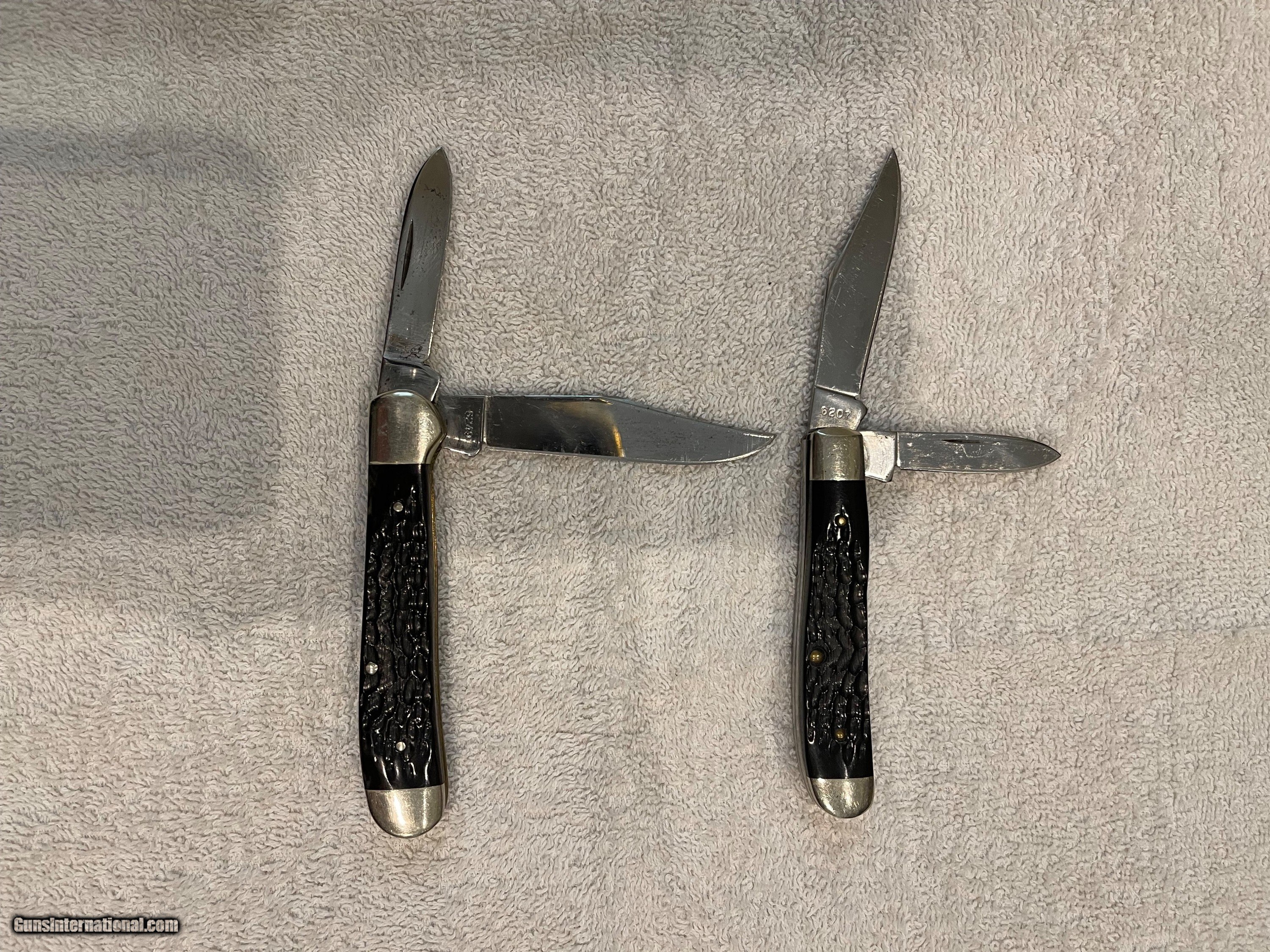 Description: Pair of older jigged Bone case pocket knives in like new condition. Never used or sharpened. SOLD |