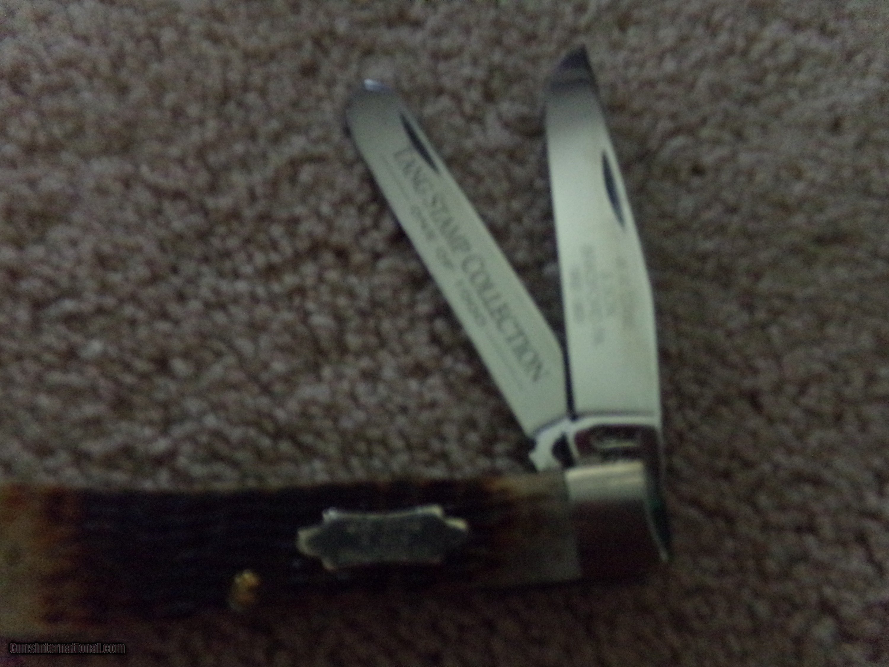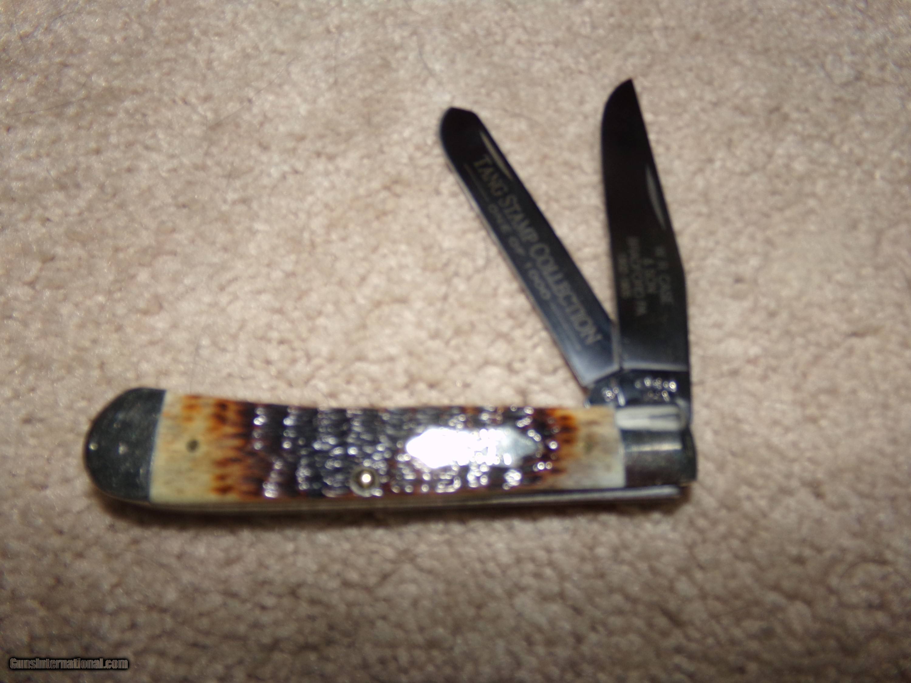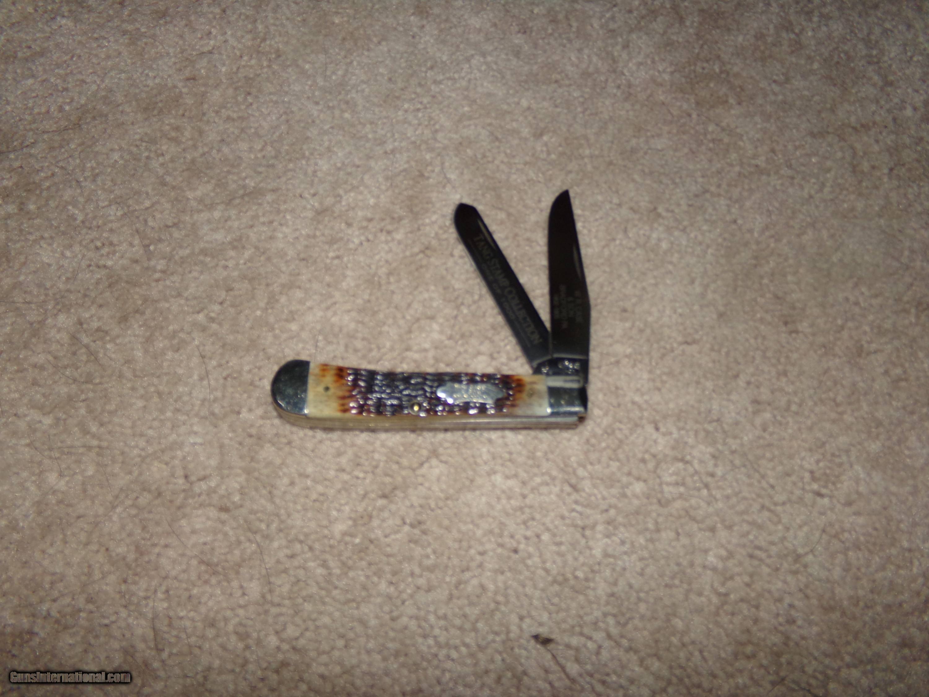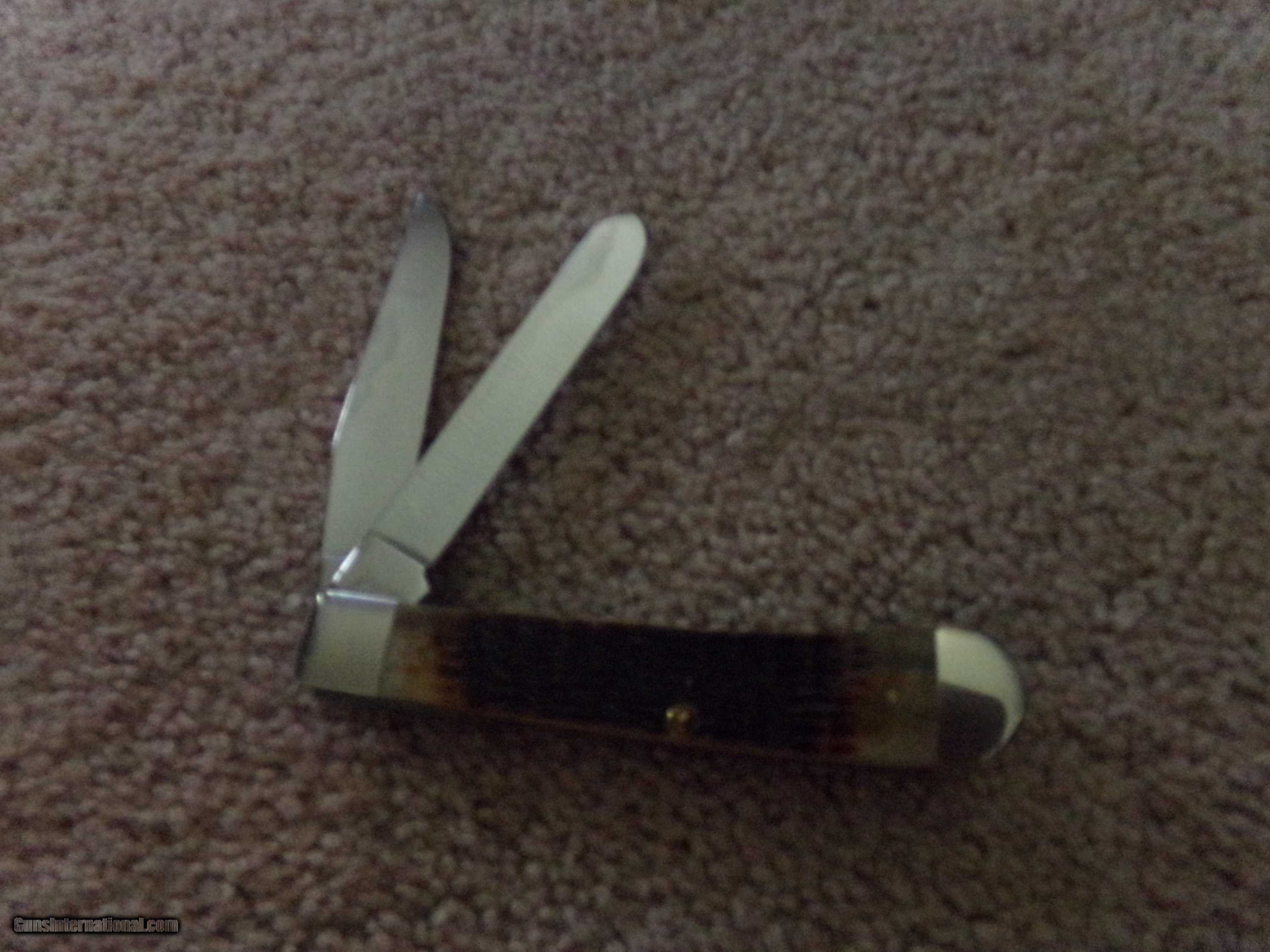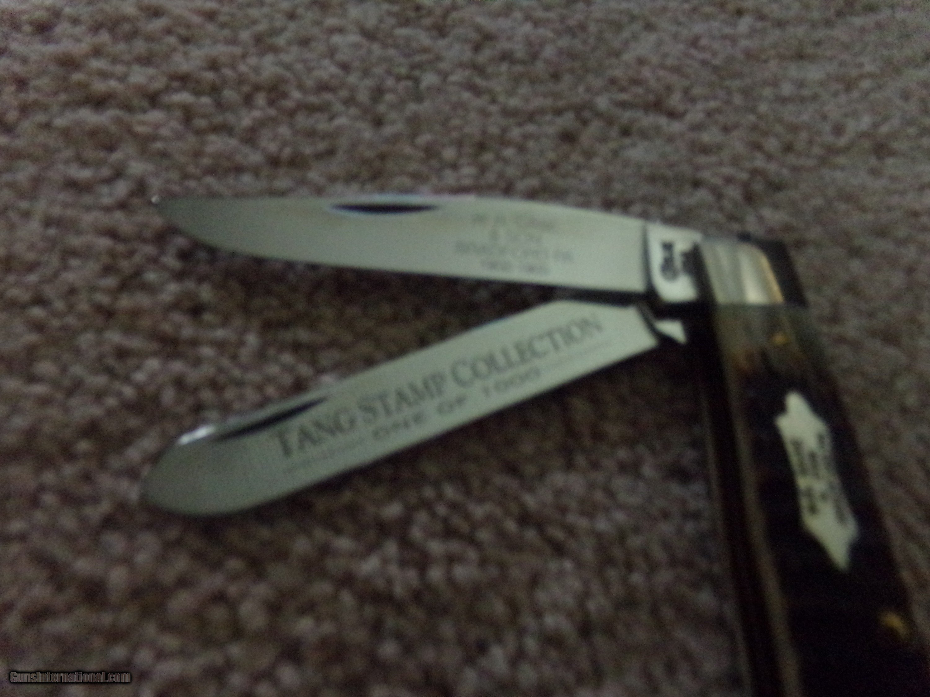 Description: Pretty rare W.R . Case and sons marked.7 1/2 open,4 in closed bone stag. NOS. $275. delivered. SOLD |