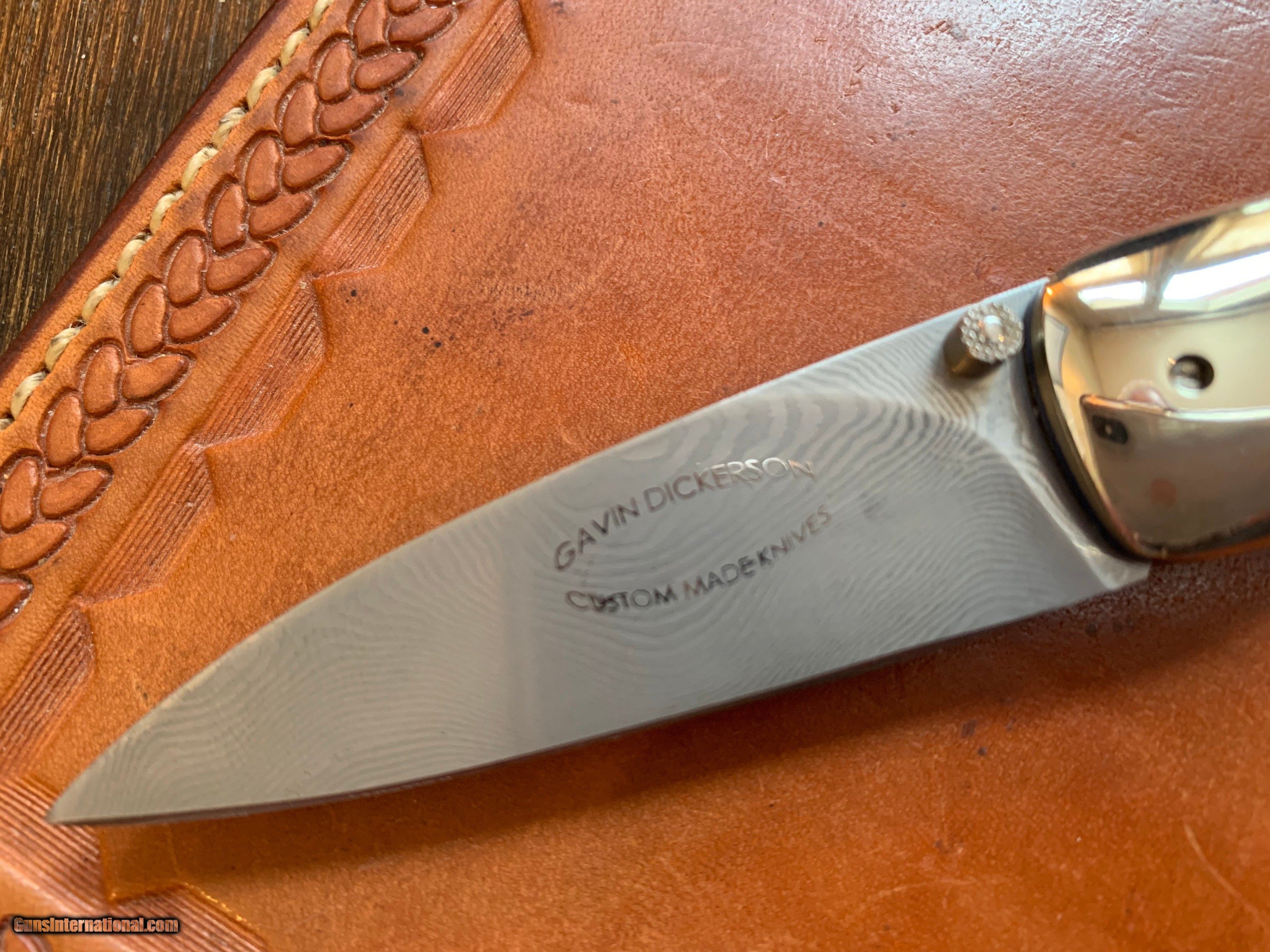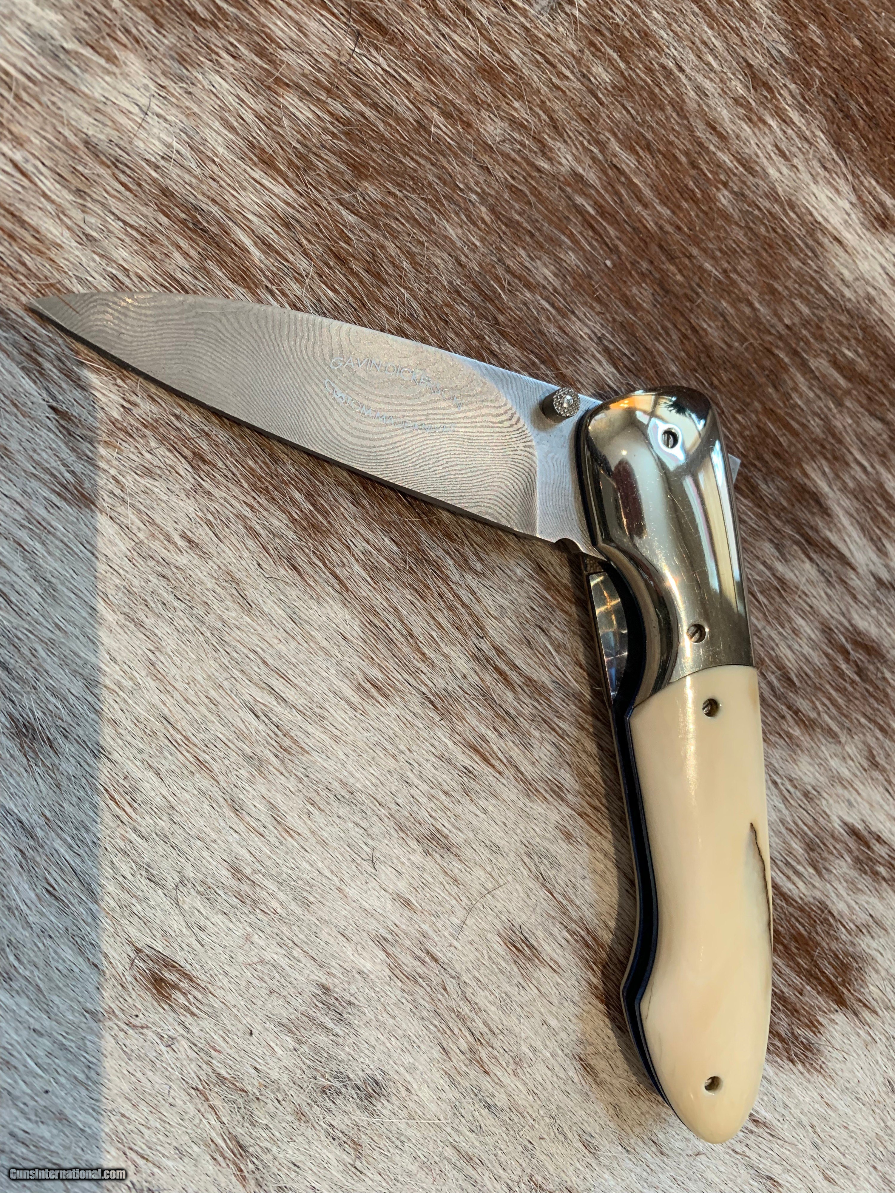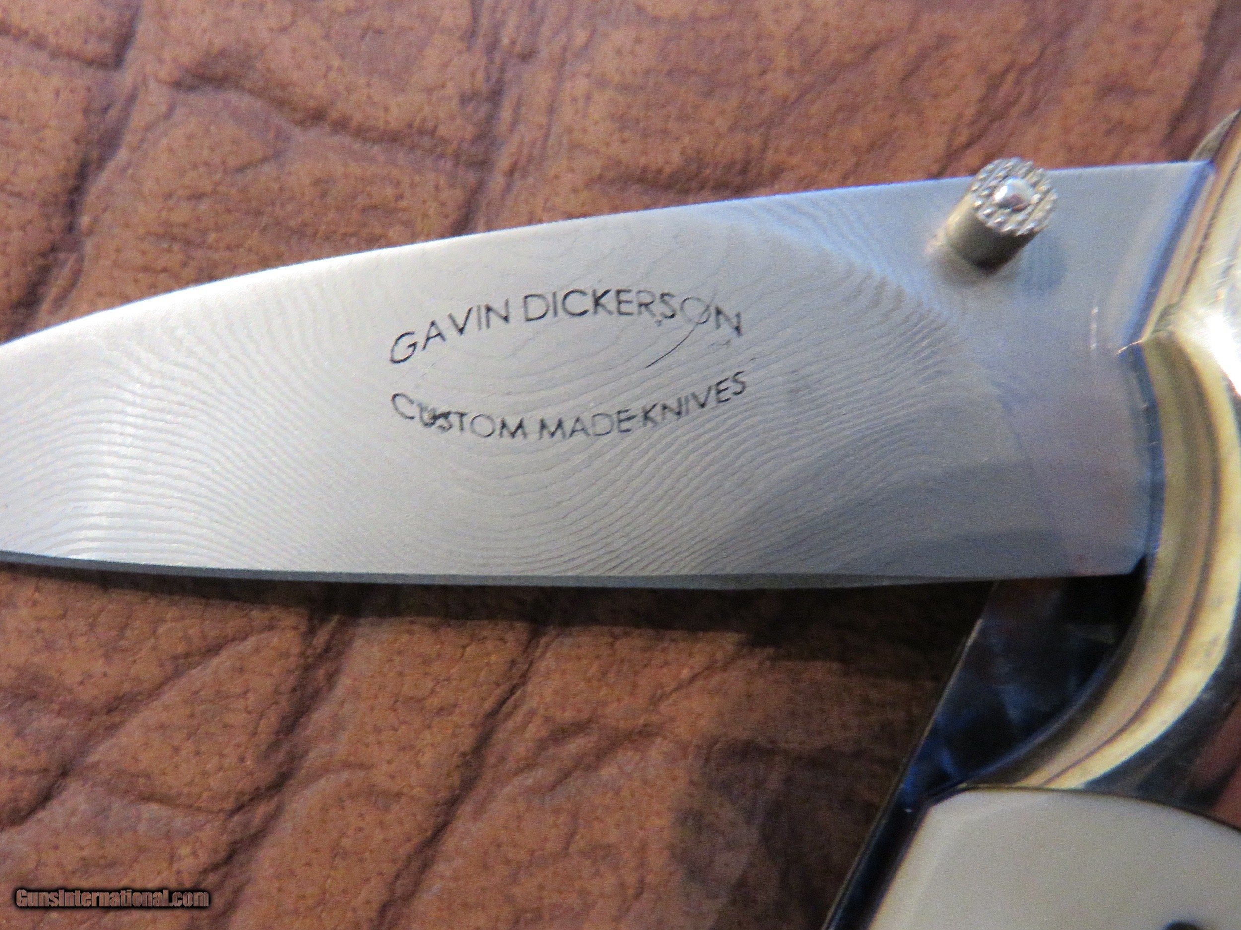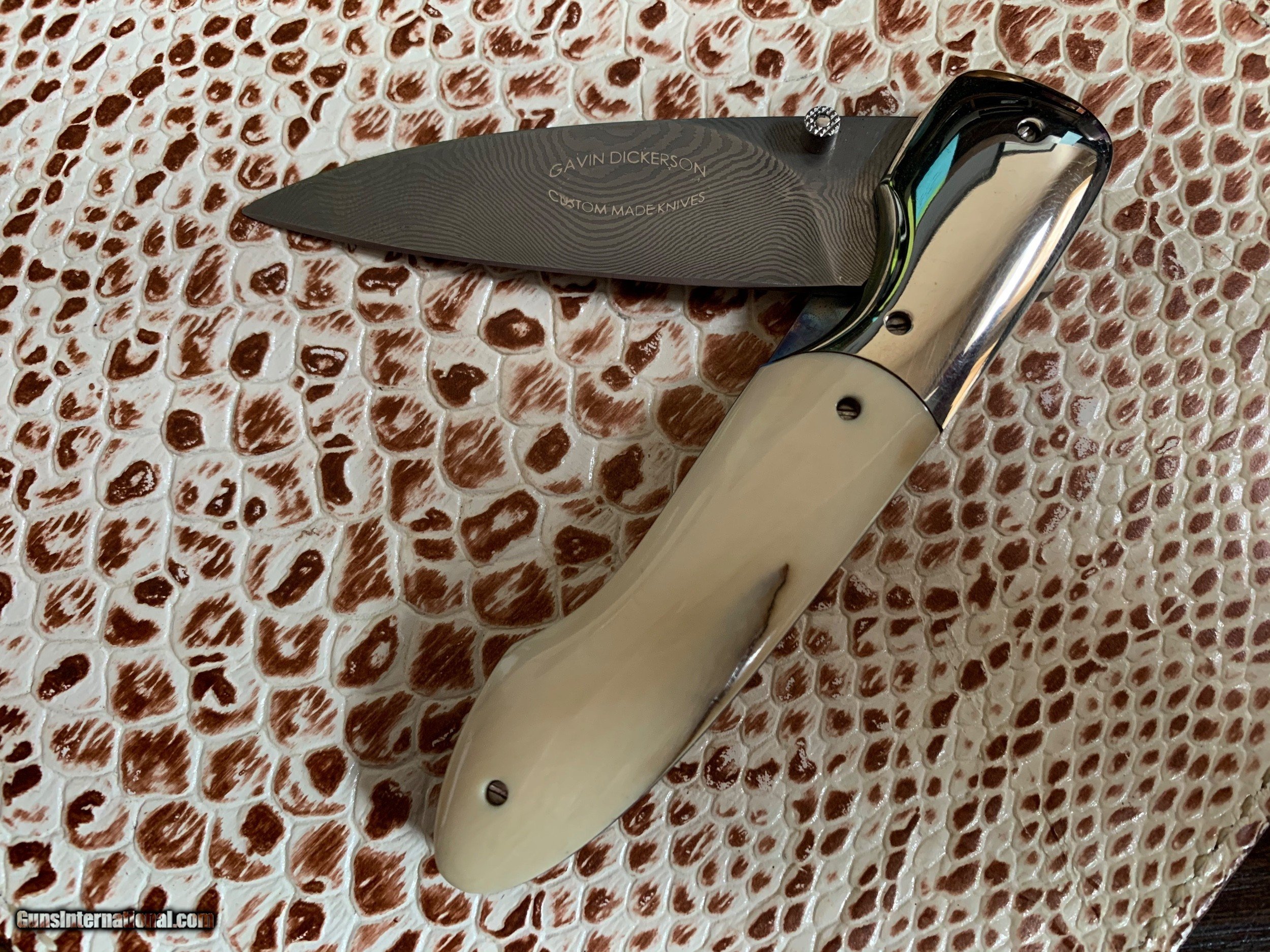 "Gavin Dickerson" of S. Africa Custom "Damascus" Lockback Folder with Mastodon Ivory Scales!