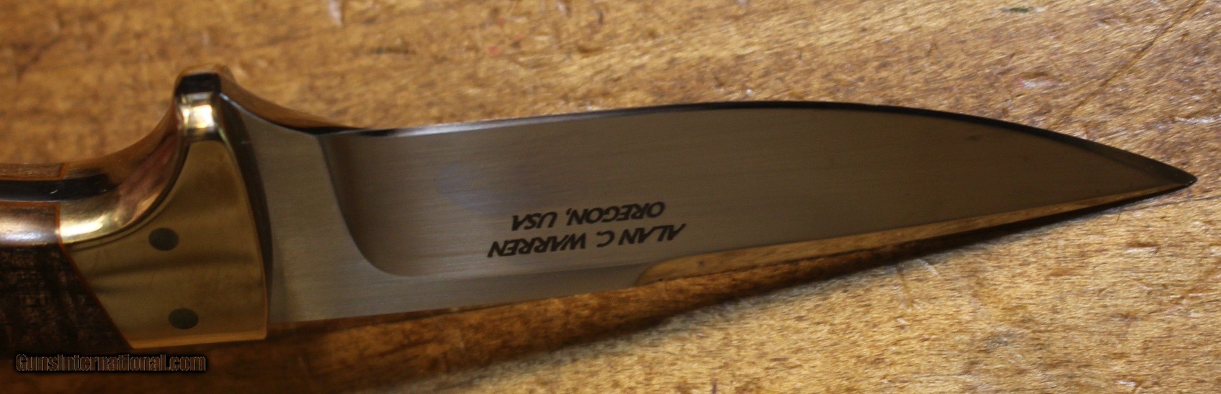 Description: Alan Warren EDC Fixed Blade Knife w Custom Sheath There is only the knife and the sheath you see in the pictures Copied the below from an ad by Alan Warren describing the knife........................ Hello to All, Just finished this cool little cutter. Sometimes i get my best work done when the girls are sleeping. Blade is CPM 154 .105 thick, 3.07 tip to bolsters. 7.25 O/A. Heat treated with cryo quench and double tempered. Tang is tapered with hollow ground center. I polished the blade and finish with 2000 grit. Bolsters are aluminum Bronze held tight with silicon bronze pins. There is a slight difference in color. Aluminum bronze resists tarnishing. Handle is very nice curly koa that has been stabilized by K and G. Mosaic pins, and .014 orange G10 liners. Photos do not do the wood any justice. Sheath is hand tooled and hand stitched 8-9 ounce leather. I used the Loveless cam idea so the knife fits very nice with that click at the end when the knife is pushed into place yet is easy to withdraw. End of copy from the ad describing the knife NOTE: Look close at the pictures as the item you see is the one you get. As is means AS IS so There is NO, Refund. This came from the estate of an FFL/SOT Gun Smith, Gun Store that is out of business. The estate was an avid collector. This is from the collection or was inventory of 100 plus straight and folders. There will be countless other listings from this inventory and other inventories. We are selling for the estate/store. This is NOT a liquidation. There are no lists and will be no lists. Please check our other listings for more items Please also check our Webpage and or Facebook page at P&T Partners Shipping is included. Shipping is NOT FREE. Just included for Priority Mail, Full Insurance and a Signature at the receiving end because of the amount. If you do NOT want a signature, please advise. You can let me know if NO signature due to your work schedule. Credit in any form, shape or manner add 3.5% and credit by PHONE only. Personal checks accepted, we do not hold until clear. Postal Money orders also accepted. If you are in Texas and purchasing from Texas you are subject to Texas State Sales Tax For those that are local, there is no Face To Face. On Line means On Line. Again if you are Local there is NO local pick up. We ship only SOLD |
