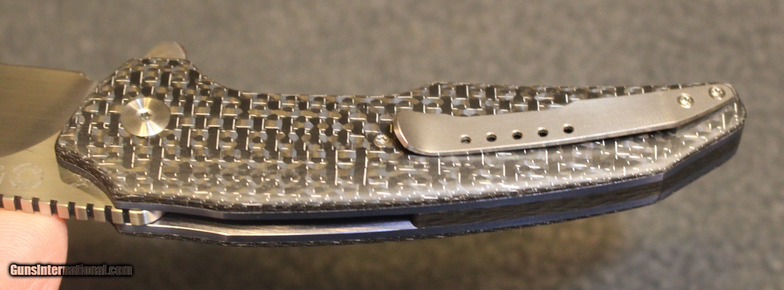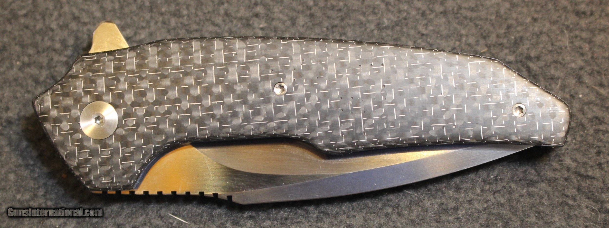 Description: Andre van Heerden/Andre Thorburn Custom A6 Middie Flipper Knife 3" M390 Hand Rubbed Satin Blade, Silver Lightning Strike Carbon Fiber Handles, Zirconium Pivots and Collars, Tashi Bharucha Design There is everything you see in the pictures which include the certificate, and pouch. Copied from the original listing describing the knife ............................... Description Custom A6 Middie Folding Knife, Silver Lightning Strike Carbon Fiber Andre van Heerden Custom Knives The A6 is the most recent top-notch flipper design from Tashi Bharucha, produced by the South African team of Andre Thorburn and Andre van Heerden. This tactical folder is marked A² on the blade and is both extremely ergonomic and utilitarian. The large finger groove and precisely jimped thumb ramp lock this design into your hand and it's comfortable for extended, hard use. The 3" drop point blade is made from Bohler M390 stainless steel with a classy hand rubbed satin finish. The handle is made from gorgeous smooth silver lightning strike carbon fiber over blue anodized titanium liners. The liner lock is very easy to disengage and you will find yourself flipping this knife open over and over again. It's one of the best flippers on the market utilizing a single row ceramic IKBS pivot bearing system and the build quality is simply superb. Andre and Andre have another winner with this A6 design and it was handmade in South Africa. Specifications