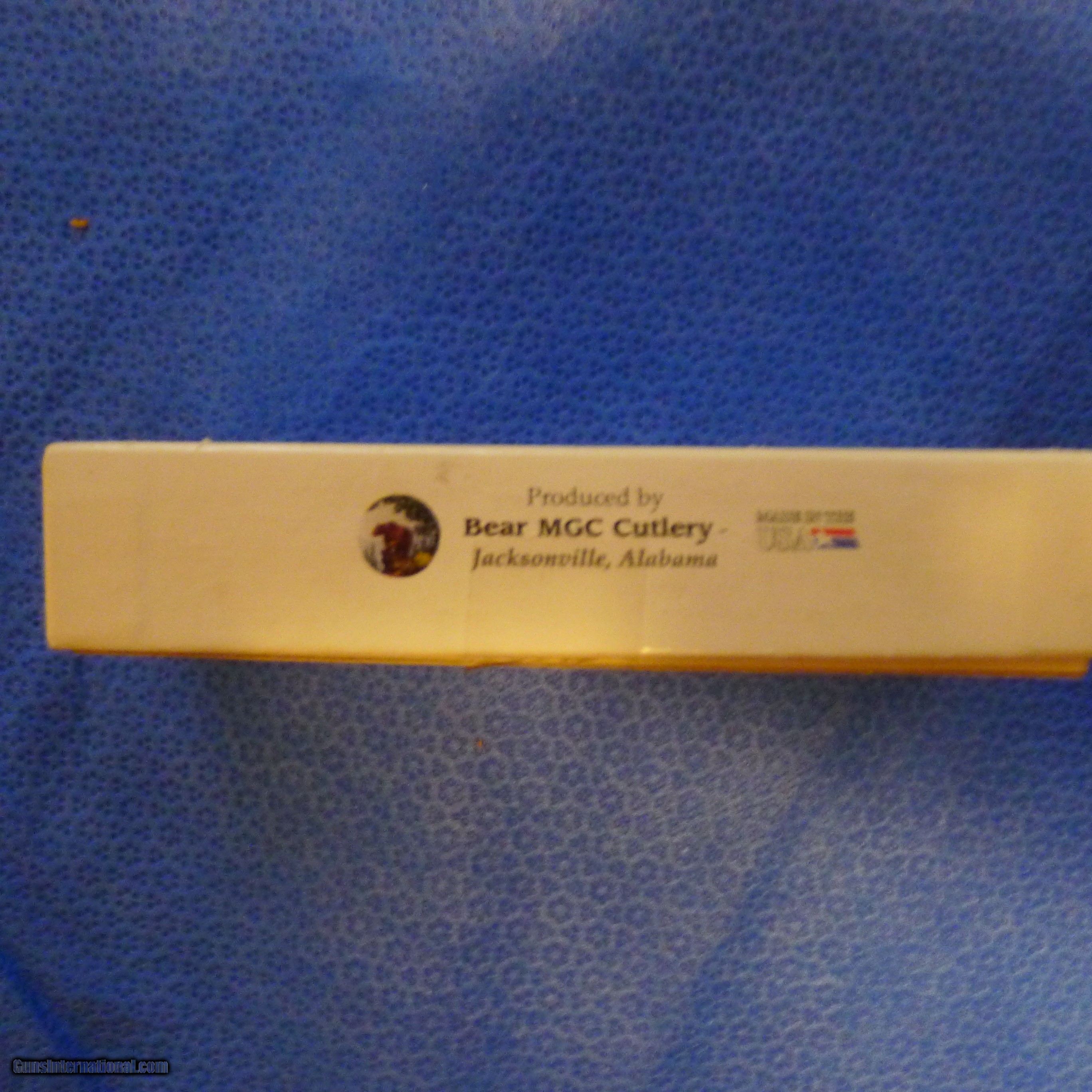 Description: This is a new in the box commemorative knife manufactured by BEAR MGC CUTLERY of Jacksonville , Alabama, for CIVILIAN MARKSMANSHIP PROGRAM. This knife was made from broken unusable M-1 Garand rifle stocks. See all photos. the serial # is 195 printed on the silver colored bolster. The proceeds of the sale of these knives went directly to fund the Civilian marksmanship programs through the National Rifle Association. Buyer pays shipping USPS $10.00 including insurance. SOLD |