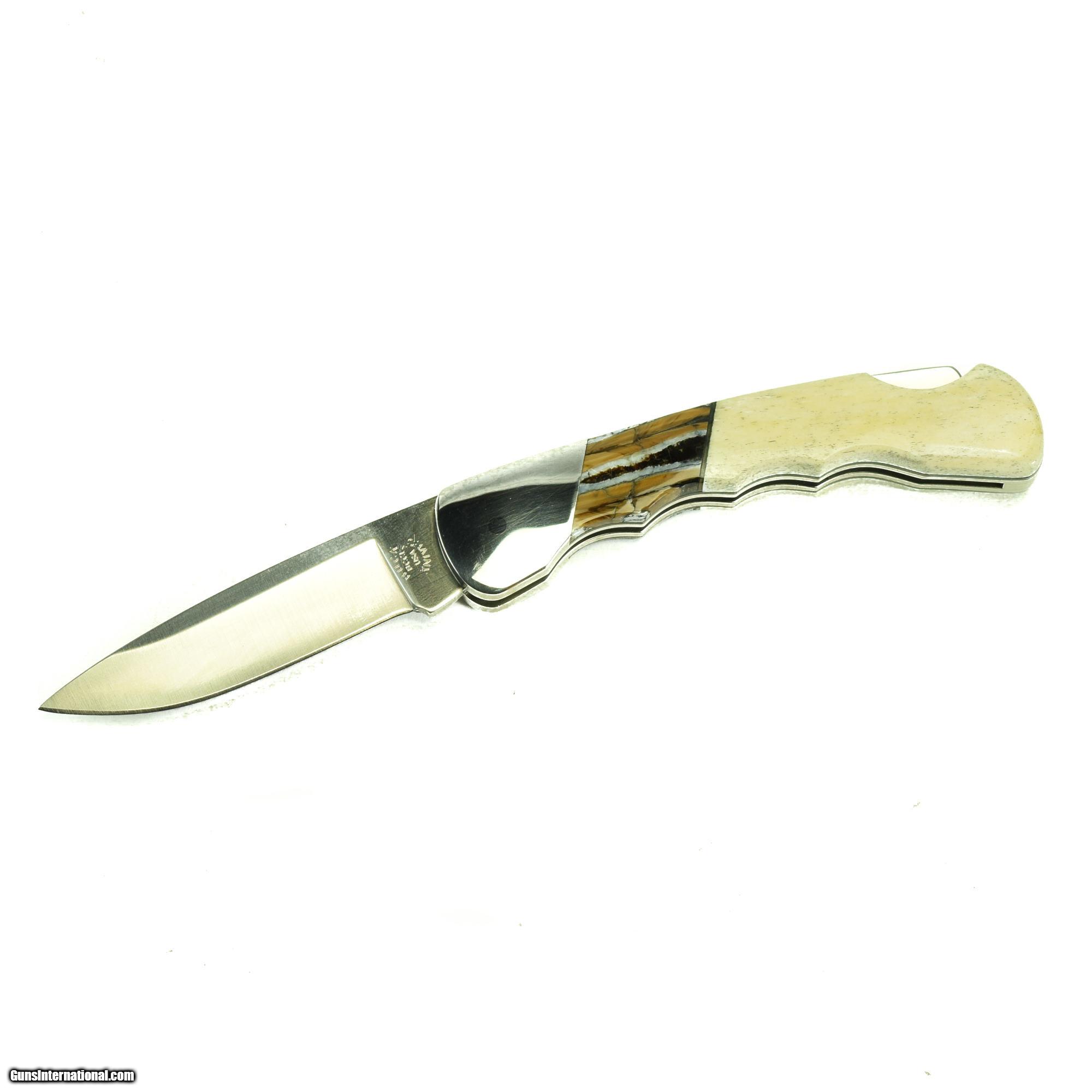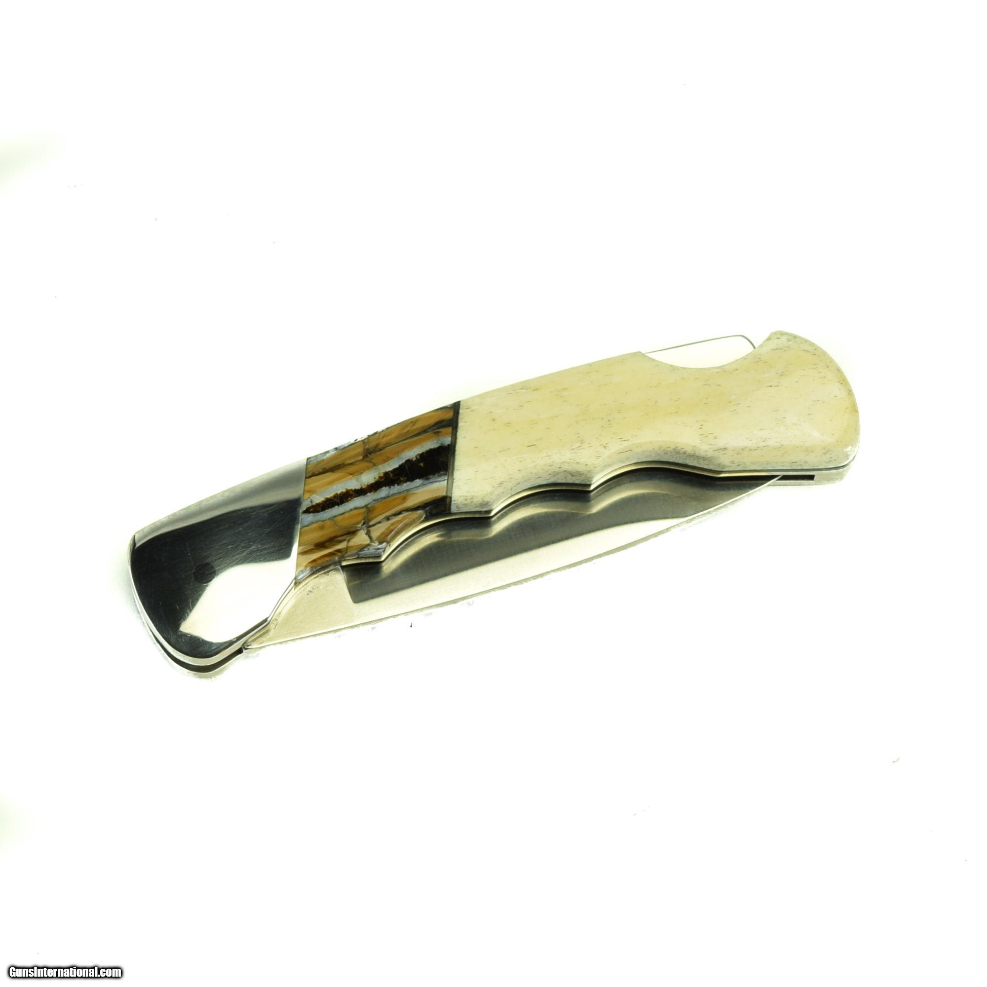 Description: Mammoth tooth and camel bone handle. Limited edition of 200. PERIOD: Contemporary ORIGIN: Buck Knives, Idaho SIZE: 4 1/4" closed, 7 1/4" open SOLD |