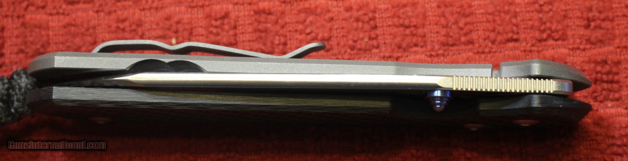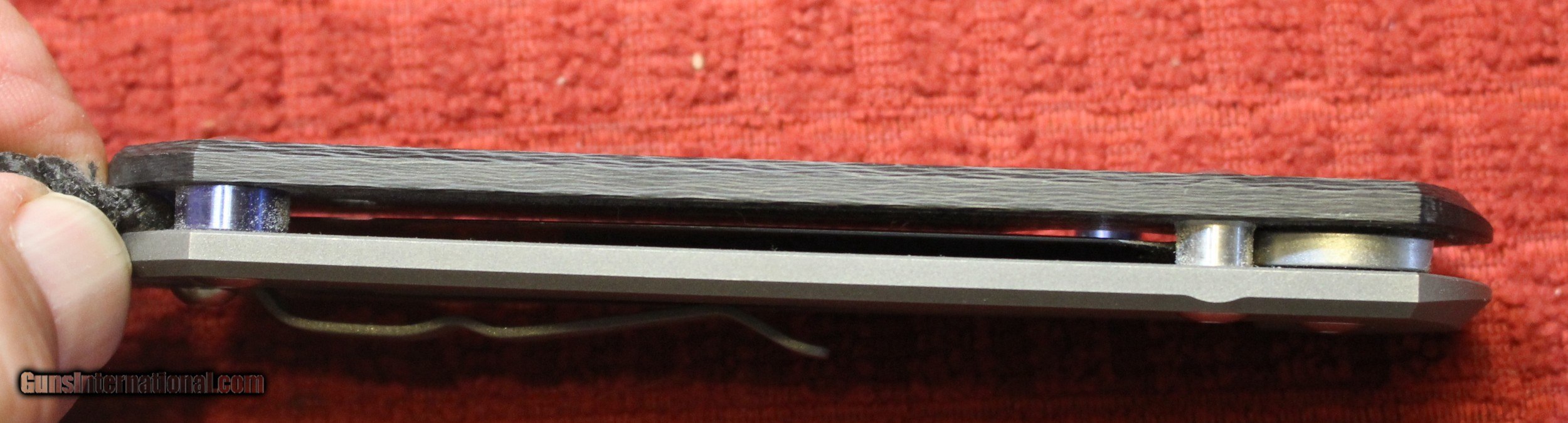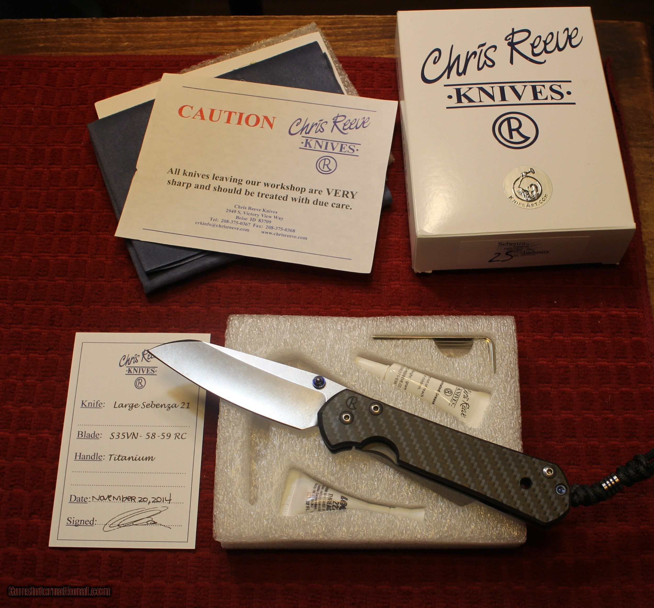 Description: Got a Chris Reeve Large Carbon Fiber Sebenza Insingo is a Sebenza 21 Custom Folding Knife There is the box and all you see with it in the pictures. NOTE: Look close at the pictures as the item you see is the one you get. As is means AS IS so There is NO, Refund. This is from the orignal ad selling this particular knife.................... The Chris Reeve Large Carbon Fiber Sebenza Insingo is a Sebenza 21 with a side of black weave carbon fiber handle on the front - with a full integral lock titanium on the locking side. The insingo blade geometry provides incredible cutting power and utility. The carbon fiber reduces the weight significantly, without compromising on the strength. The Carbon Fiber Sebenza is bank vault solid. This is a knife that really needs to be held to be appreciated. It is lighter in the hand - yet the carbon fiber is incredibly rigid and true. Chris Reeve Knives fully machines and laps the lightly textured carbon fiber scales to make sure the tolerances are up to their high standards. Braided black cord lanyard has a Chris Reeve titanium bead with blue anodizing that matches the thumb stud and spacer pin. Feel the difference in quality of a Chris Reeves knife. Chris Reeve knives are made with precision and pride in Boise, Idaho U.S.A. Maker: Chris Reeve Knives Blade Length: 3.625" Overall Length: 8.335" Blade Thickness: .125" Blade Material: Stainless S35VN Steel - Fine Stonewash Finish - 59-60 HRC Blade Design: Rodney Connelley & Chris Reeve (Blade concept and draft drawings by Rodney Connelley, final design and technical modifications by Chris Reeve.) Handle: Blasted 6A14V Titanium (Lock Side) - Textured Carbon Fiber (Front Side) Weight: 3.7 oz End of copy of ad............................ This came from the estate of an FFL/SOT Gun Smith, Gun Store that is out of business. The estate was an avid collector. This is from the collection or was inventory of 100 plus straight and folders. There will be countless other listings from this inventory and other inventories. We are selling for the estate/store. This is NOT a liquidation. There are no lists and will be no lists. Please check our other listings for more items Please also check our Webpage and or Facebook page at P&T Partners Shipping is included. Shipping is NOT FREE. Just included for Priority Mail and a signature at the receiving end. Credit in any form, shape or manner add 3.5% and credit by PHONE only. Personal checks accepted, we do not hold until clear for parts. Postal Money orders also accepted. If you are in Texas and purchasing from Texas you are subject to Texas State Sales Tax For those that are local, there is no Face To Face. On Line means On Line. Again if you are Local there is NO local pick up. We ship only SOLD |