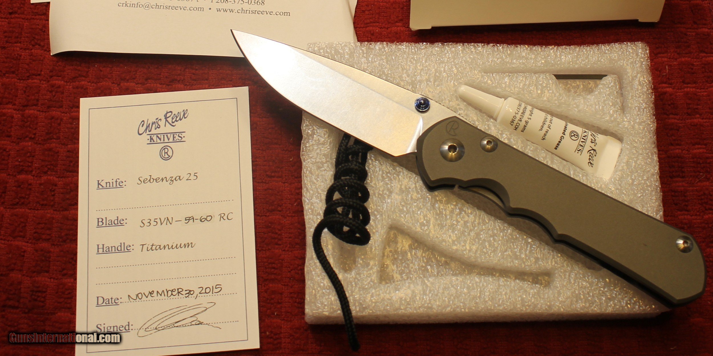 Description: Got a Chris Reeve Sebenza 25 Frame Lock (3.625" Stonewash) Custom Folding Knife There is the box and all you see with it in the pictures. NOTE: Look close at the pictures as the item you see is the one you get. As is means AS IS so There is NO, Refund. This is from anad selling this particular knife.................... SPECIFICATIONS