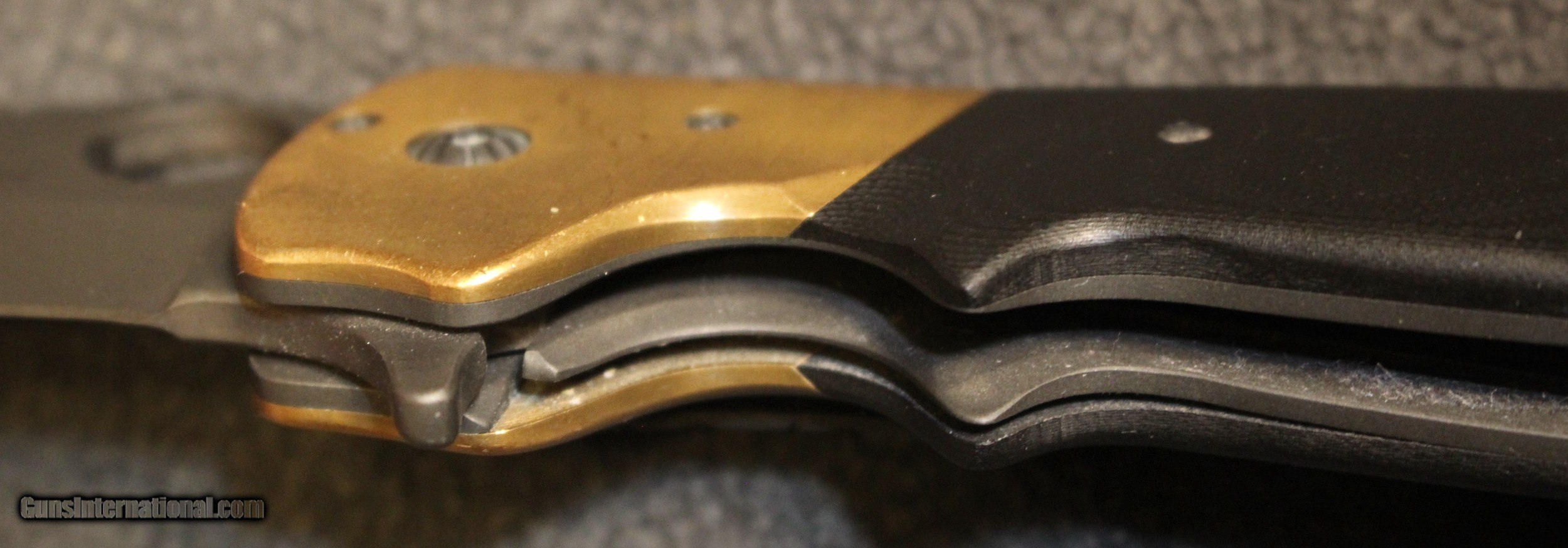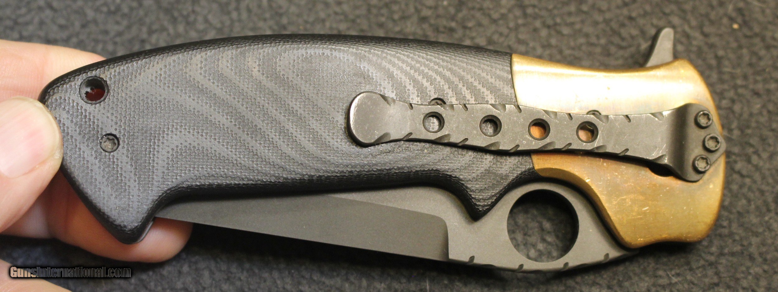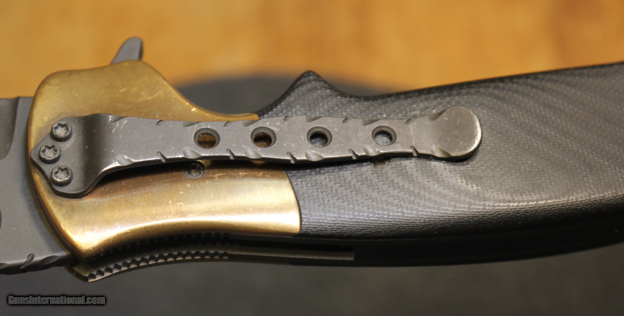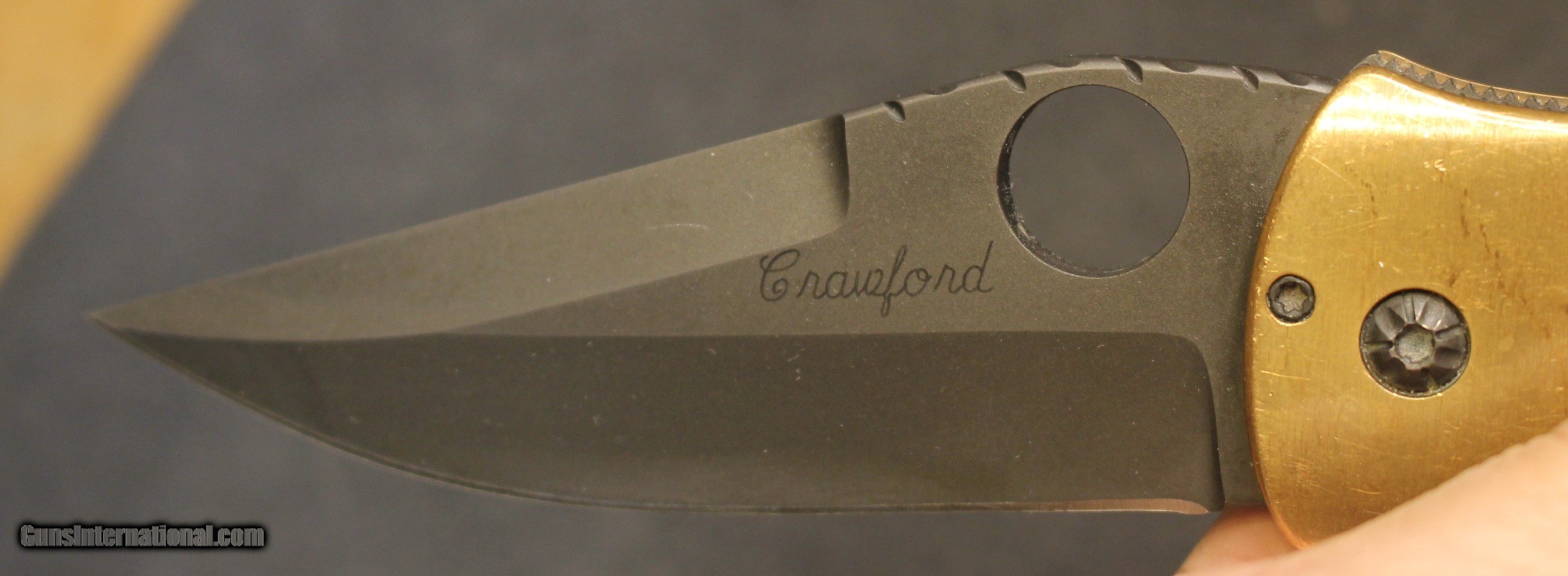 Description: Custom Crawford Copperhead Kasper Flipper Knife Copper/G-10 (3.875" Black) The knife has clearly been used and carried. There is plenty of "pocket fuzz" visible as well and handling marks on the copper bolster and some shine on the pocket clip. Blade is sharp and clean. Has it cut through "red woods" in the jungle of the amazon, heck no. I am certain it has cut its fair share of boxes and tape on boxes but that is about all. There is only the knife, nothing else Copied from an ad on the Blade HQ listing describing the knife ............................... The Crawford Copperhead Kasper Flipper is hand-made and of the highest quality. This Kasper is a large knife with titanium liners, black G-10 scales and copper bolsters. The blade is made from premium stainless steel with a black finish, filework on the spine, and opens by flipper or thumb hole. Comes fitted with a black finished titanium pocket clip with decorative filework. The Crawford Kasper folding knife feels great in hand and performs flawlessly. SPECIFICATIONS