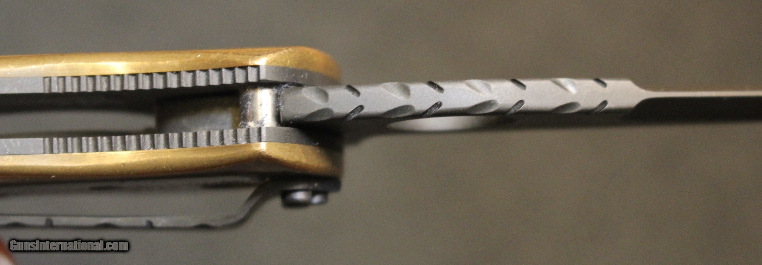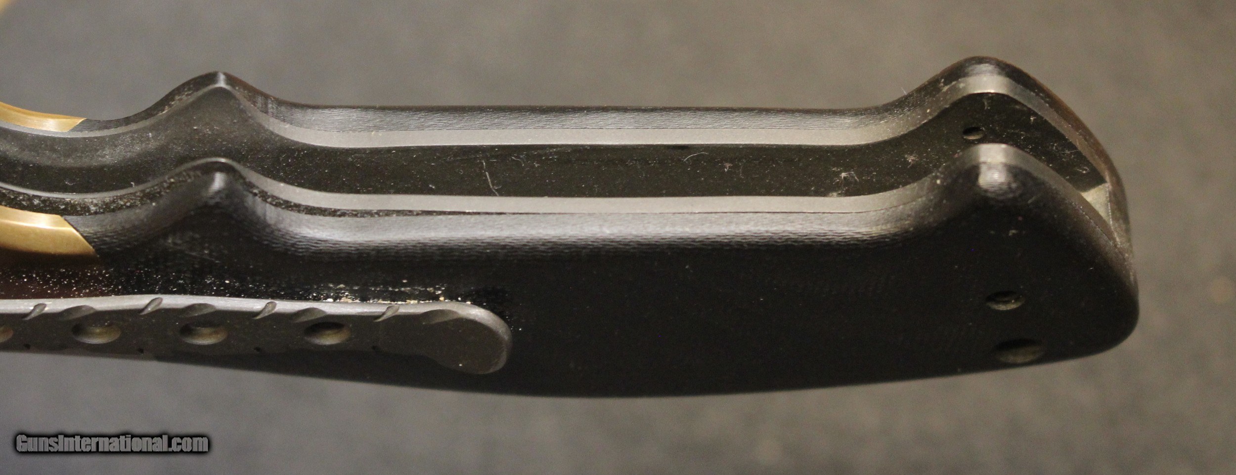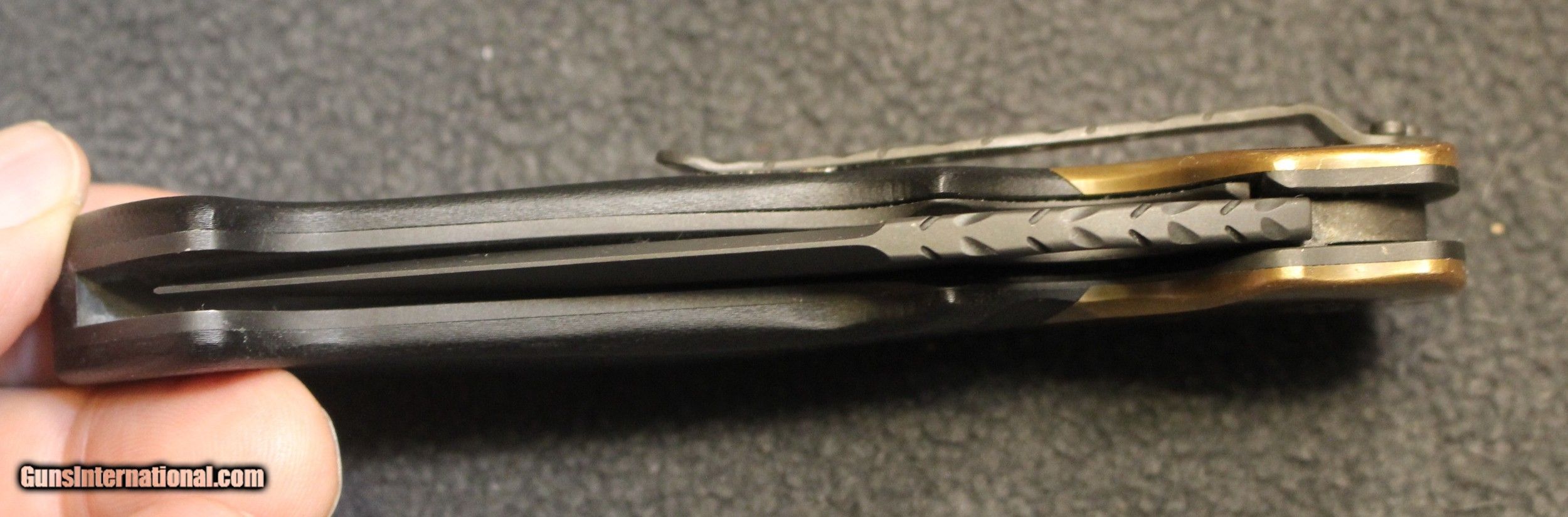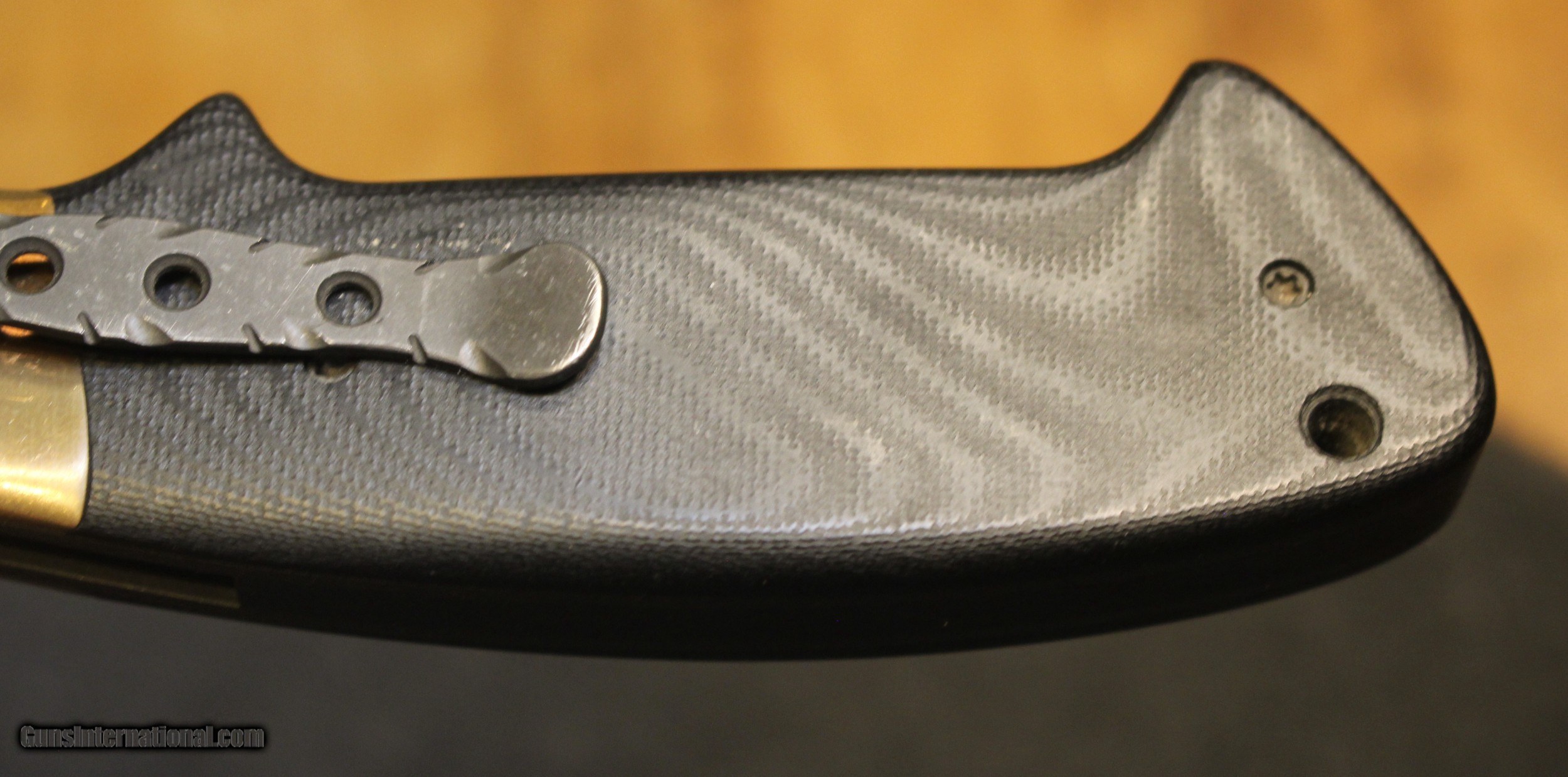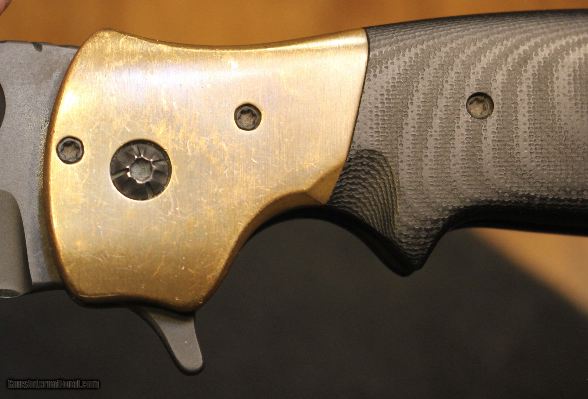 Description: Custom Crawford Copperhead Kasper Flipper Knife Copper/G-10 (3.875" Black) The knife has clearly been used and carried. There is plenty of "pocket fuzz" visible as well and handling marks on the copper bolster and some shine on the pocket clip. Blade is sharp and clean. Has it cut through "red woods" in the jungle of the amazon, heck no. I am certain it has cut its fair share of boxes and tape on boxes but that is about all. There is only the knife, nothing else Copied from an ad on the Blade HQ listing describing the knife ............................... The Crawford Copperhead Kasper Flipper is hand-made and of the highest quality. This Kasper is a large knife with titanium liners, black G-10 scales and copper bolsters. The blade is made from premium stainless steel with a black finish, filework on the spine, and opens by flipper or thumb hole. Comes fitted with a black finished titanium pocket clip with decorative filework. The Crawford Kasper folding knife feels great in hand and performs flawlessly. SPECIFICATIONS