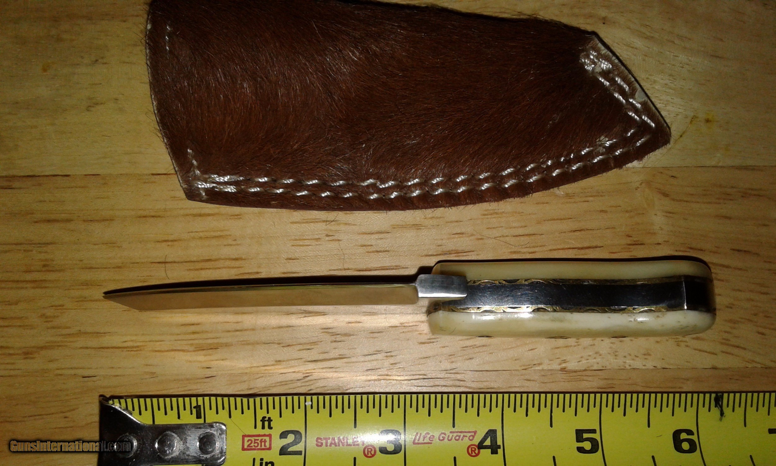 Description: Custom knife, bone handle. File work done on it. Custom sheath. "Includes shipping. Will provide tracking #". Domestic only. Thanks.(Sold). SOLD |