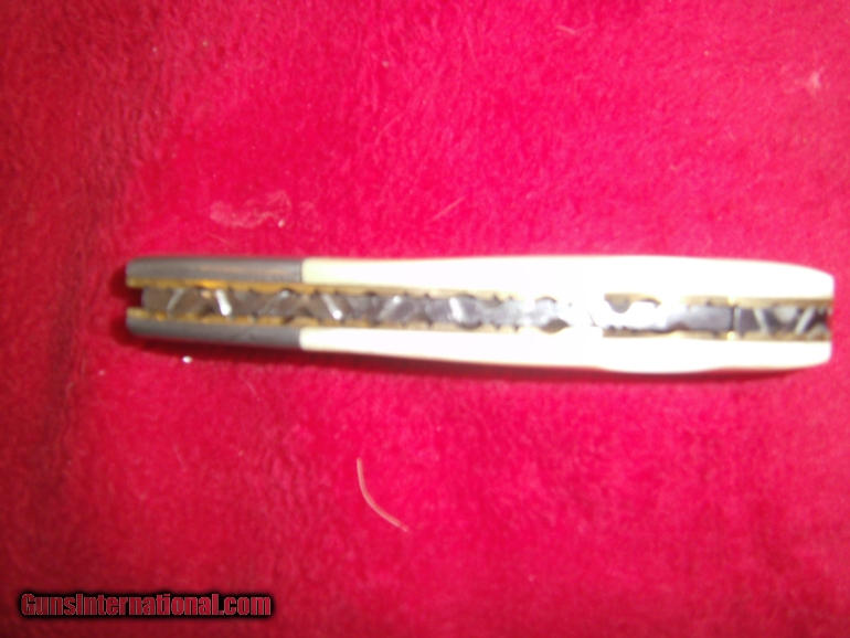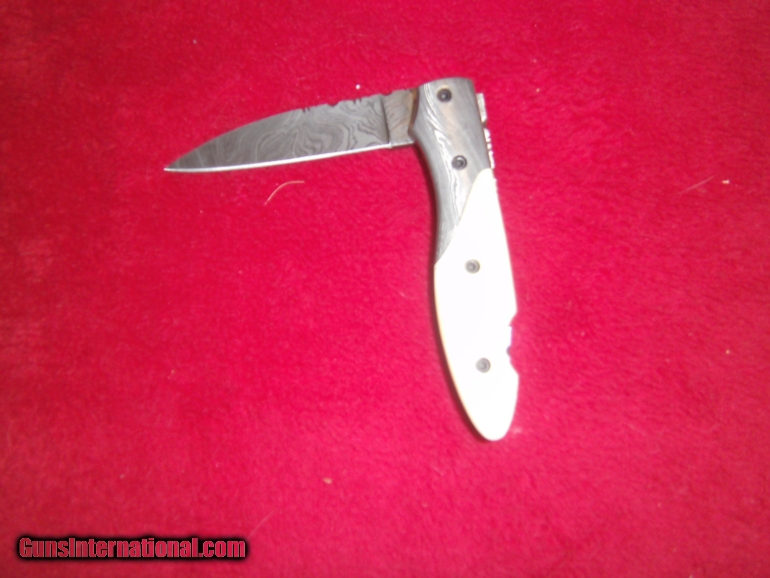 Description: SOLD PENDING FUNDS -------- I'm Handmade custom folder - damacus blade & bolsters - Garraff leg bone handles - 3 9/16 in blade - 4 1/2 in closed - 8 in. overall. beautiful knife - $145.00 shipped SOLD |