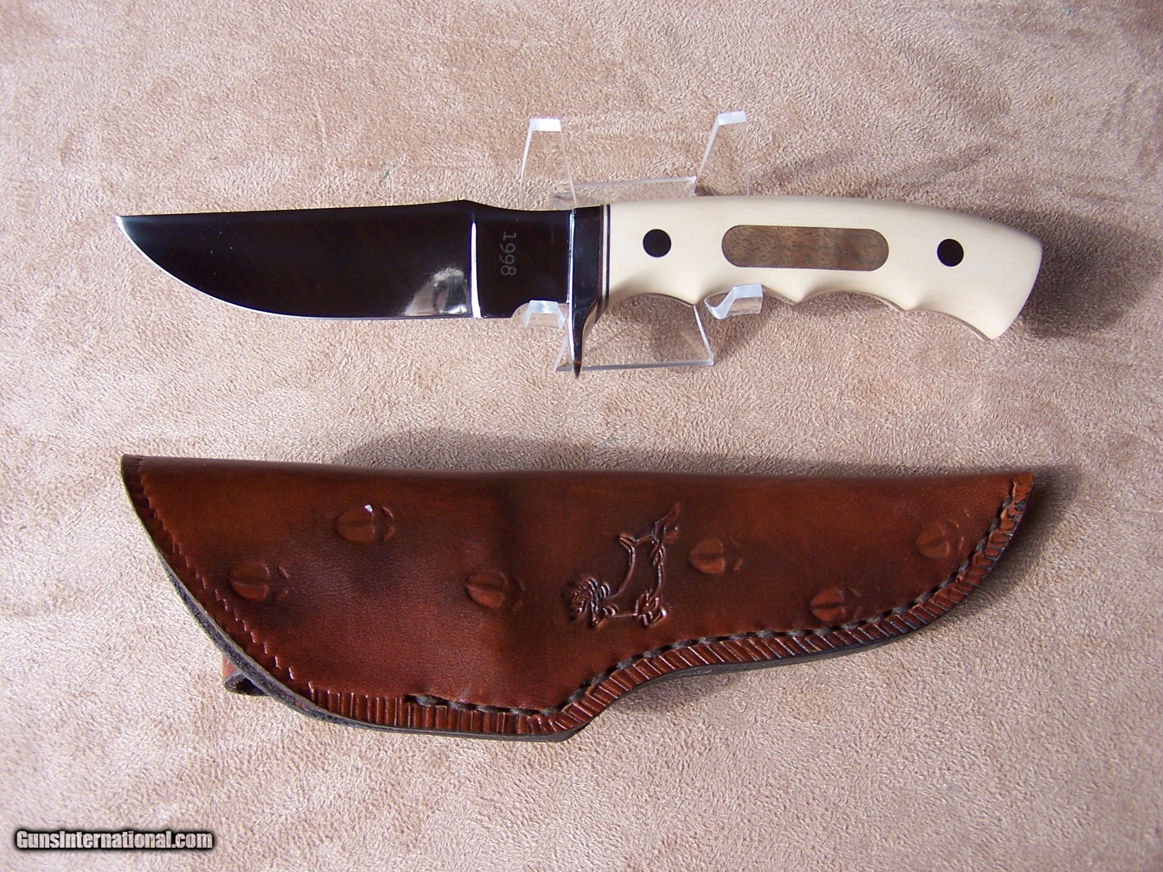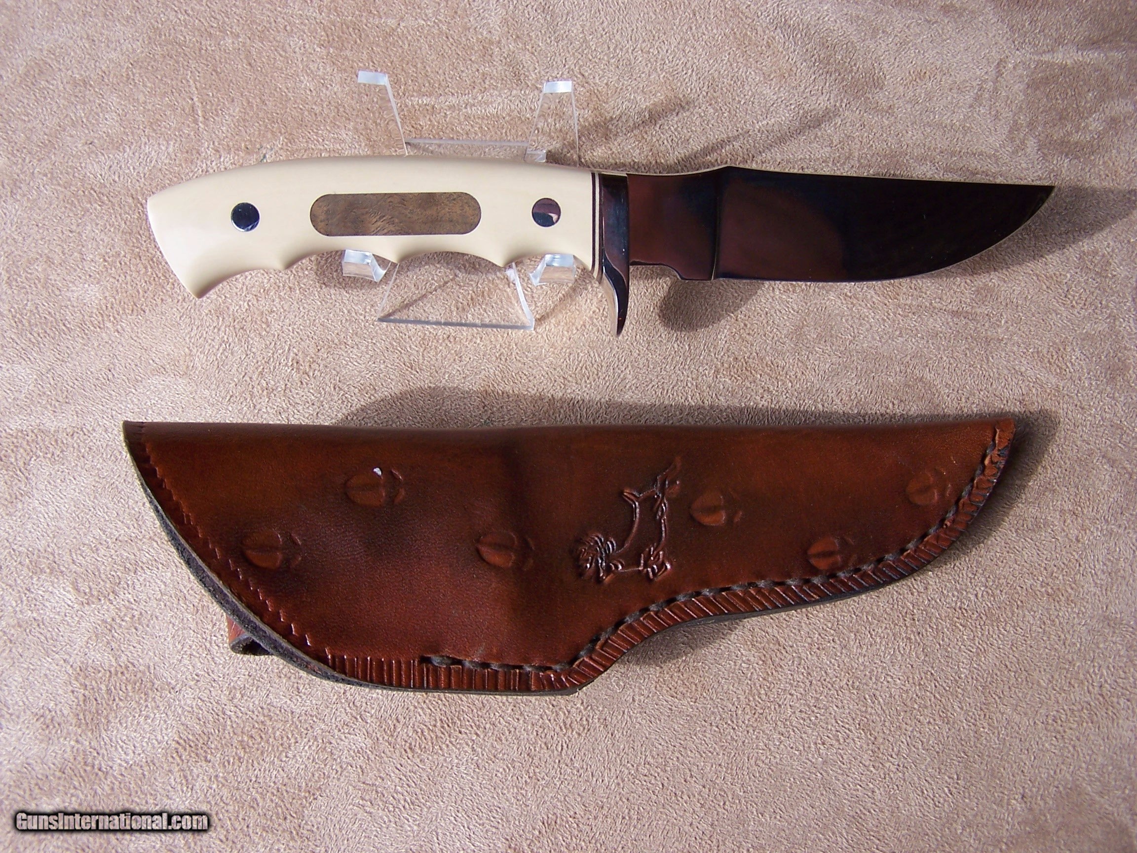 Description: Offered is a new and unused custom handmade hunting knife by Dankert of Chesaning, Michigan. It measures 8 1/2" long with a 4" blade. The handle is made of Micarta with a walnut wood inlay. Included is the custom handmade sheath. Price: $160.00 Shipped. Sold Pending Funds SOLD |