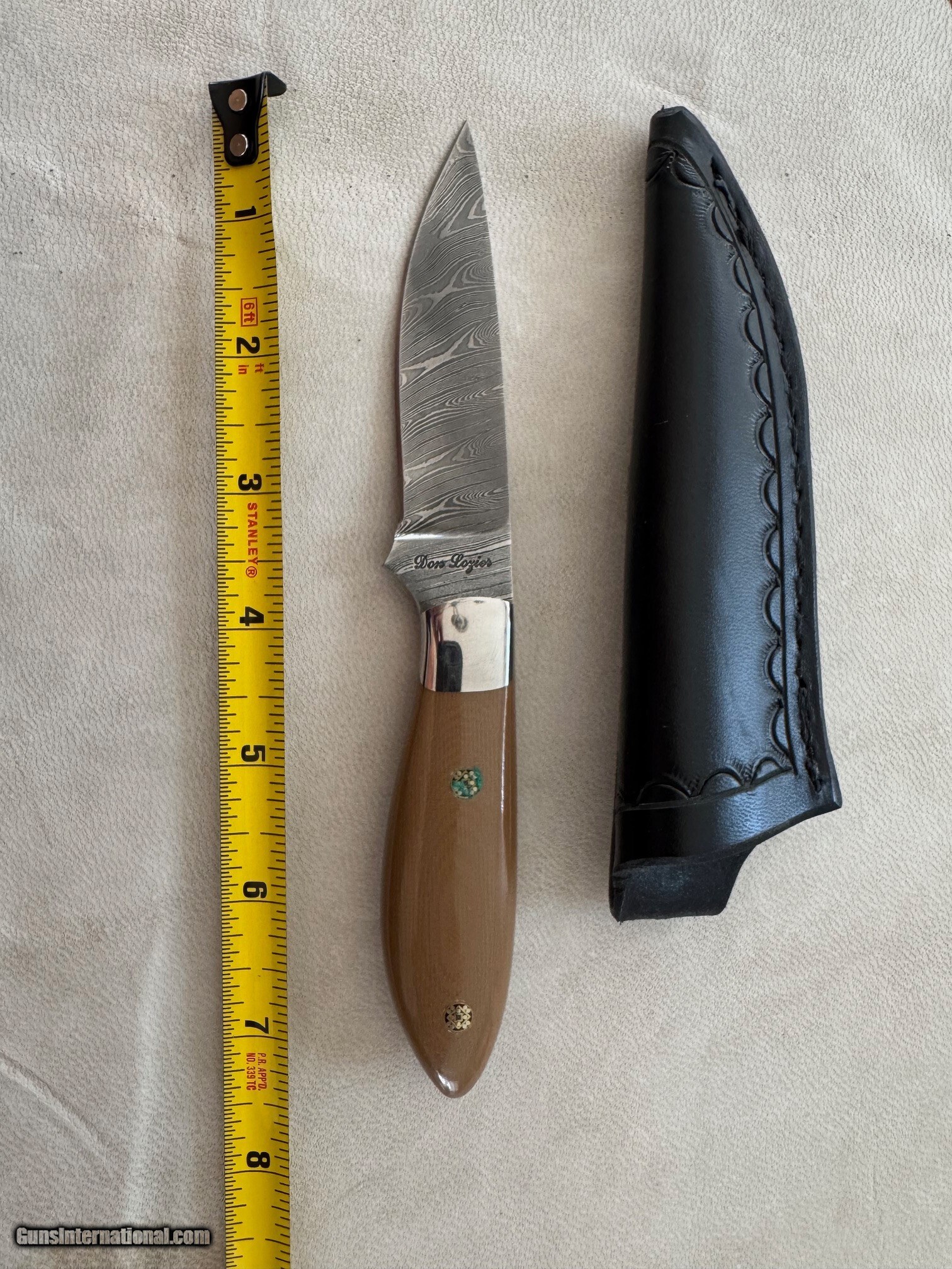 Description: DON LOZIER CUSTOM HAND MADE HUNTING KNIFE, MICARTA, DAMASCUS BLADE WITH SHEATH Price: $395.00 Contact Seller |