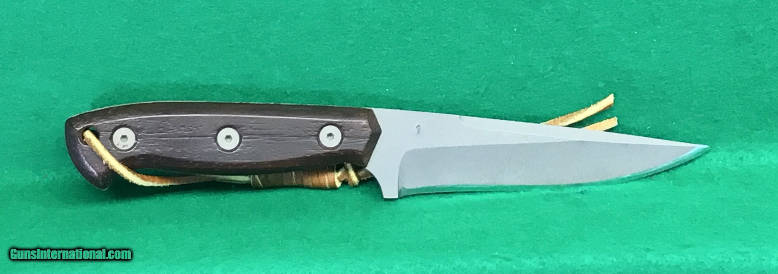 Description: Reduced, now $250 shipping included. // This Fighter by John Greco features a grey coated five inch blade with swedge, .252" blade stock and 1.349" blade depth, full tang construction. Full tang construction with lanyard hole. Includes a leather sheath with belt loop. John Greco worked under the legendary knifemaker Jimmy Lile, and eventually became a highly accomplished knifemaker in his own right. John Greco reportedly is no making this style of knife. $250 shipped. SOLD |