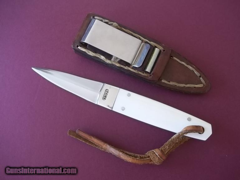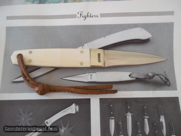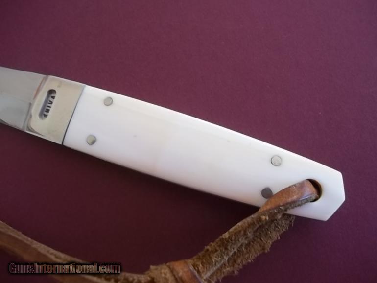 Description: You are looking at nonetheless than Shiva Ki very first Ninja Dart made in 1975 which is pictured in the impossible to locate 1977 catalog ( a true collector's item by itself) yet, I will enclose it as a proof that the knife you are getting is the one shown inside it! ) Shiva only made six such knives in his career ( I have two) he has one and the rest are tucked away in deep caves where they have been sleeeping for decades. Blade is 2-3/4 " and made with high-grade female elephant ivory scales-even the original lanyard i s still attached to the handle which is drilled for a wrist thong. This knife holds historical significance as it is the very first ever made Ninja Dart by Ki -comes with the original leather metal belt-clip scabbard . This is an astonishing piece from America's best-kept secret in the knife making industry and made by Master Shiva Ki the " LOUISIANA GURU." The particularity of this knife is being the very first one ever mnade isn't enough it is the only knife Shiva has made with a carved German silver bolster where is name is engraved in a " window" and the only one he ever did due to the dificulty of carving the German silver-this is a one-of-a-kind model that can't never be replaced. Shiva only printed 250 catalogues back then and he is aware of only three people who own one including myself and himself-they are extremely rare and none have survived the time are are worth several hundreds dolars has he pointed-out. Knife is in an immaculate pristine condition-reflextion on the bolster from the light-there is no flaws on that knife ! The ivory has taken an incredible color over the years and is breathtaking. Price does include shipping, Priority mail, insured from the USPS . SOLD |