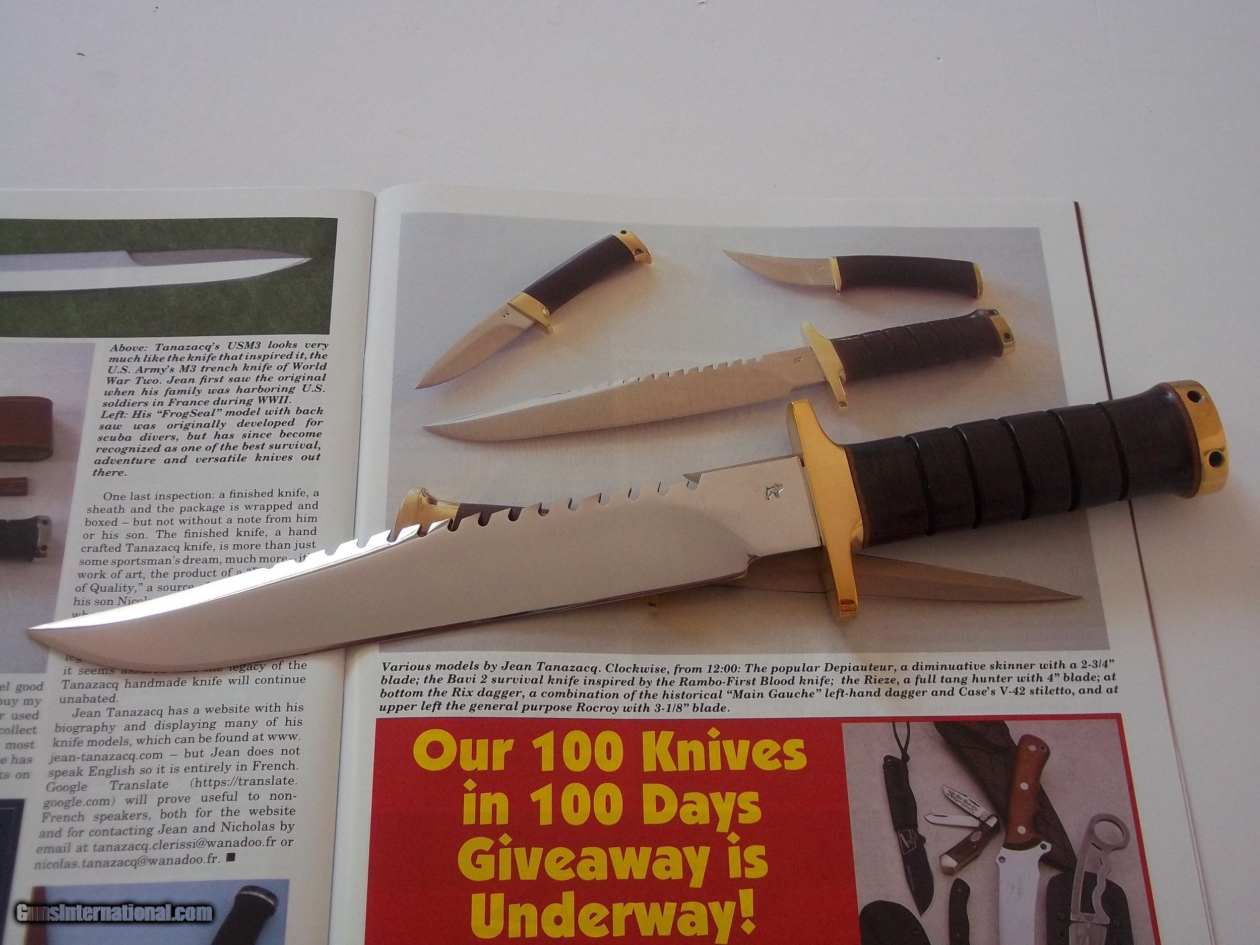 JEAN TANAZACQ KNIFE COLLECTION-IMMACULATE, PRISTINE, MINT CONDITION: HUNTING DAGGER,CAMP/FIGHTER,LEGIONNAIRE, SKINNER, MODEL,