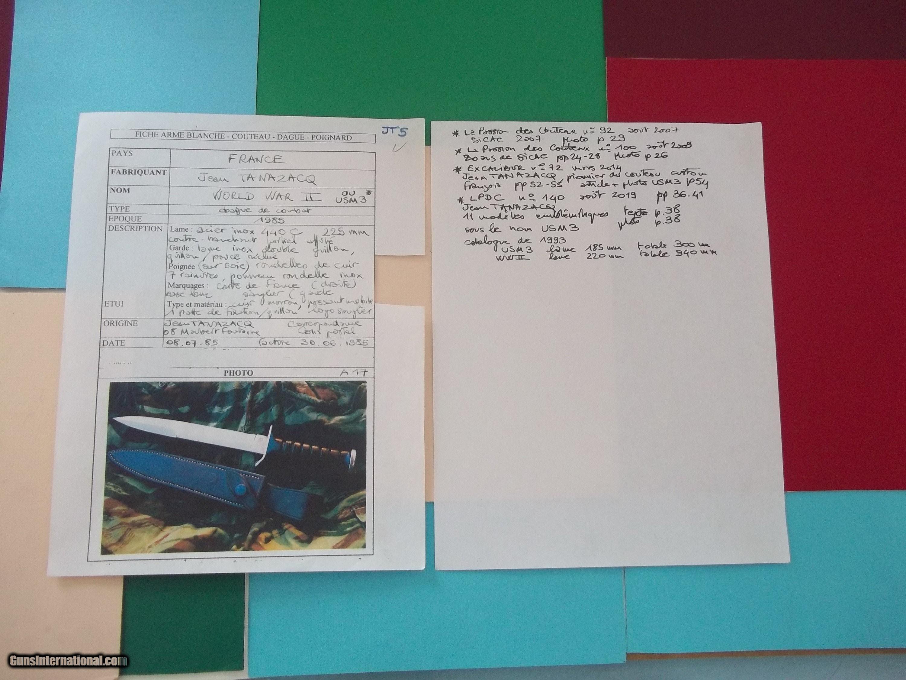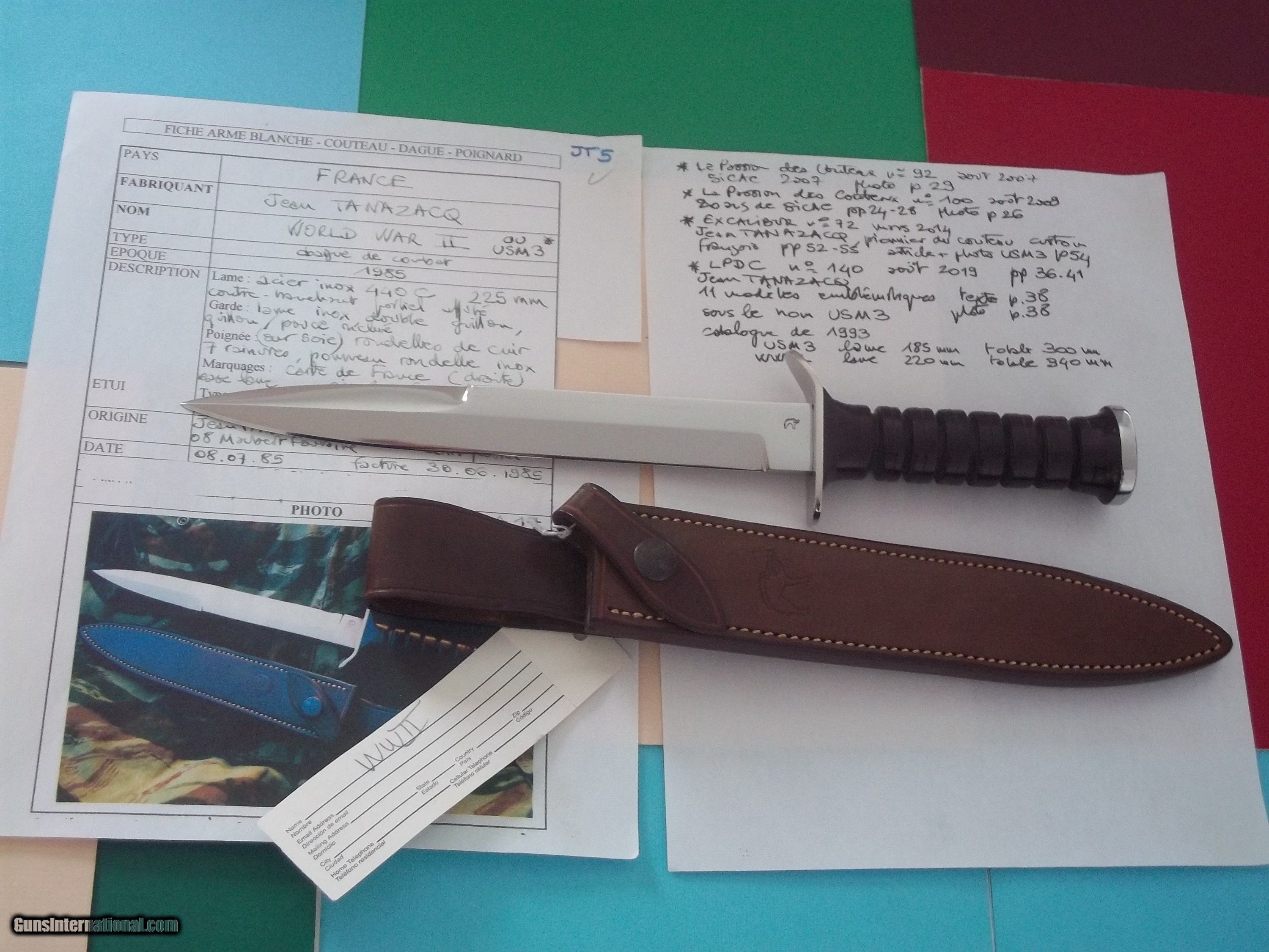 Jean Tanazacq The Dean of French Knifemaker Wolrd War II Combat Dagger Leather washers handle with July 8, 1985 Production
