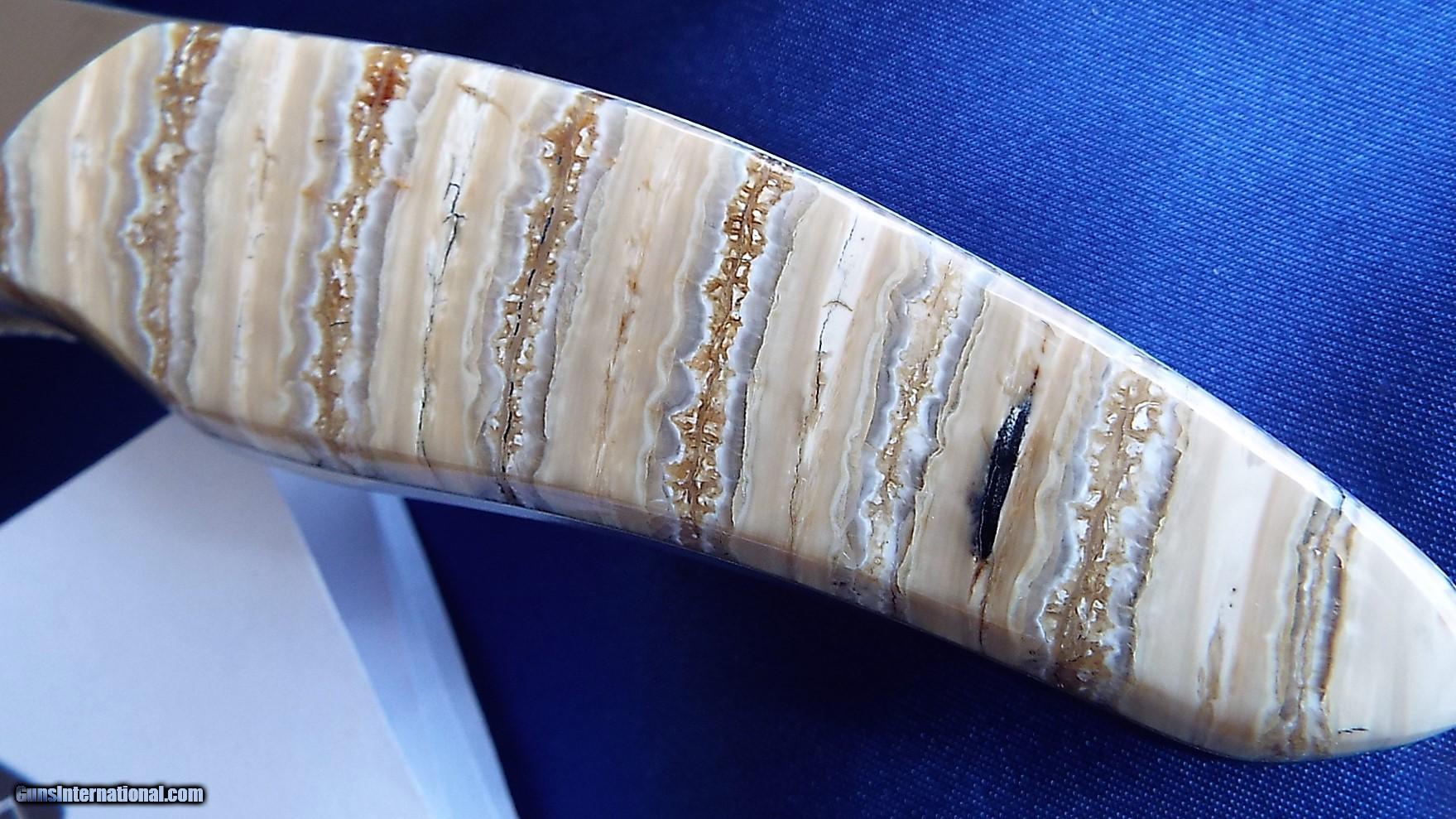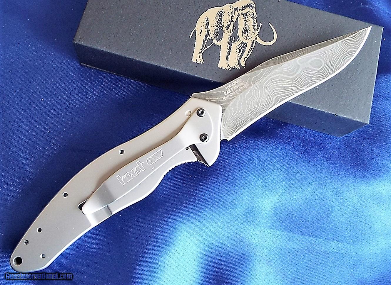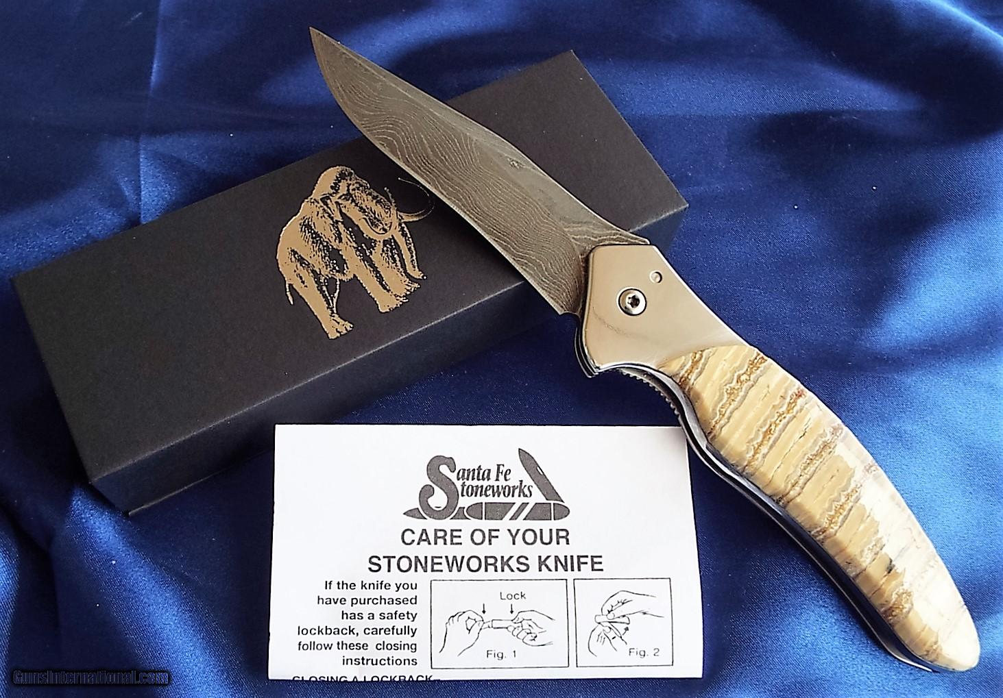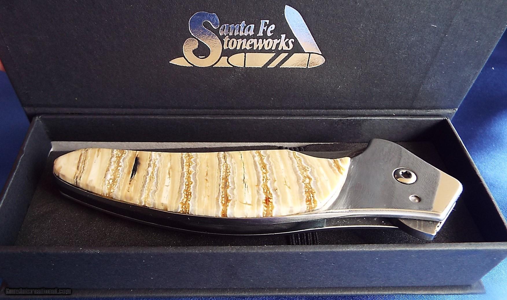 Description: FOR SALE:** BRAND NEW IN THE BOX** BEAUTIFUL COLABORATION OF KERSHAW & SANTA FE STONEWORKS. THE PRACTICAL KERSHAW SMOOTH BLADE SHALLOT (DAMASCUS) SPRING ASSISTED LINER LOCK KNIFE, DESIGNED BY KEN ONION,IS EMBELISHED WITH SANTA FE STONEWORKS 15000 YEAR OLD , MAMMOTH TUSK!!ALL FOSSILIZED TUSKS HAVE BEEN UNDER GROUND FOR THOUSANDS OF YEARS & MAY HAVE SOME VARIATIONS IN COLOR & SURFACE FINISH THESE ARE INHERENT IN THESE ITEMS AND MUST NOT BE PERCEIVED AS DEFECTS, BUT AS A ONE OF A KIND SANTA FE. STONEWORKS KNIFE!! (PICTURES DON'T DUE IT JUSTICE) POLISHED FIT & FINISH IS STUNNING!! BLADE IS 3.5" & KNIFE IS 8" OVERALL. GREAT GIFT OR EVERY DAY CARRY. STONE WORK DESIGN IS ON THE TOP SIDE ONLY, AS THE BACK HAS BELT CLIP THIS KNIFE COMES WITH SANTA FE STONEWORKS 100% UNCONDITIONAL GUARANTEE.. $7 SHIPPING PRIORITY MAIL LOWER 48 ONLY. THANKS FOR LOOKING!! SOLD |