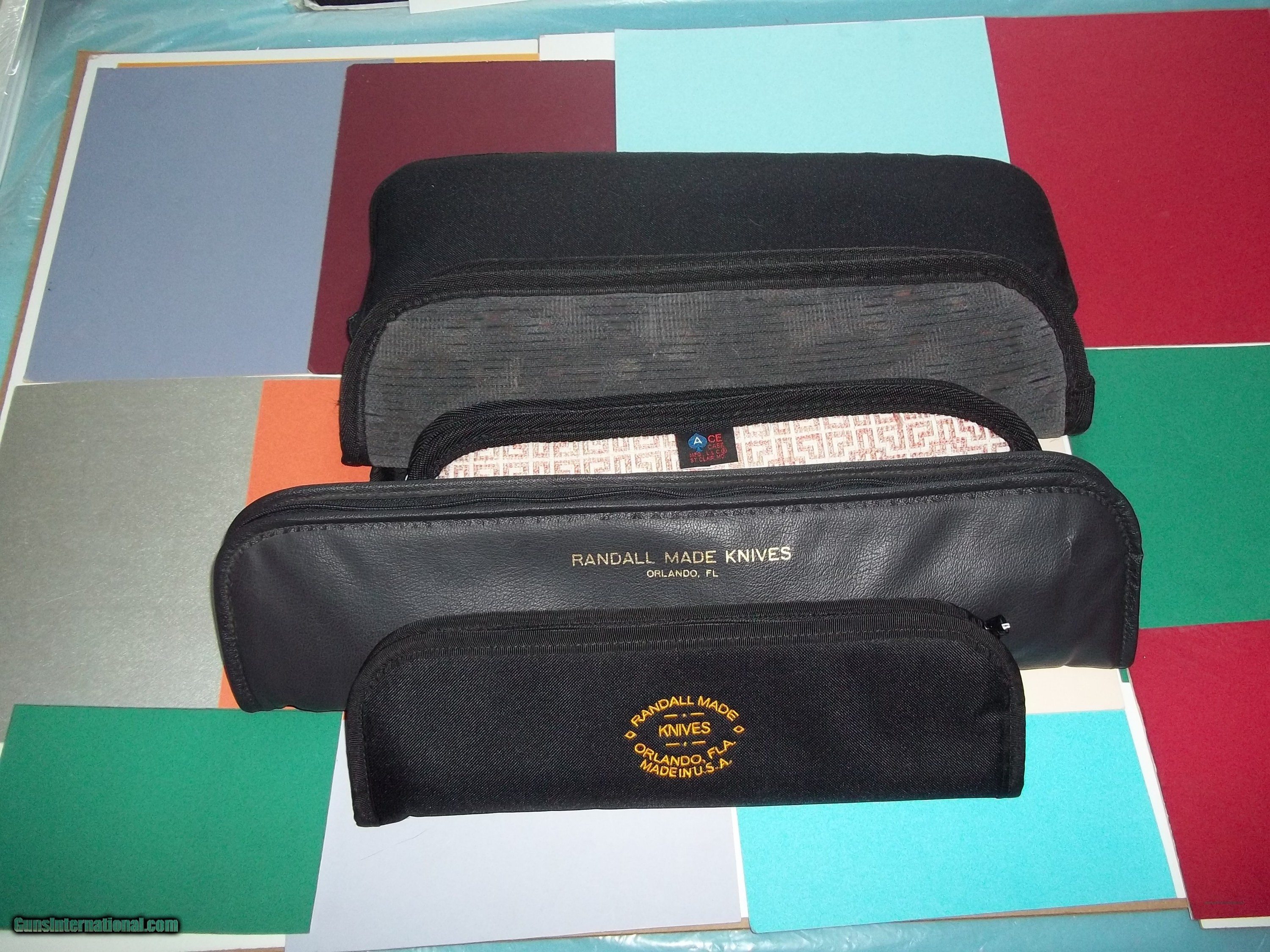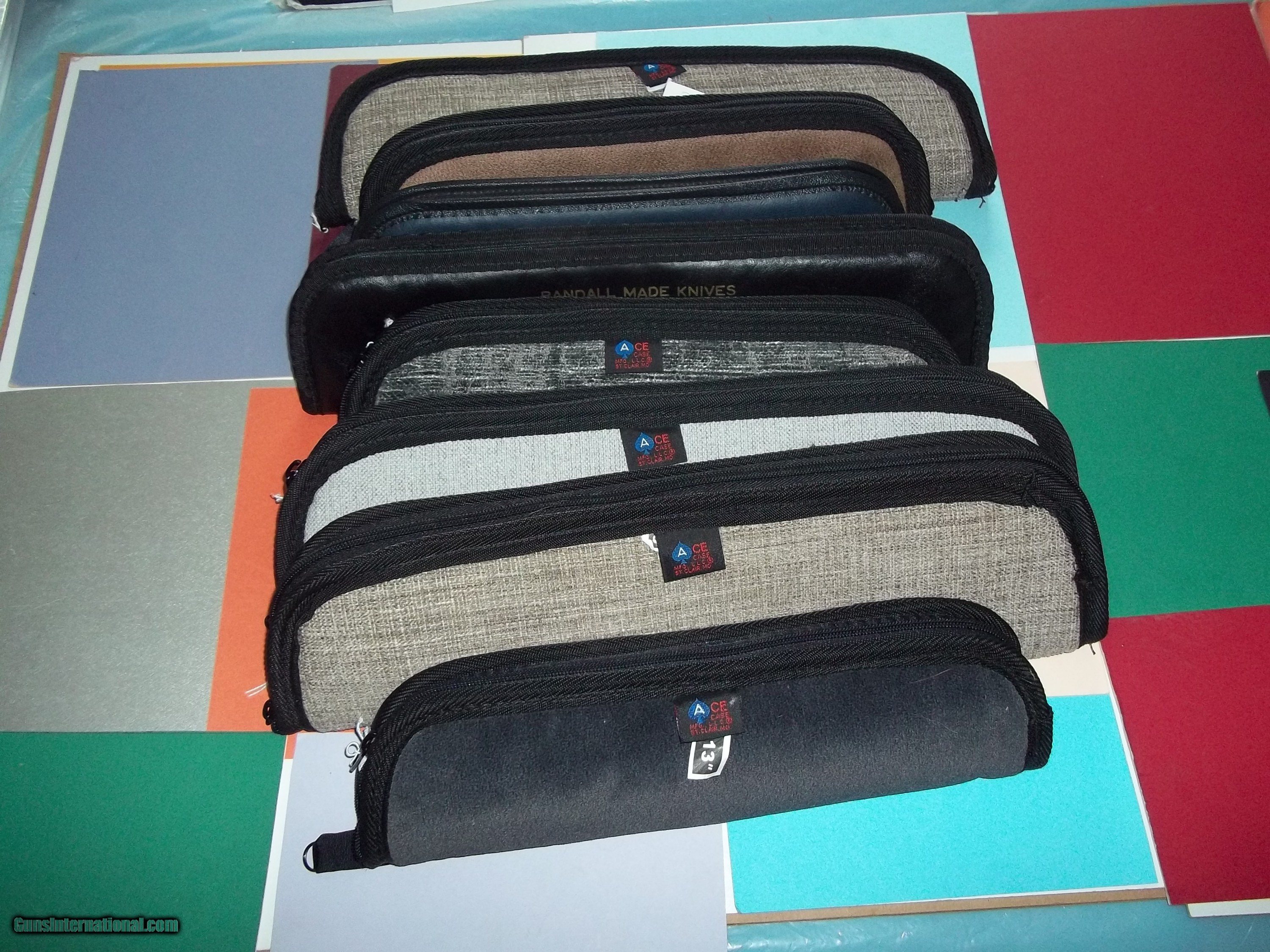 Lot of 21 High Quality Knife Padded Carying cases From 11" to 21" Quite a Few "Randall Made Knives" style carrying knife cases. New Condition. Some of morwe expensive than others, as seen in green style case. Will prefer to sell as a lot but can be had separately,(in this case, price will be a bit higher than from the lot, but not in excess of $40.00 each for the extra large case shipping included, and $45.00 for the "RANDALL MADE KNIVES" Cases). Thank you for looking. These cases offers the maximum protection for your knives as most knives today cost an average of several hundreds dollars if not thousands! Free shipping USPS with tracking # and signature required..