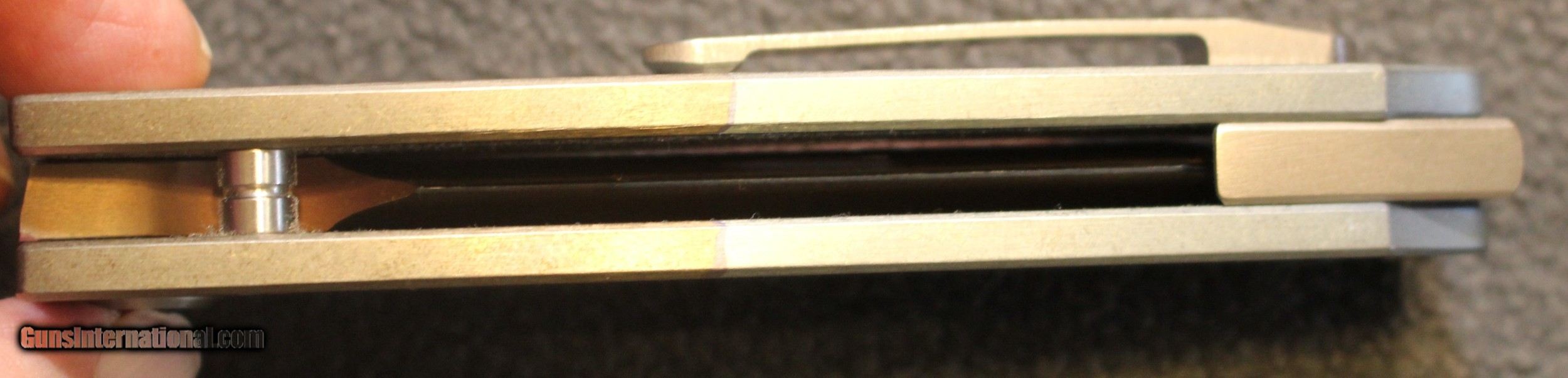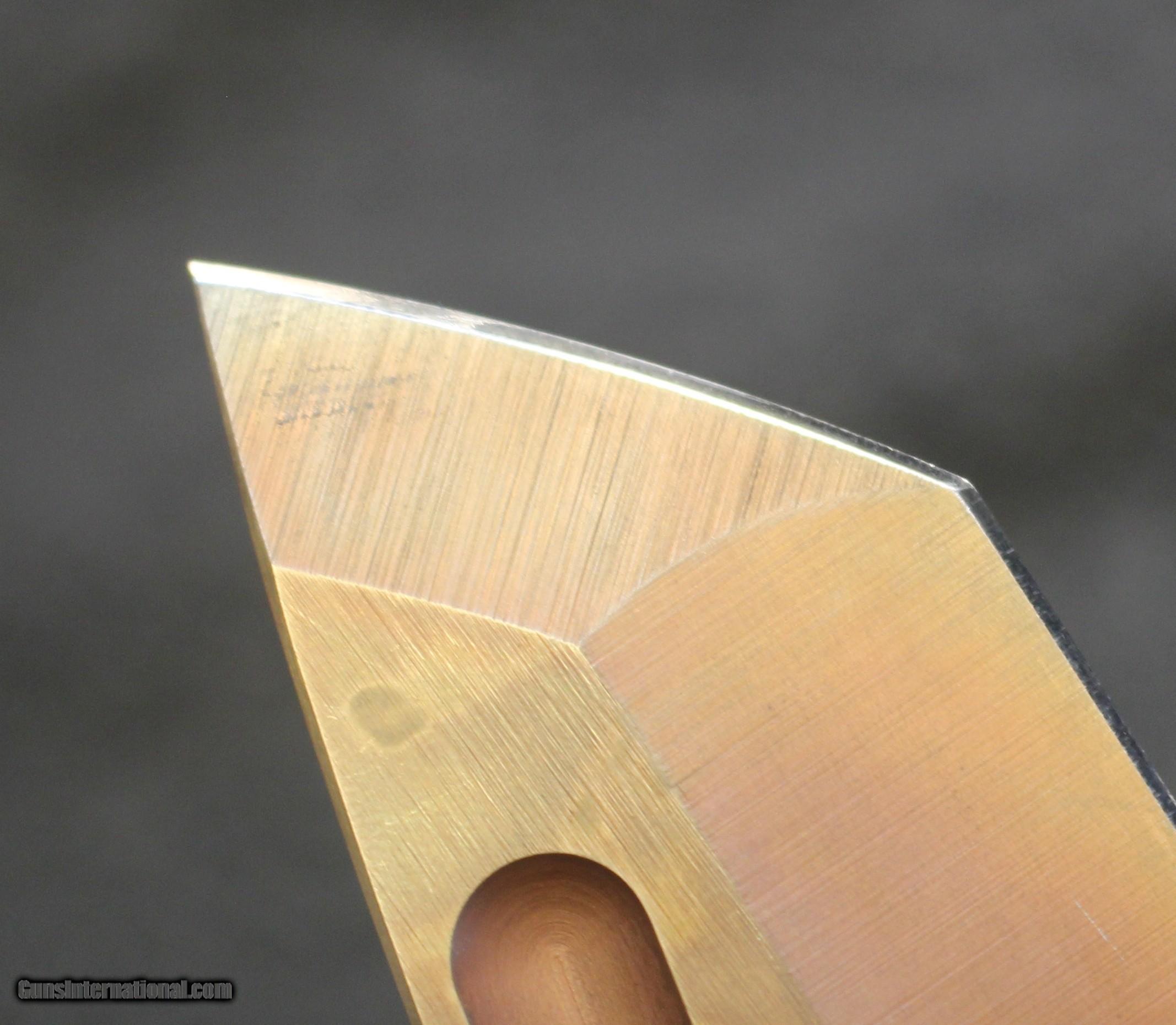 Description: Got a Medford Custom Marauder Tanto Flame Ti (4.25 Vulcan) Folding Knife. There is no build date available. There is NO BOX, or anything else. Just the knife as shown in the pictures NOTE: Look close at the pictures as the item you see is the one you get. As is means AS IS so There is NO, Refund. The following was copied from the original ad.................... This Katana Style Marauder has a raw burnished D2 tool steel, tanto style blade with a vulcan finished groove! The burnished titanium handles match the blade and the cut out accents on the handle are flamed finished which match the flamed hardware, stand offs, backspacer, and clip! They also go well with the vulcan groove on the blade. Taking the expression "built like a tank" to new levels the Marauder is a large framelock folding knife with a 1/4" thick blade and thick titanium handle scales that are 3/16" each. It is made for heavy duty use, and with a great choil, you can get a good solid grip while cutting!. An awesome knife! Copied from Medford's : The Marauder is a mean design that utilizes the awesome tip strength of the Flat-Grind and the tried and true performance of a Hollow-Ground main cutting edge. This Combo ground knife has a function driven form that is unique in the Knife world. The clean lines of the knife are self-evident and in this case, less is more. Note the curved Fuller-groove that doubles to not only lighten the forward weight of the design but also as a sneaky thumb-slide groove for opening. The sides are .187" Titanium and The blade is .260" thick. This design gets its name from the A-26 Marauder of WW II repute. The Marauder was known for awesome fire-power and brute force toughness in battle. A great moniker... SPECIFICATIONS