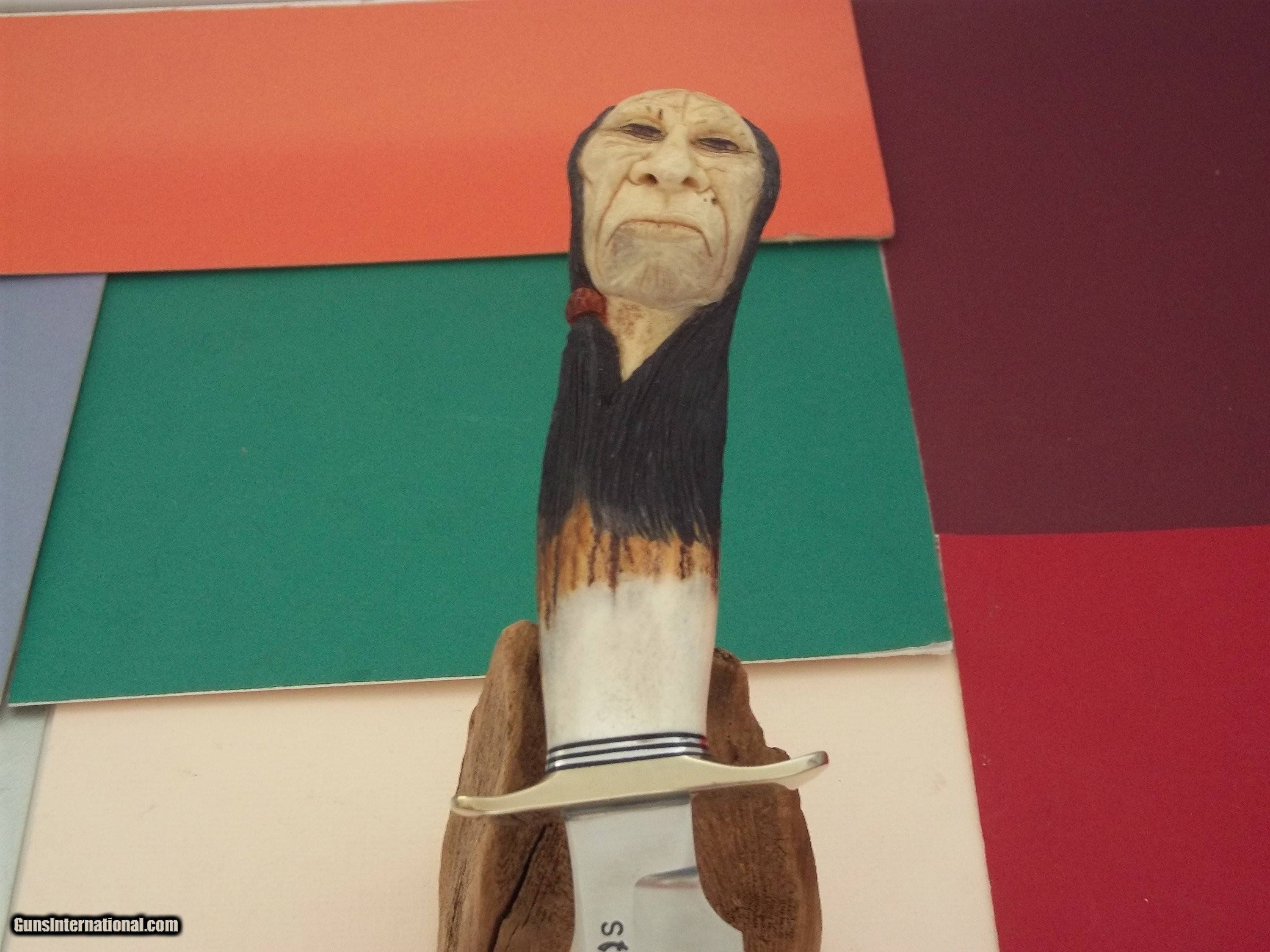 Randall Made Knives Model # 1-8" All-Purpose Fighting Knife "RED CLOUD" carving by Paul G. Grussenmeyer 1993 production