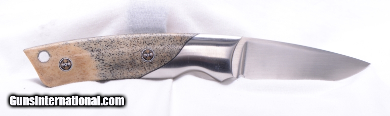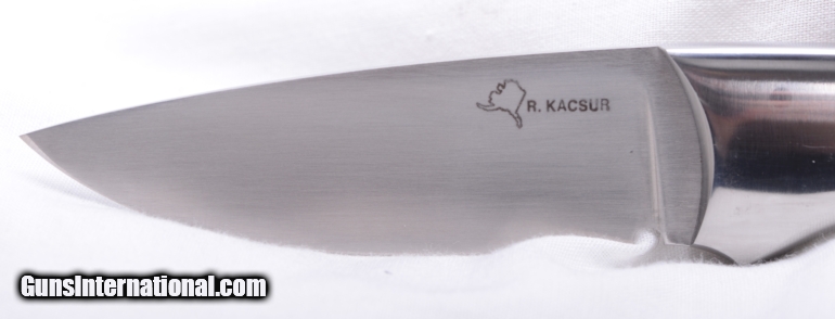 Description: Richard Kacsur of Fairbanks, Alaska made the very nice drop point hunting knife. Walrus & steel handle. 7 3/4" overall length with a 3" blade. The details in the making of this knife are excellent. The design if very comfortable and it is an extremely handsom knife. Mint condition SOLD |